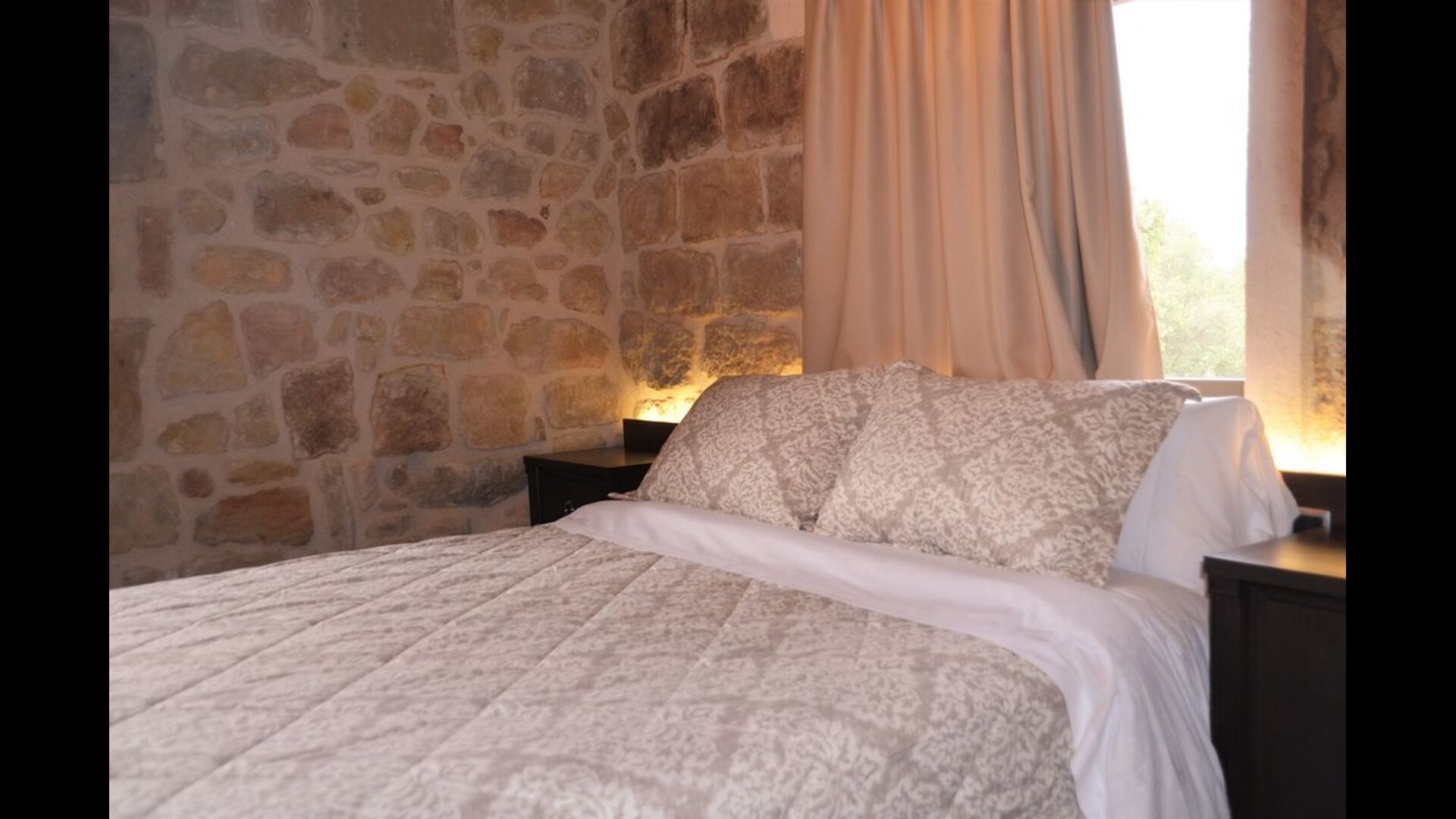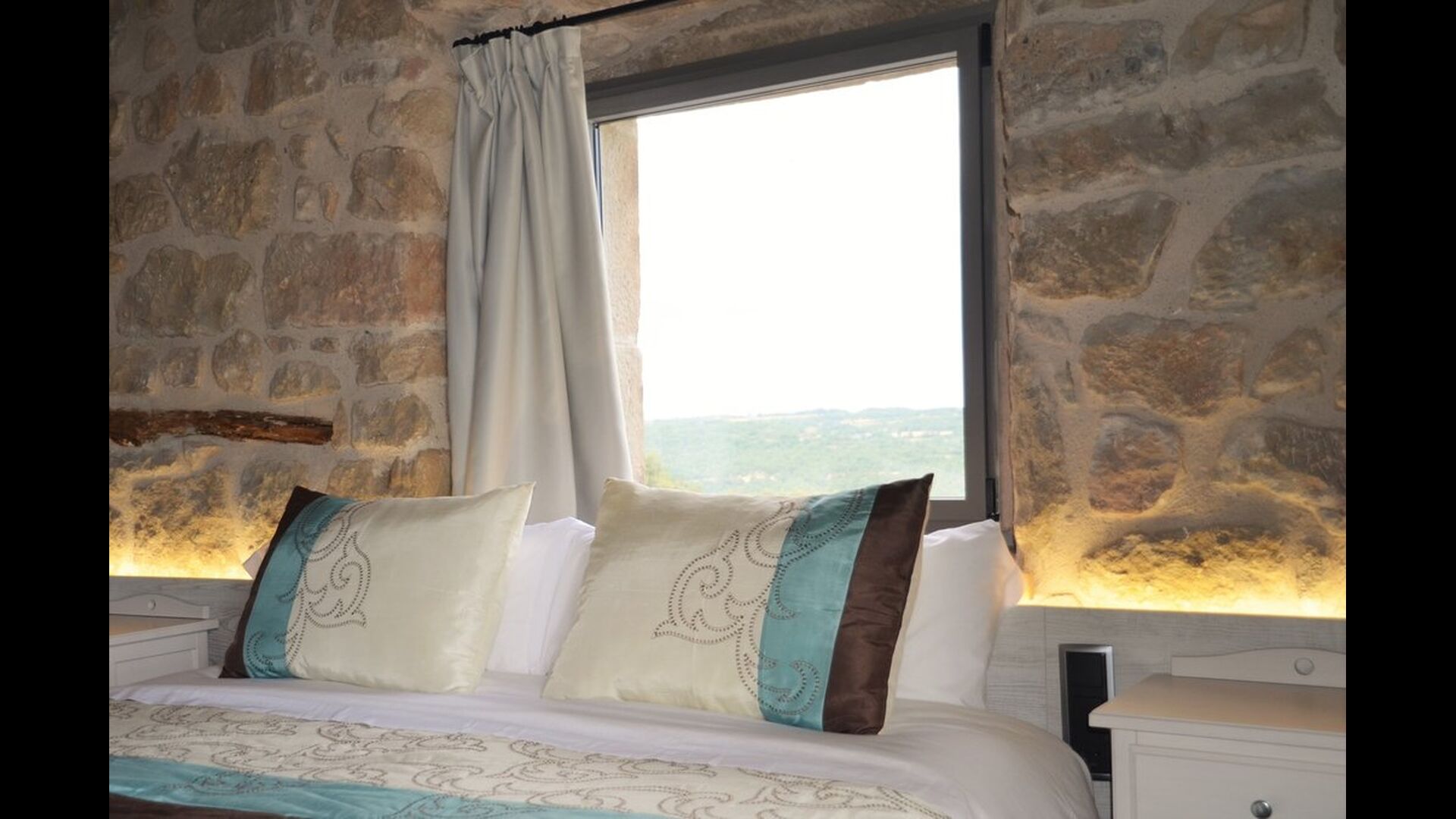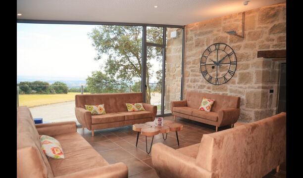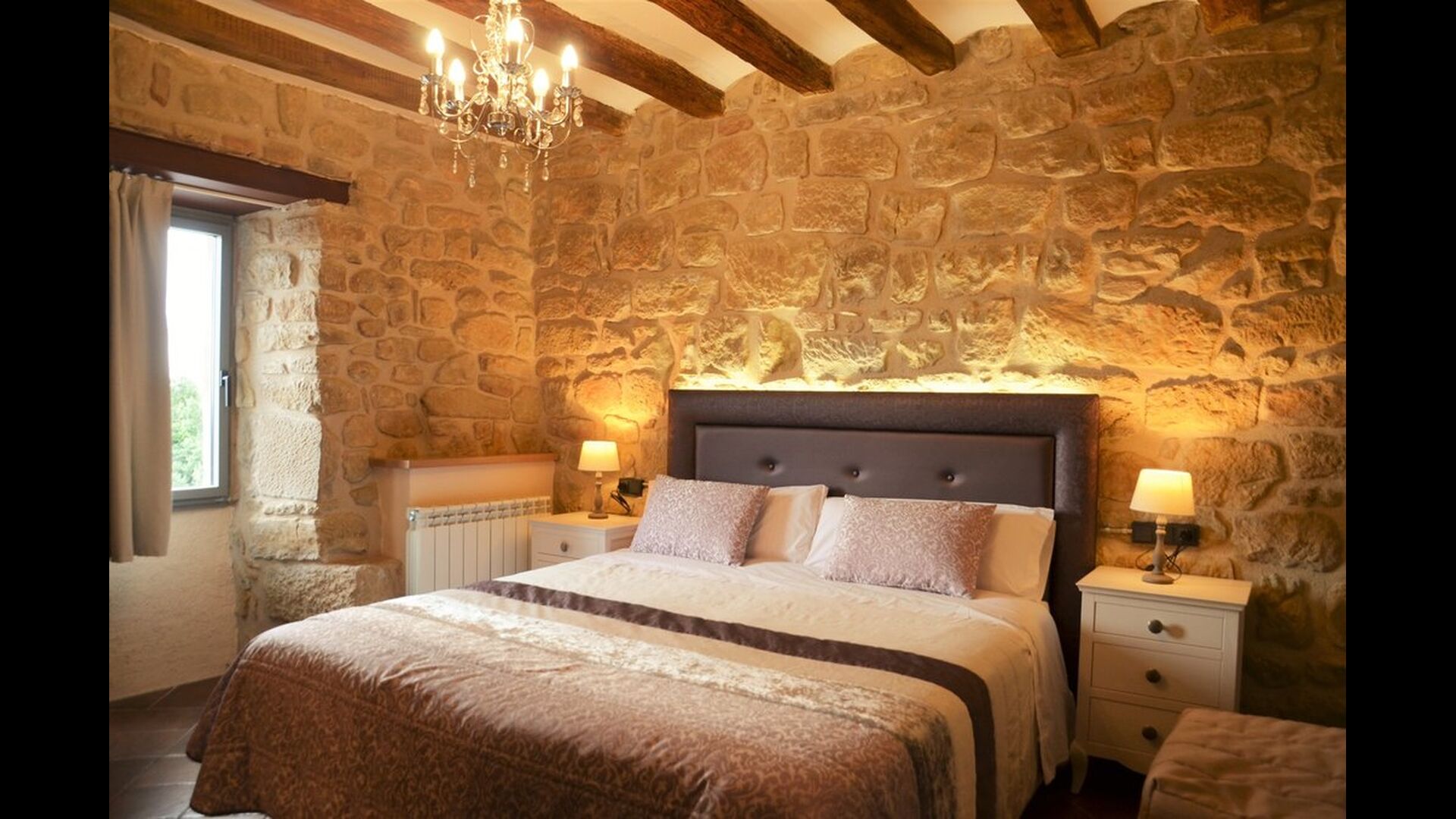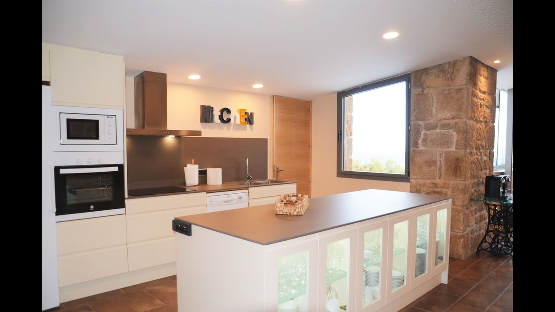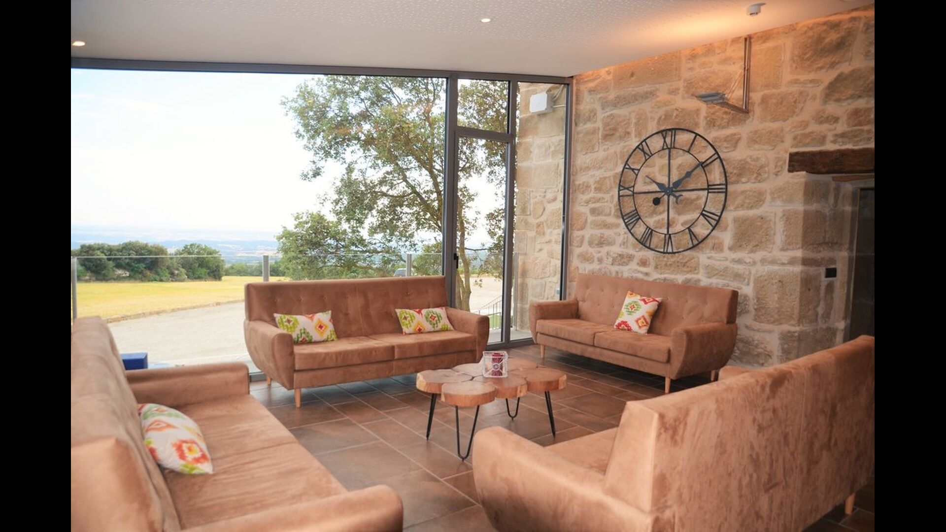 Hay tres dormitorios en la planta baja, todos ellos con camas dobles y lujosos baños privados. A continuación, puede tomar el ascensor o las escaleras hasta el primer piso, donde encontrará otros cuatro dormitorios – dos habitaciones dobles y dos triples todas con baño privado y muy bien decoradas. Arriba, en el segundo piso, encontrará los últimos dos dormitorios dobles que también tienen baños en suite. Cuando ingrese al salón abierto en el segundo piso, encontrará otra otra cocina moderna y un gran salón con cómodos sofás, un televisor de pantalla plana y una acogedora chimenea</ fuerte>. Toda la habitación tiene ventanas panorámicas con un hermoso balcón con vistas al impresionante paisaje verde de Mas Pui.