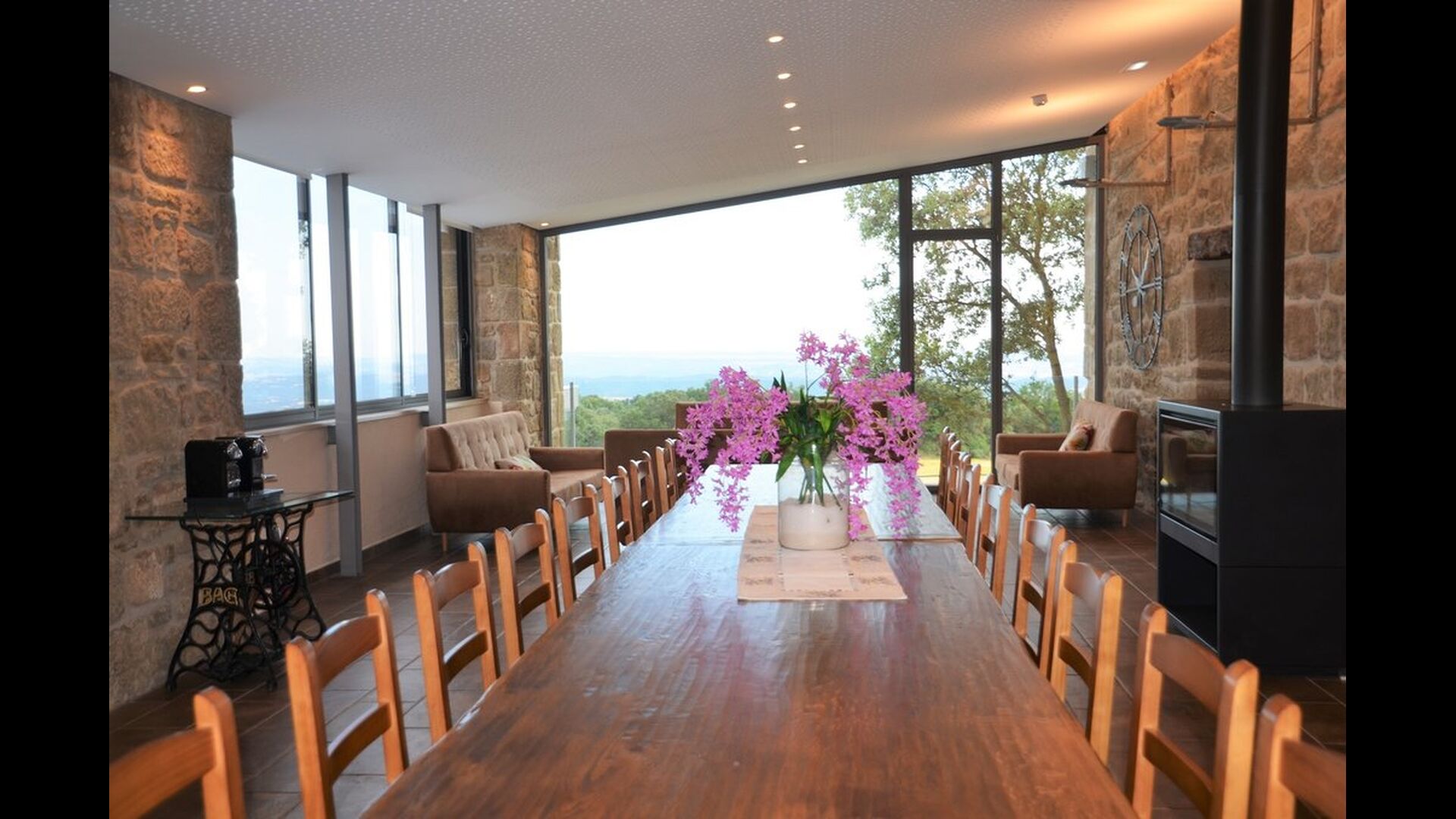 En una encantadora ladera de la montaña en Solsona se encuentra la impresionante casa de vacaciones Mas Puig Vallresa. La casa de vacaciones es el lugar ideal para un grupo grande, y es muy familiar. Con tres cocinas, nueve dormitorios y nueve baños, definitivamente es seguro decir que Mas Pui es una casa de vacaciones increíblemente espaciosa que ofrece áreas fantásticas para que se reúna todo el grupo, pero también le brinda la oportunidad de retirarse y disfrutar de un poco de paz. y tranquilo si lo necesitas. Con su ubicación exclusiva y diseño moderno, ¡te aseguramos que lo pasarás genial en Mas Pui!