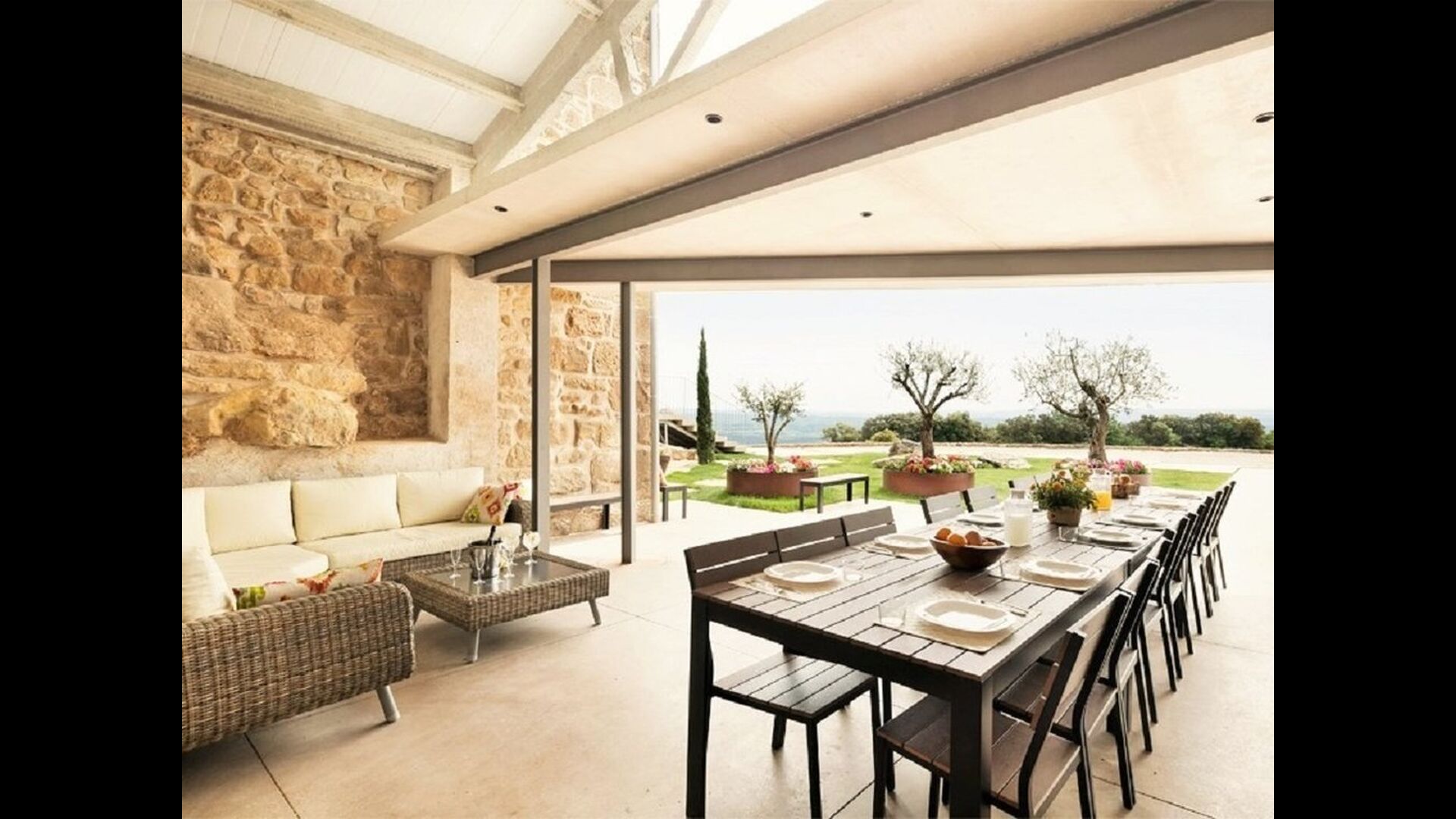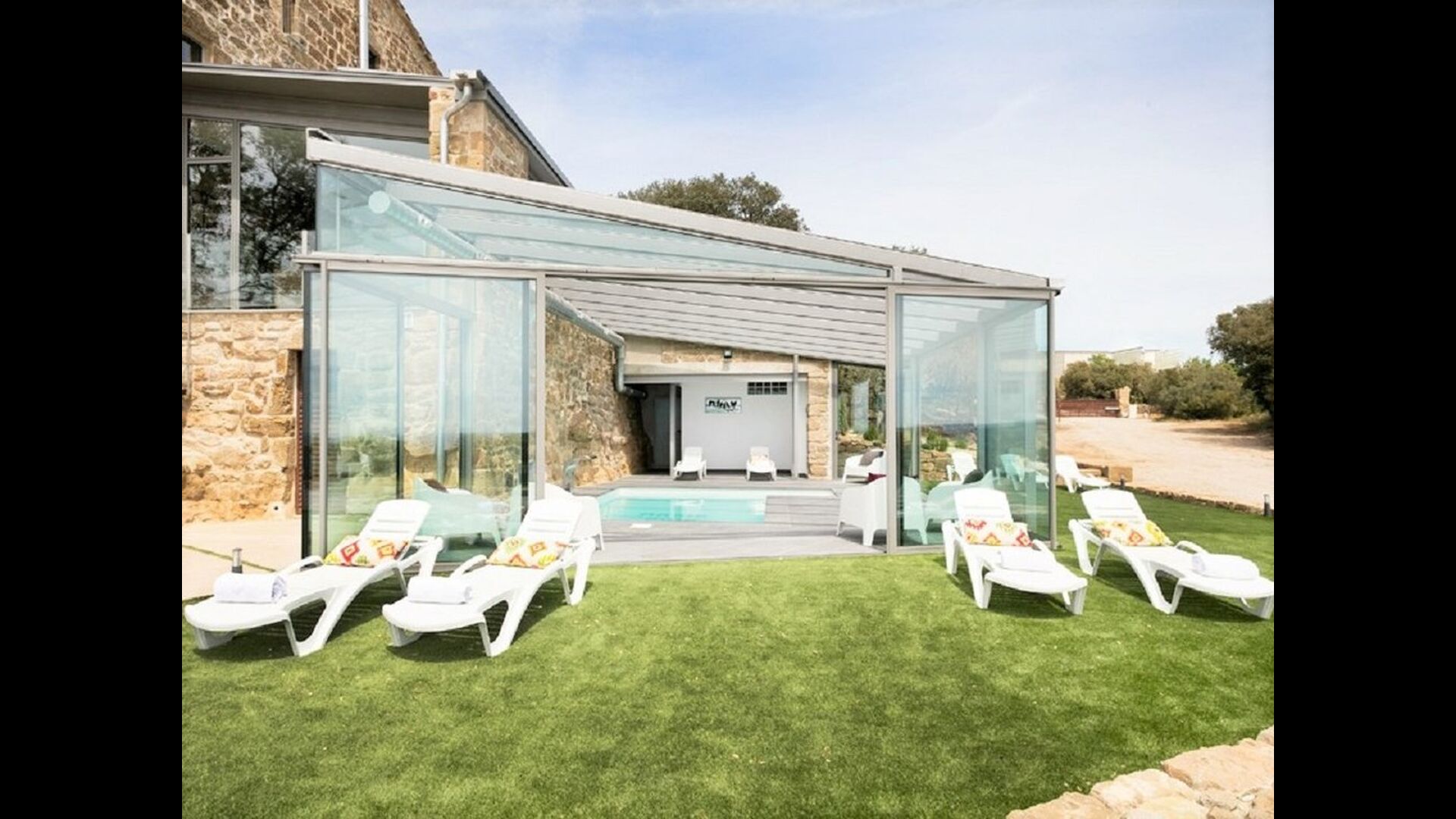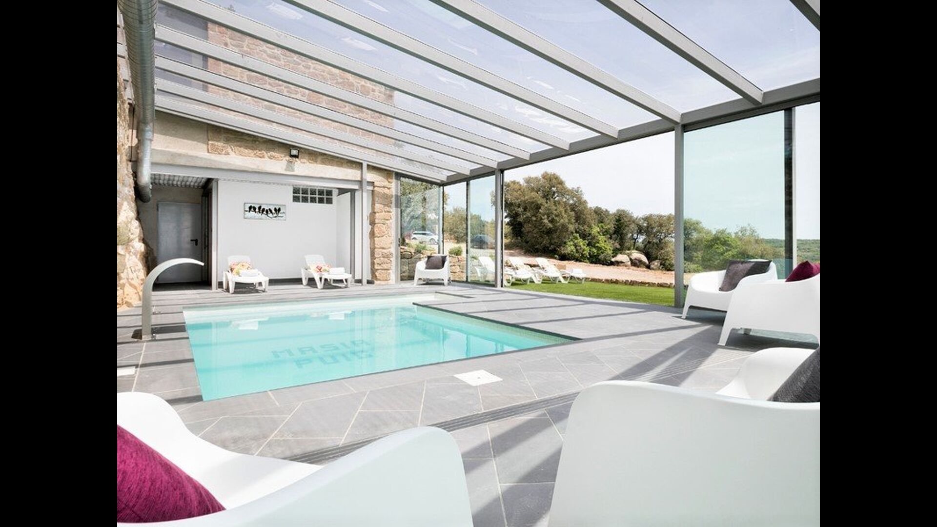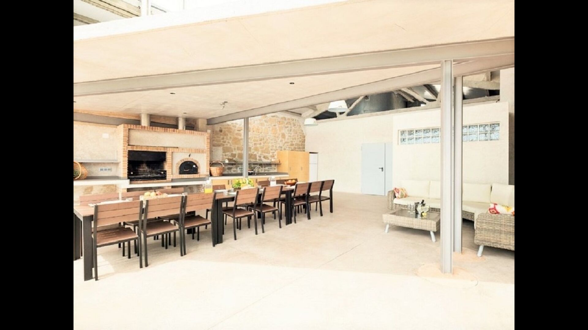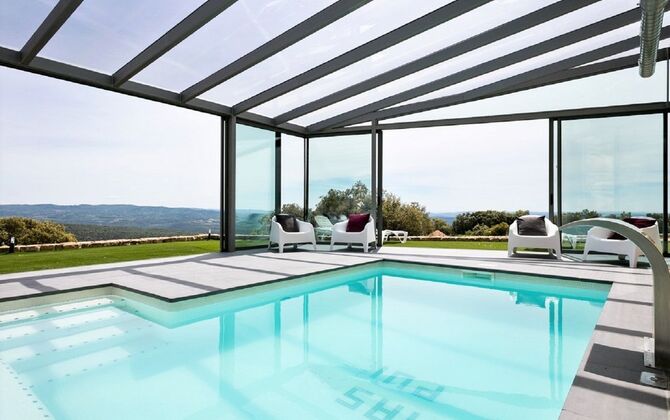 Mas Puig Vallresa cuenta con unas excelentes zonas exteriores donde imaginamos que pasarás la mayor parte de tu tiempo. Debido a su fantástica ubicación, Mas Puig Vallresa tiene unas vistas absolutamente impresionantes. En el lado izquierdo de la casa, encontrará la gran terraza con las instalaciones más lujosas que incluye una cocina al aire libre totalmente equipada con horno de pizza, estufa, refrigerador & congelador, zona de barbacoa y mucho más. La terraza tiene una zona cubierta con un gran comedor y una acogedora zona de sofás con mesa de centro. En el lado derecho de la casa encontrará el área de la piscina cubierta que tiene todas las características que podría soñar, incluyendo una función de spa, ducha y baño. Hay muchas tumbonas alineadas tanto dentro como fuera del área de la piscina cubierta, donde podrá relajarse y disfrutar del increíble clima catalán.