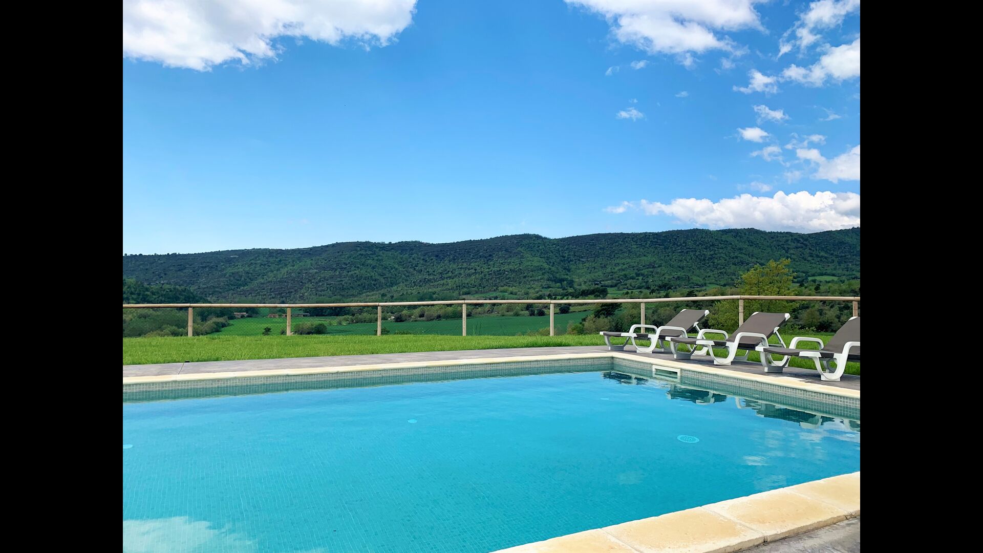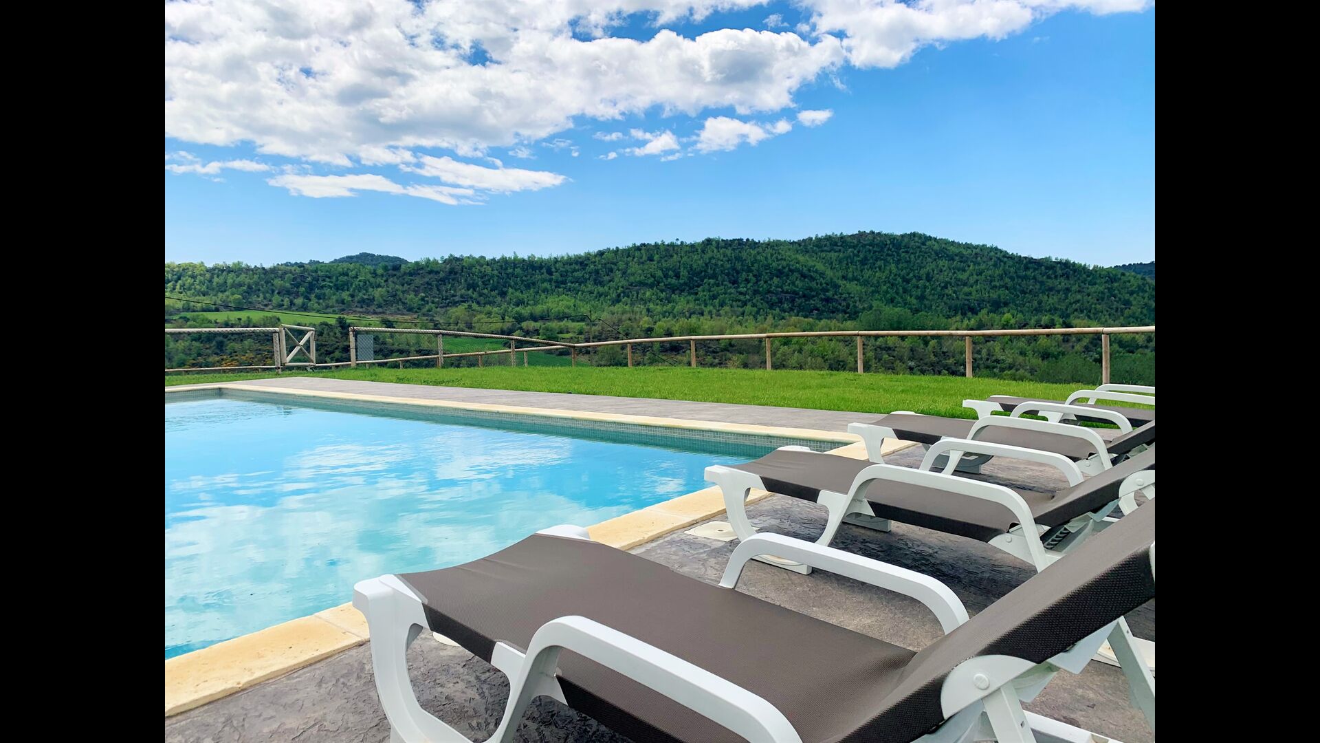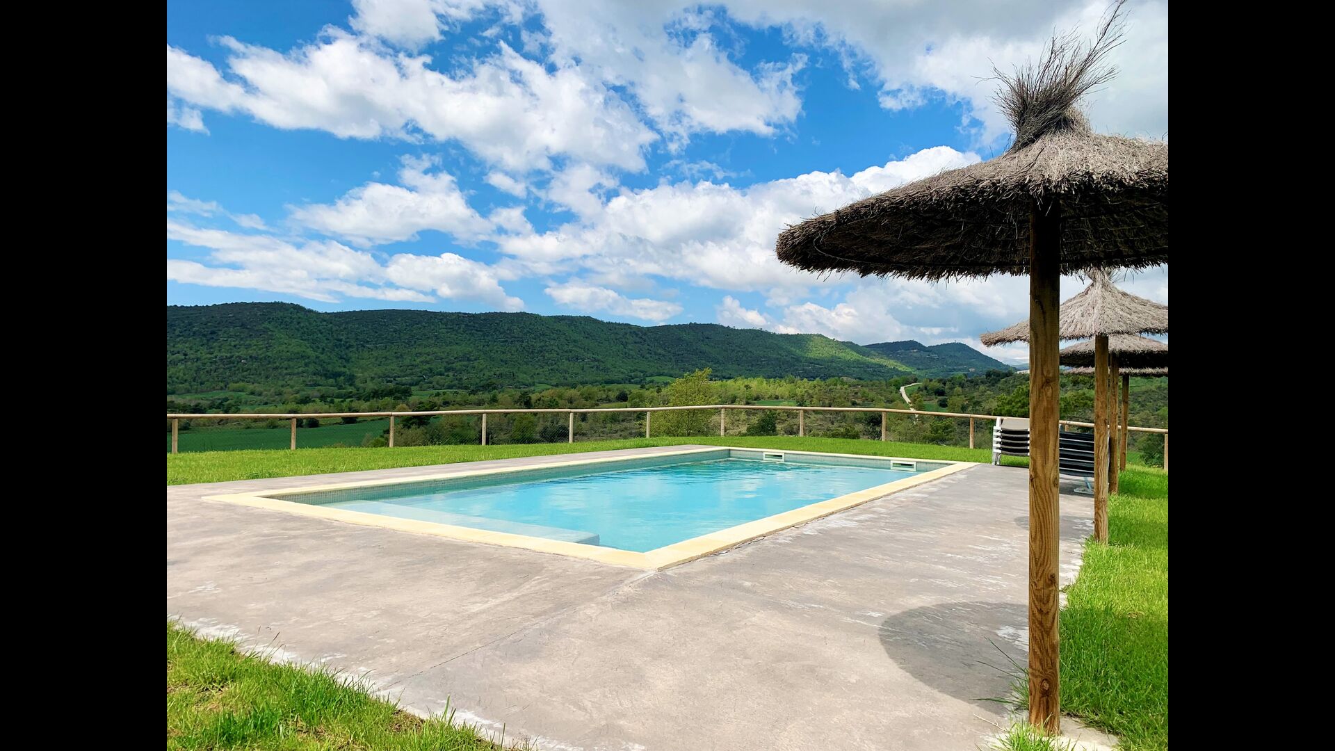 La casa está situada en la cima de una colina con una hermosa vista de 360 grados sobre el paisaje y con los Pirineos elevándose en la distancia. Está rodeado por un maravilloso jardín de 1.300 m2, con una gran piscina vallada de 10 x 4,5 metros al final del jardín con muchas tumbonas para relajarse.