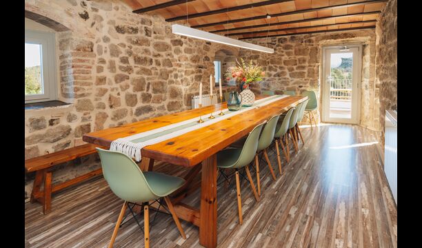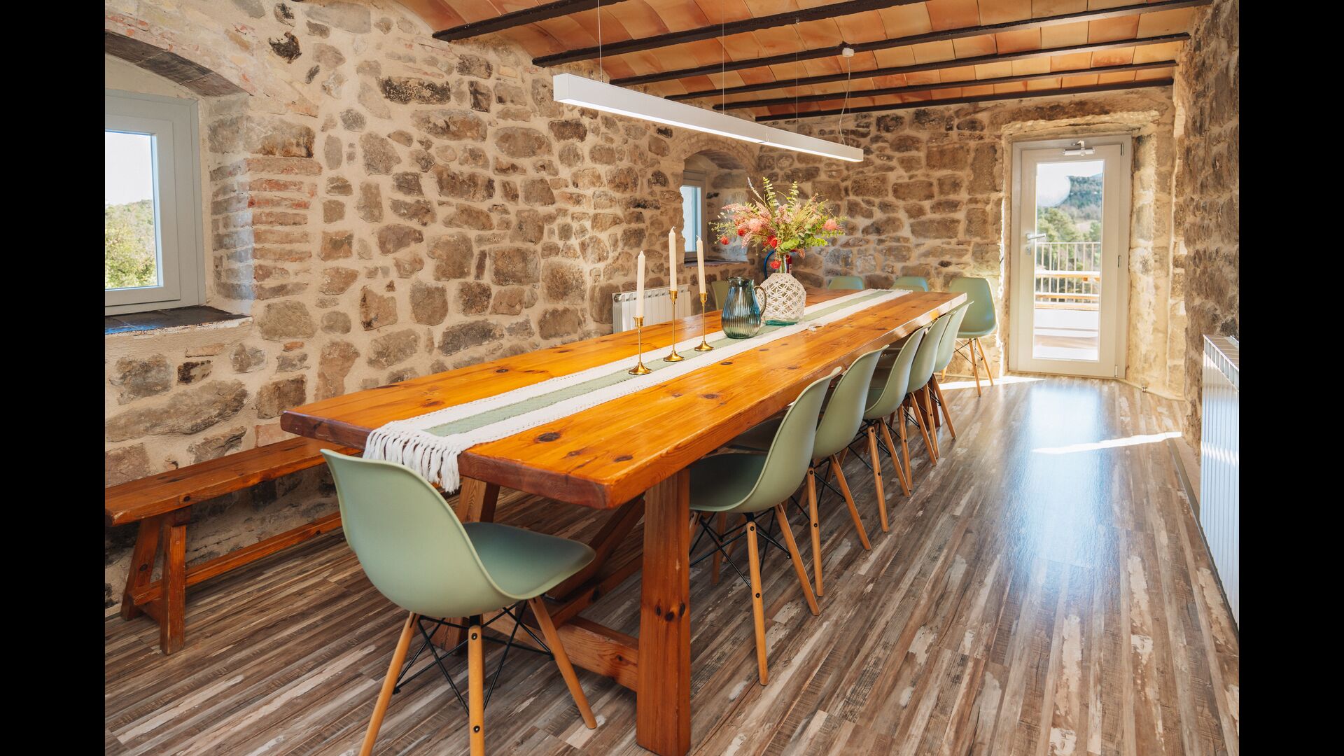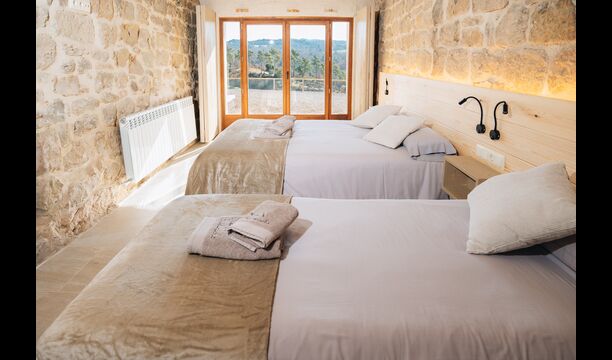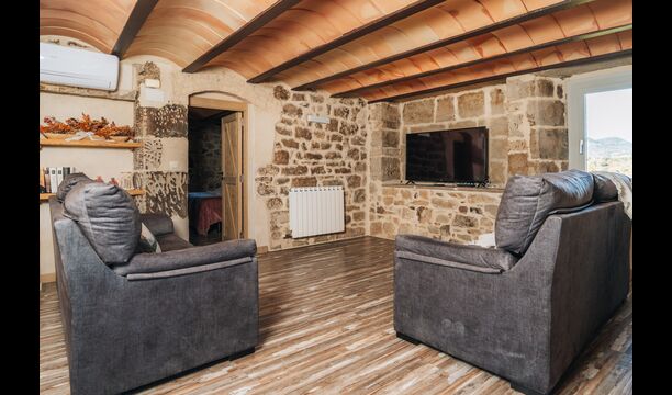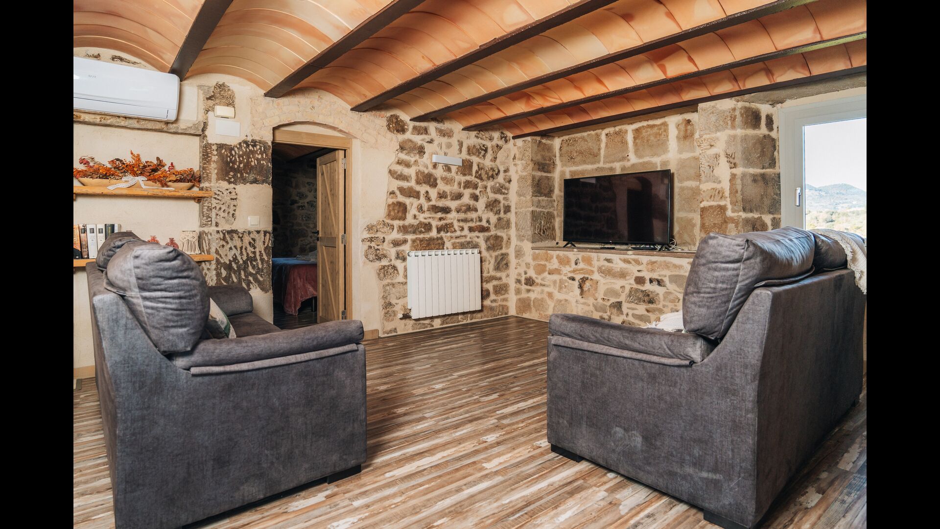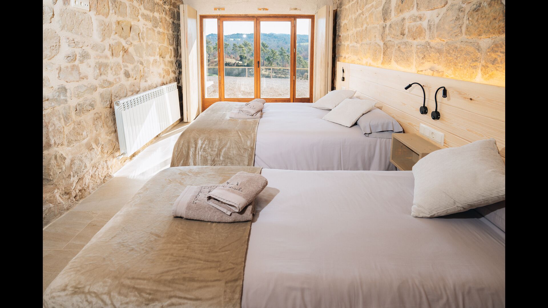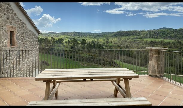 Si te gustan las vistas y disfrutas del ambiente relajado solo acompañado por los pájaros , Masia Busquests sería una excelente opción. La casa tiene 7 dormitorios y tiene capacidad para 20 personas.