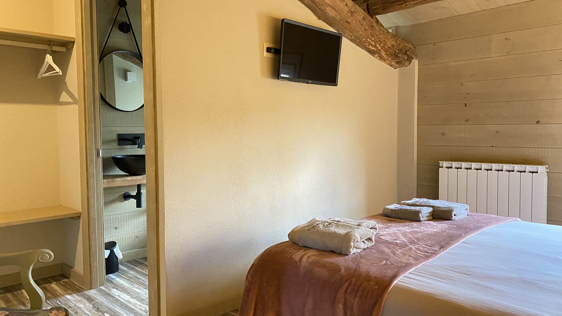 En la planta baja de la entrada tiene una bonita terraza cubierta con acceso directo a la barbacoa, y habitación triple que consta de cama de matrimonio y cama individual con su baño corrrespondiente