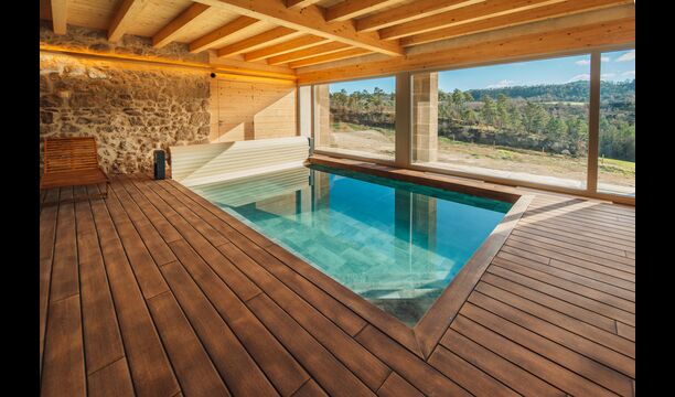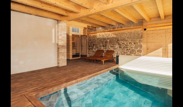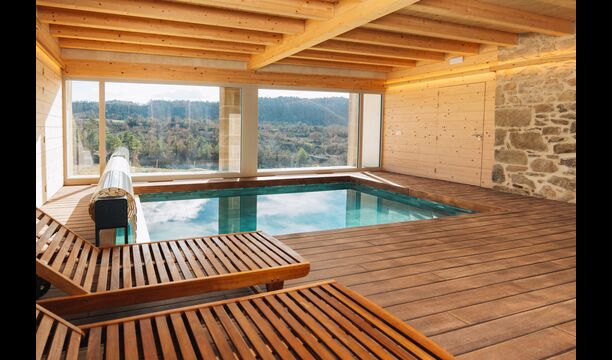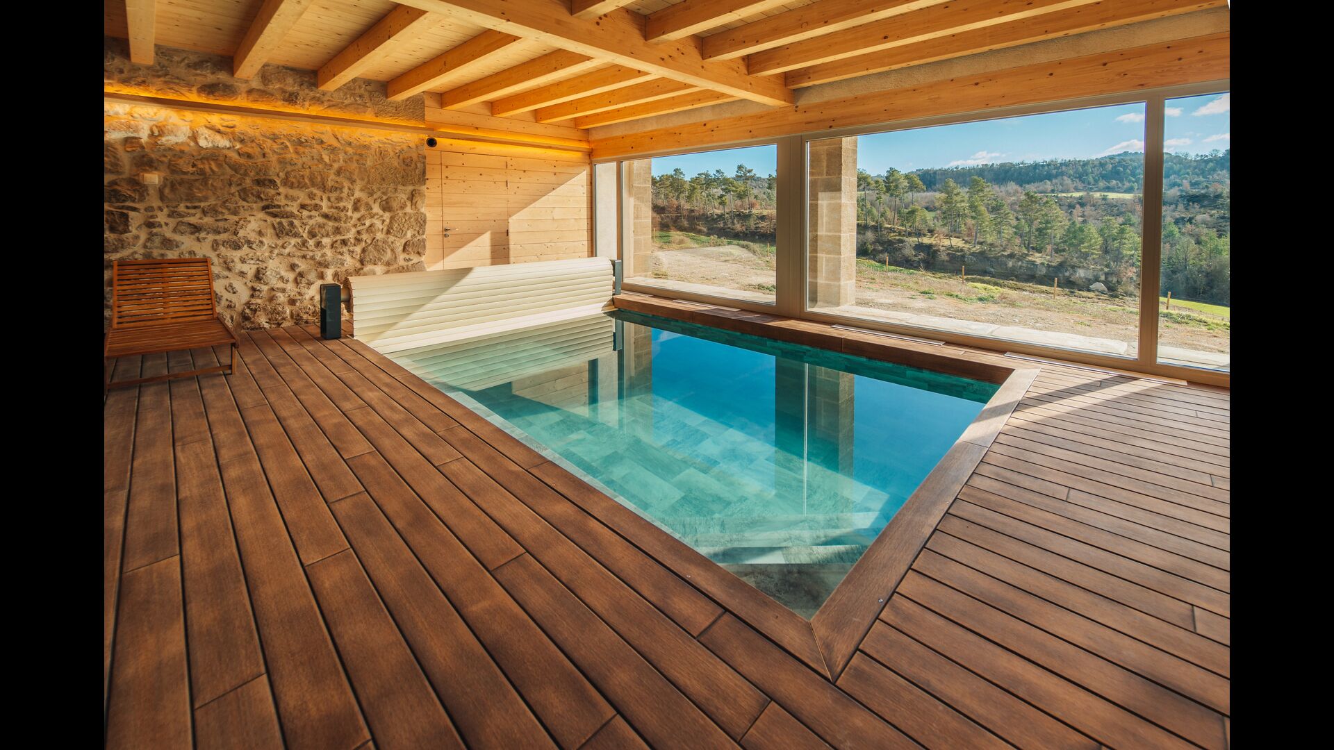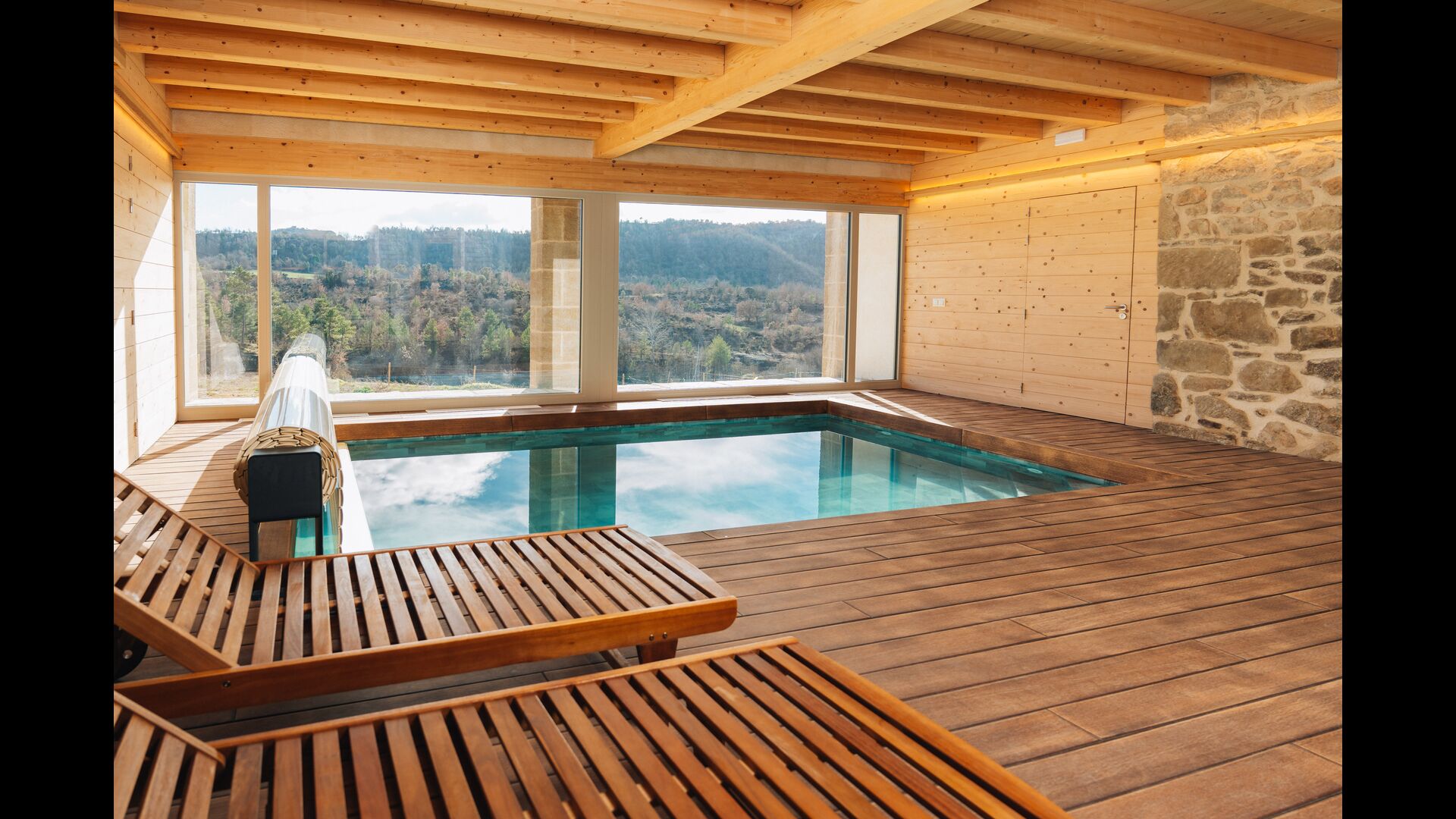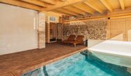 La casa también dispone de piscina salina interior climatizada, sauna, gimnasio, etc.