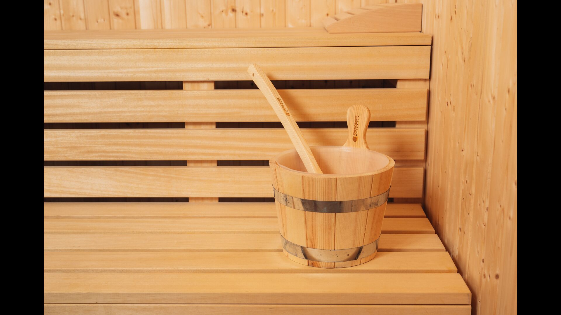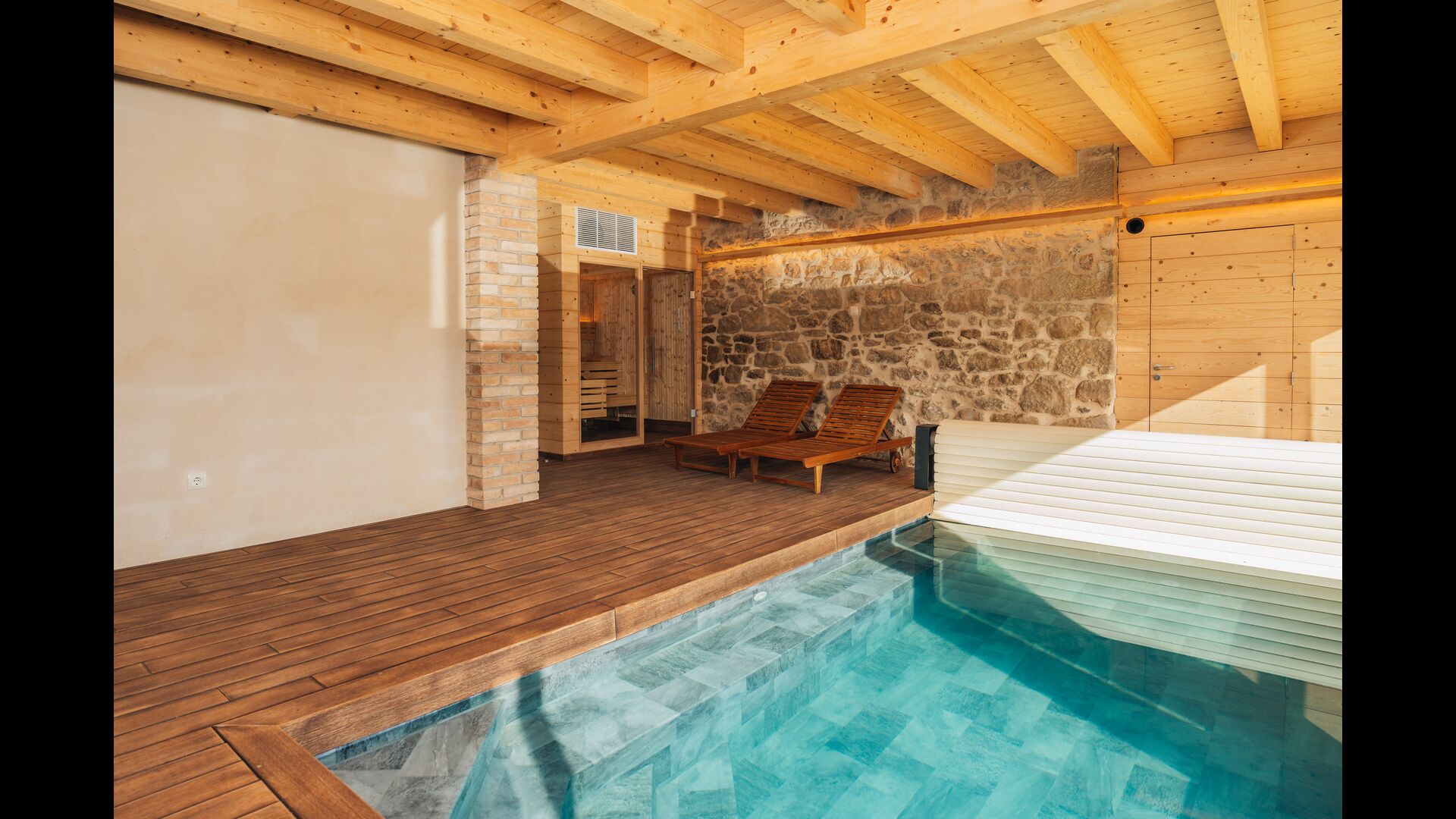 - En la segunda planta encontramos la piscina salina interior climatizada , sauna, vestidor, ducha fria y baño.