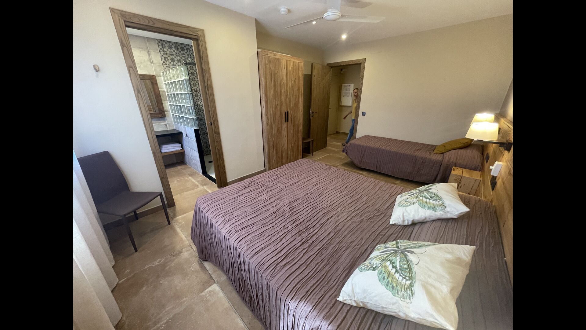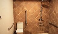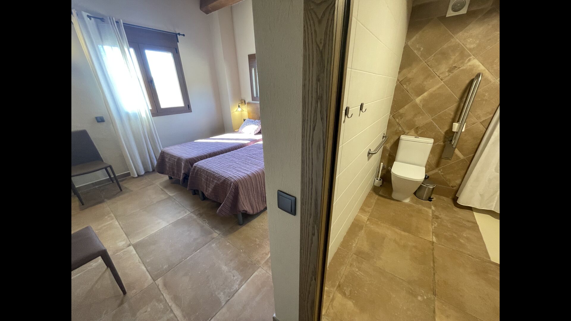Las habitaciones todas tienen baños privados y camas grandes; para hacerlo amigable para las personas mayores y para aquellos que de otro modo tendrían dificultades para caminar; hay entradas niveladas a todas las áreas de la casa. Hay una habitación totalmente adaptada para personas con movilidad reducida, con baño adaptado, camas articuladas y persianas automáticas. . Todos los baños tienen ducha ; ¡Y algunos incluso tienen una bañera, directamente contigua al dormitorio! Todas las habitaciones tienen aire acondicionado en verano y los suelos radiantes en los meses de invierno.
