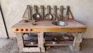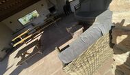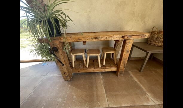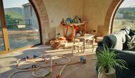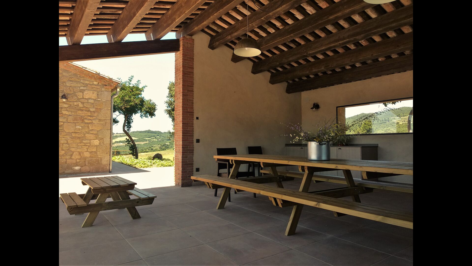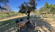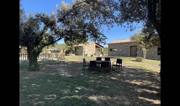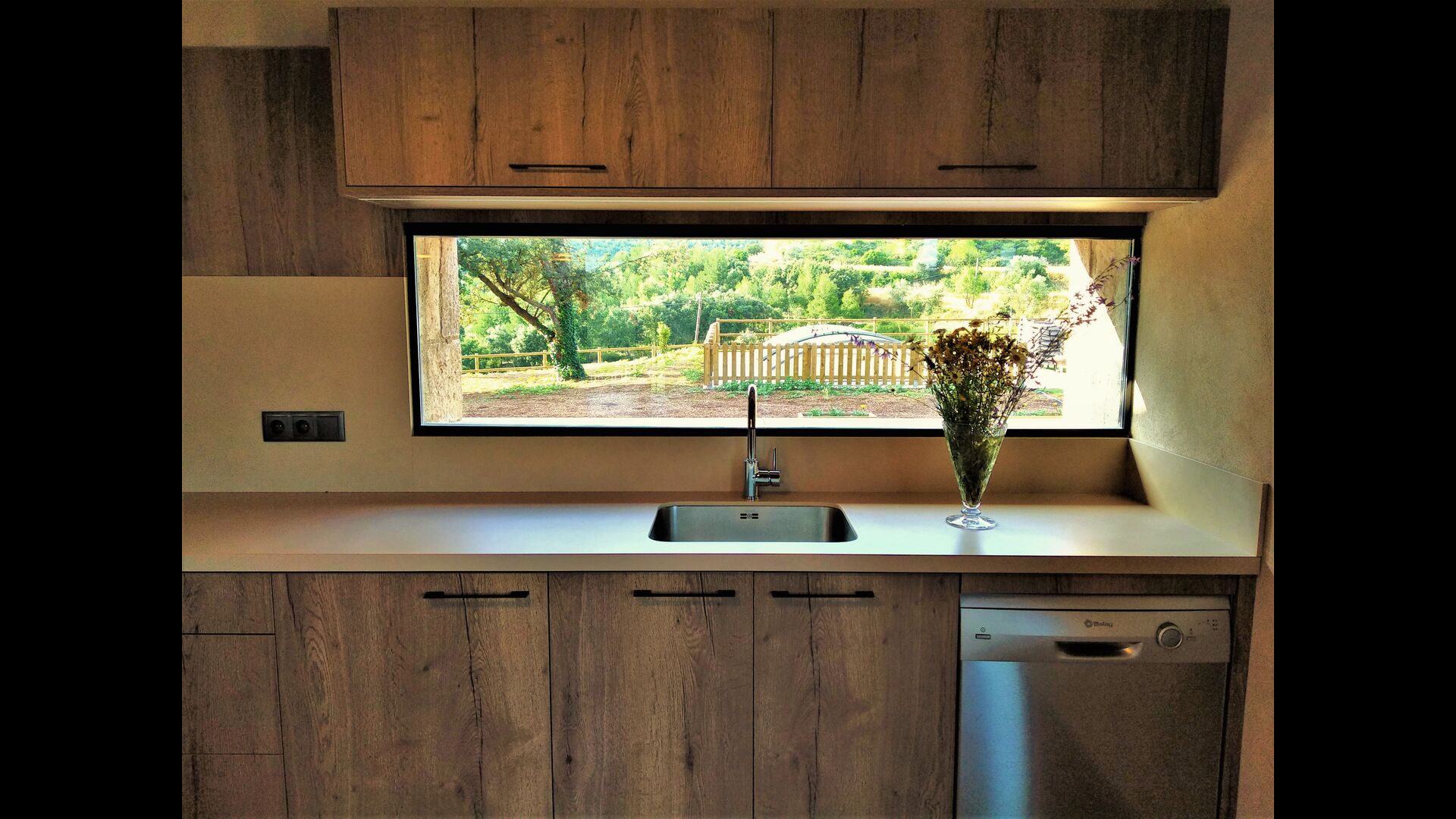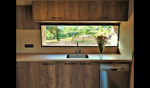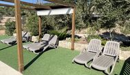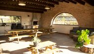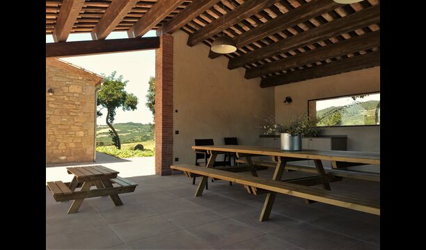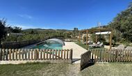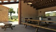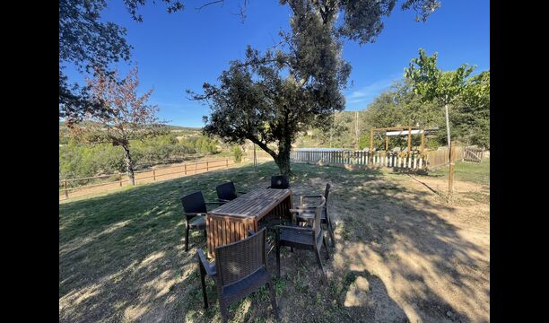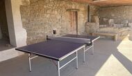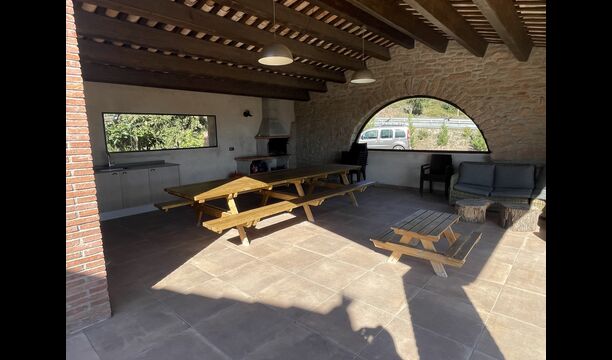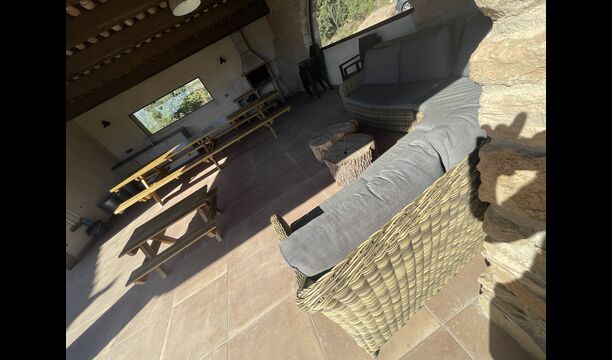 Fuera de la casa principal, hay un área/patio para barbacoa, donde también encontrará un largo banco para cenar y sofás , una minicocina con fregadero y uno de los dos porches, con vistas al hermoso valle que se encuentra debajo. La propiedad también cuenta con muchas instalaciones para que disfruten los niños; columpios, un trampolín, un arena/parque infantil y – ya seas joven o mayor, no importa si eres joven o mayor. una mesa de tenis para divertirte por la tarde en familia.