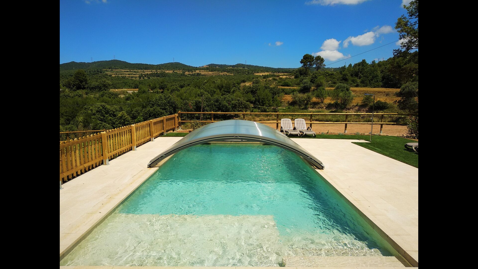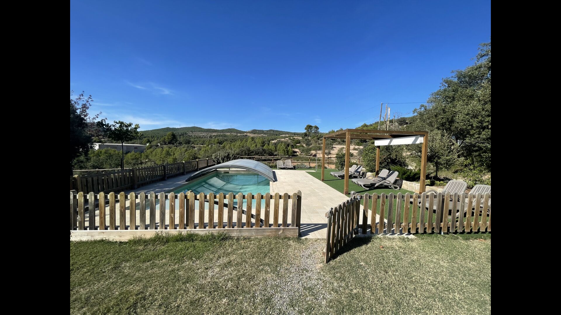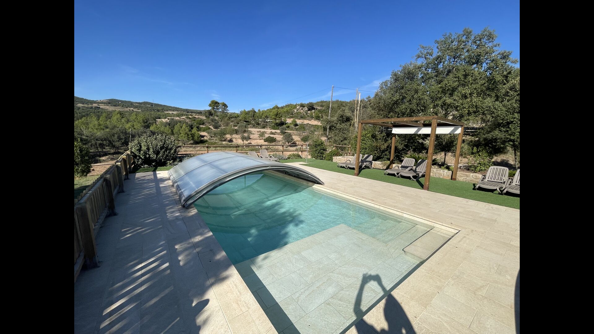 Ven y relájate en las lujosas alturas de Masia Escudia. Situada en las colinas tras la capital regional de Manresa, se encuentra una bonita casa de vacaciones, completa y recién reformada, con calidad en cada detalle. . Desde el área de la piscina, tendrás una vista de 360 grados a las montañas en todas las direcciones, y sin vecinos cercanos.