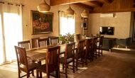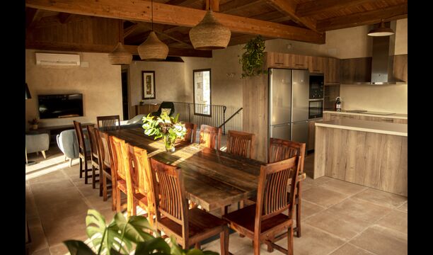 La casa en sí tiene una superficie de 300 metros cuadrados, con dos porches, ambos de 70 metros cuadrados , con un total de 440 metros cuadrados. La casa dispone de 6 dormitorios, todos con baño privado, y espacio para hasta 17 personas.