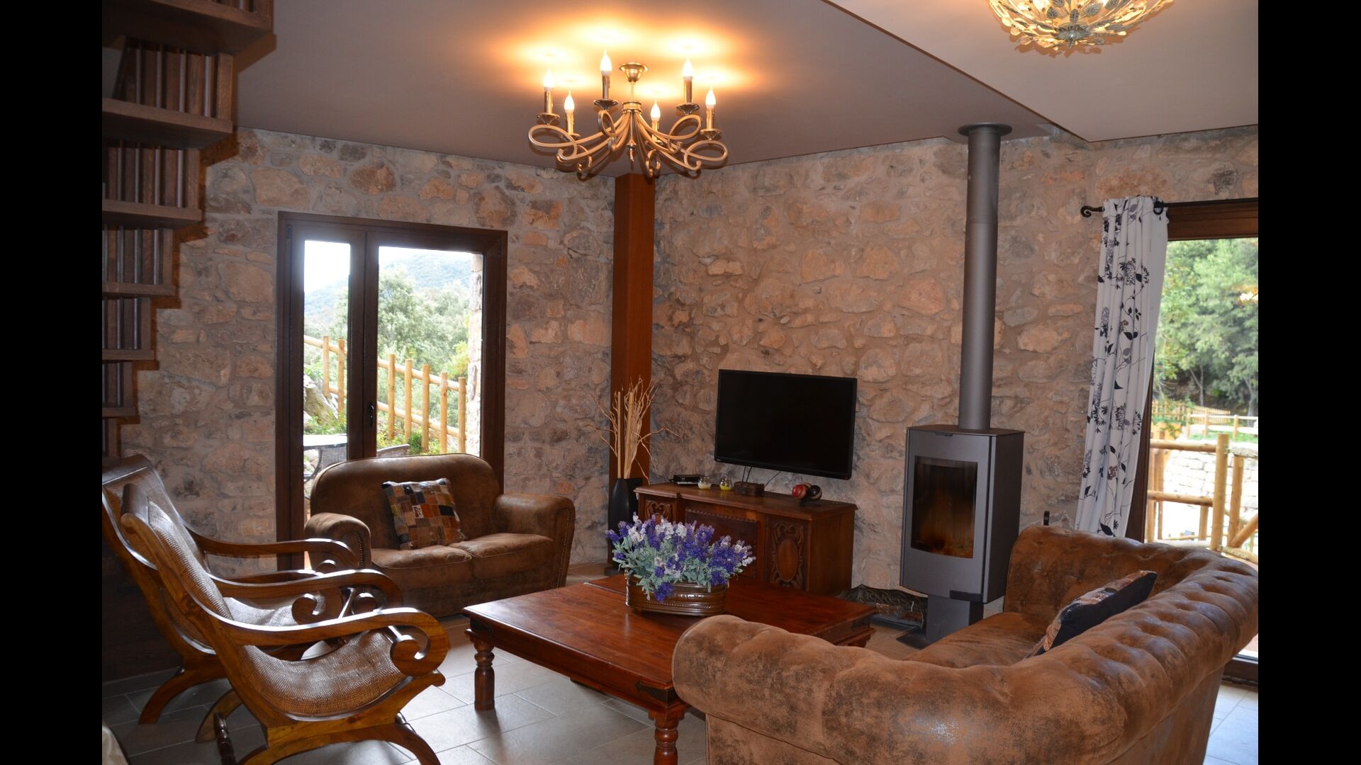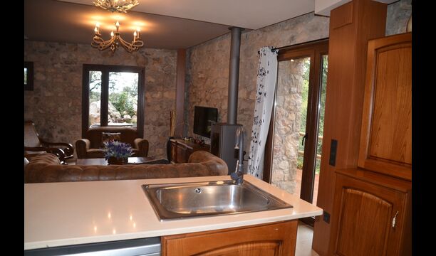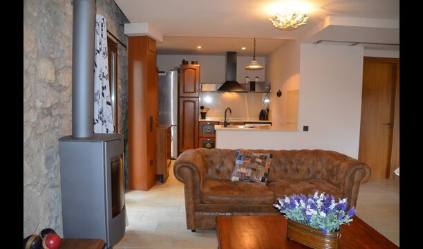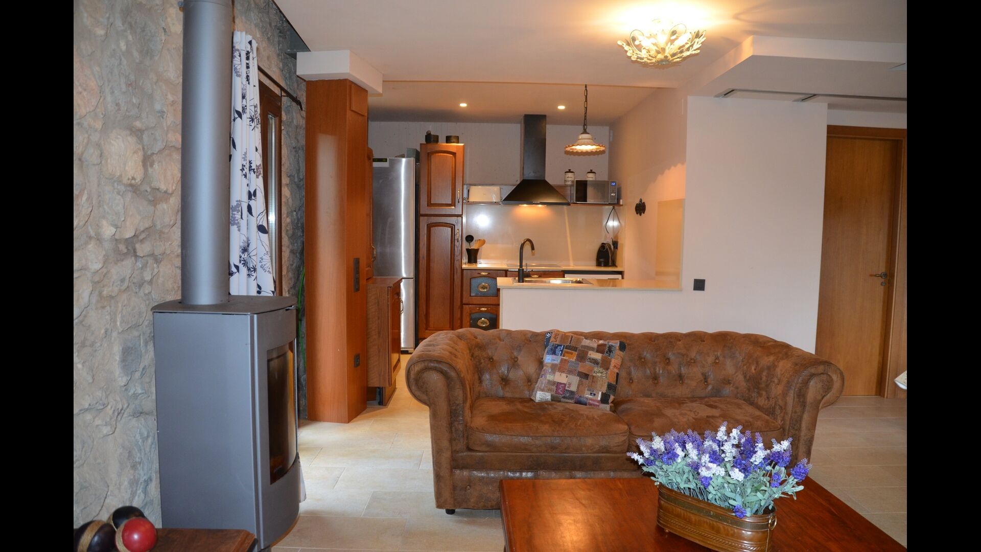 Vila Mas Vistador - Era tiene una maravillosa sala de estar que incluye una agradable área de sofá y TV de pantalla plana. La cocina está bien equipada con, entre otras cosas, congelador, refrigerador, lavadora, estufas y horno. Además, Era tiene una acogedora terraza equipada con mesa y sillas, el lugar perfecto para disfrutar de la cena bajo el sol de la tarde catalana.