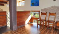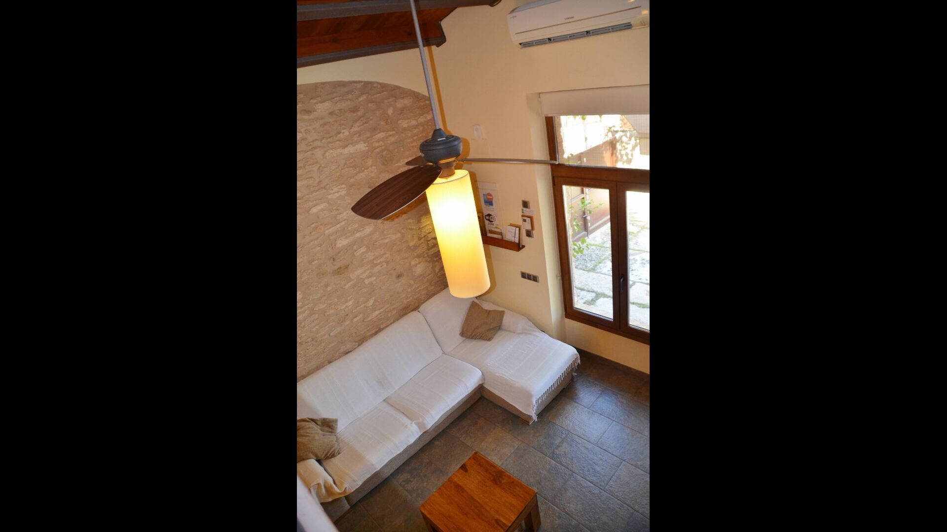La casa en sí ha sido restaurada de una manera moderna, casi nórdica, con espacios abiertos, grandes ventanas y materias primas. Tiene un área común abierta con una gran sala de estar con hermosos muebles altos y materiales impresionantes. El salón cuenta con televisión vía satélite, DVD con "cine en casa", una chimenea (para los días más fríos de invierno), aire acondicionado y hay WI-FI en la casa. La cocina está situada en relación con el salón y tiene todas las comodidades modernas.