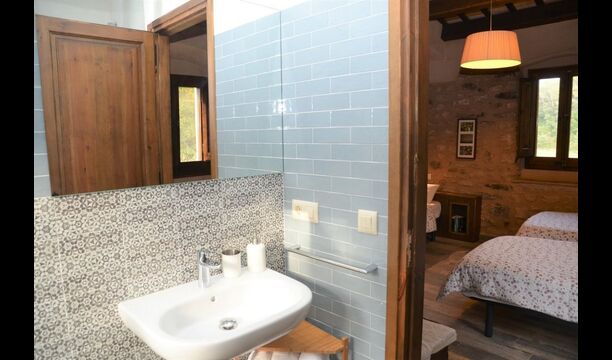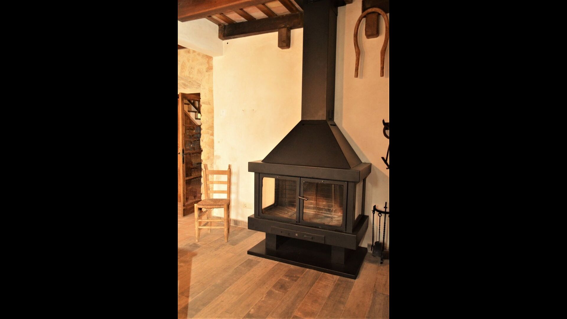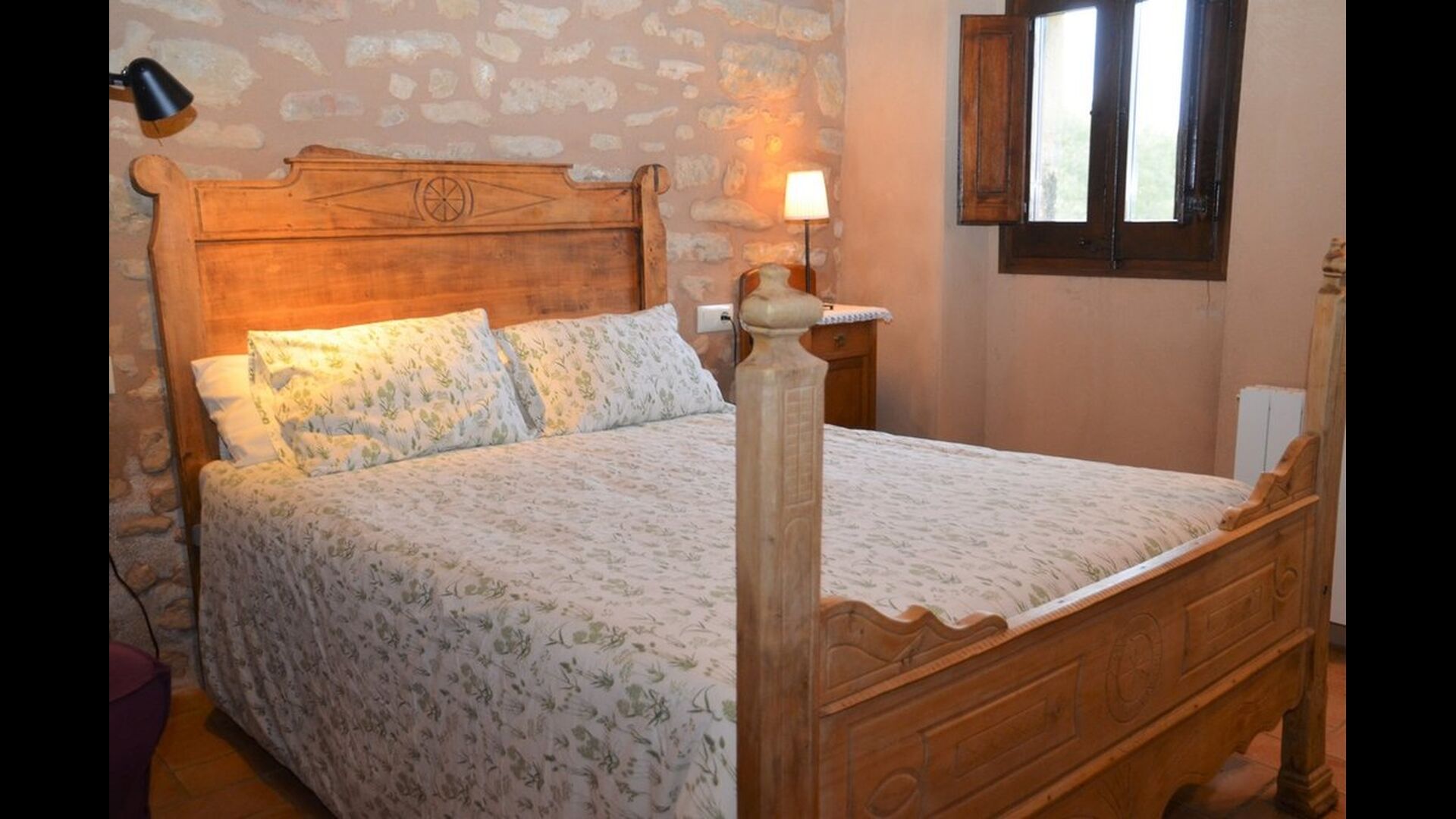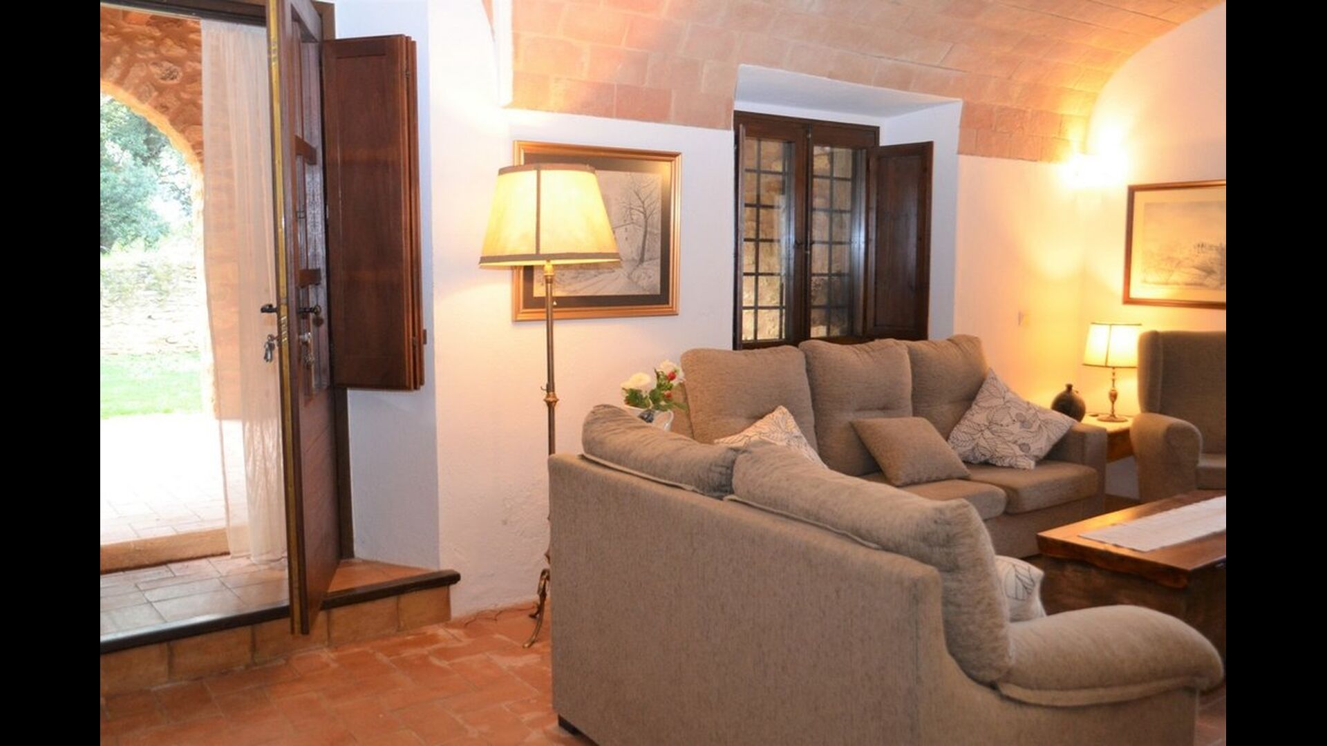 Cuando ingreses a la planta baja desde el área de la piscina, serás conducido a la gran cocina abierta y comedor. El interior y el estilo de la cocina es muy auténtico y de buen gusto, con un gran armario de madera, sillas de madera y una acogedora chimenea. Tiene una barra de mostrador en un lado, con dos taburetes y está muy bien equipado con todo lo que pueda necesitar, incluidos; nevera, congelador, lavavajillas, microondas e incluso una cafetera Nespresso. El comedor también es increíblemente acogedor con un techo arqueado y paredes de piedra caliza auténticas. Tiene una larga mesa de comedor de madera con bancos de madera. En la siguiente habitación se encuentra el salón con cómodos sofás y sillas. Hay un televisor y una máquina de DVD, y la casa también cuenta con Wi-Fi, por lo que podrá descansar y relajarse aquí, si lo desea. También hay un pequeño baño con inodoro en este piso, por lo que no tiene que subir las escaleras si es necesario. Al final de esta parte de la casa, encontrará una salida que lo lleva a una terraza cubierta con una mesa grande. El lugar perfecto para cenar o disfrutar de una bebida fría por la noche, en las hermosas temperaturas catalanas.