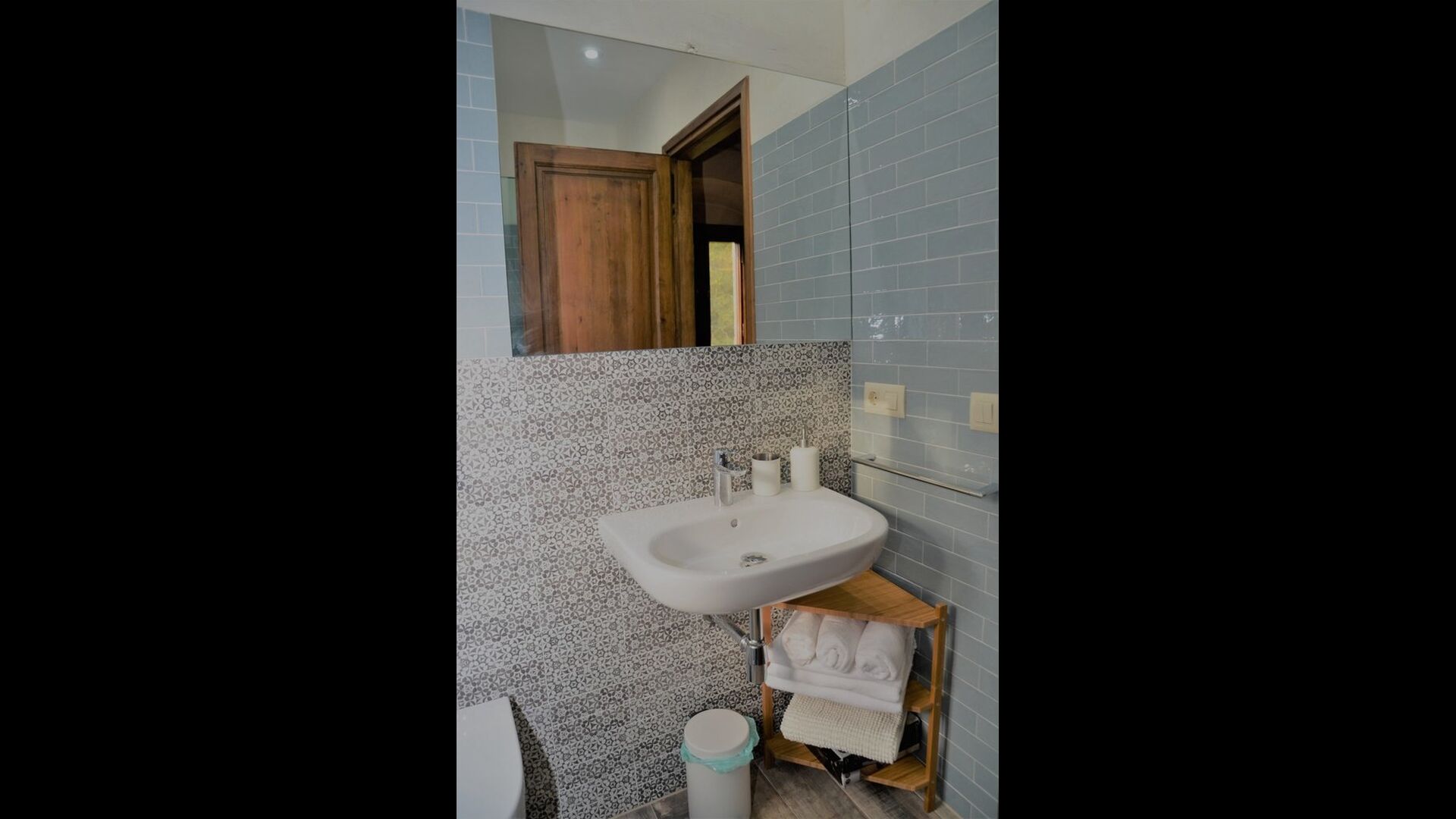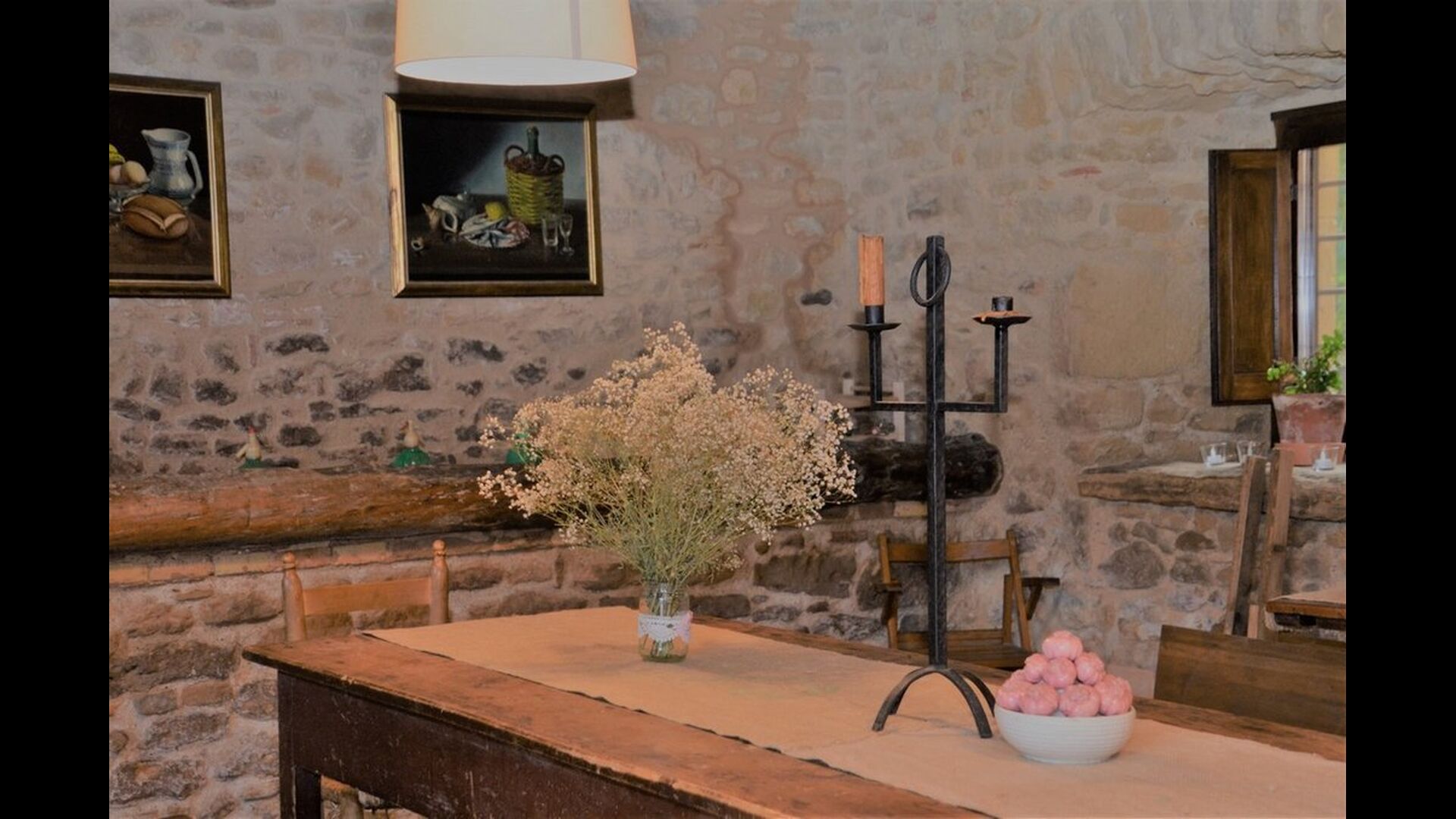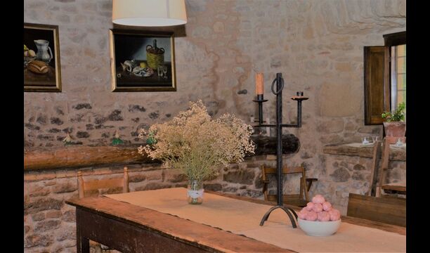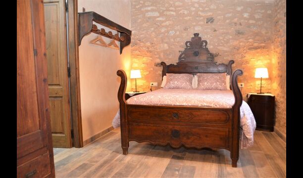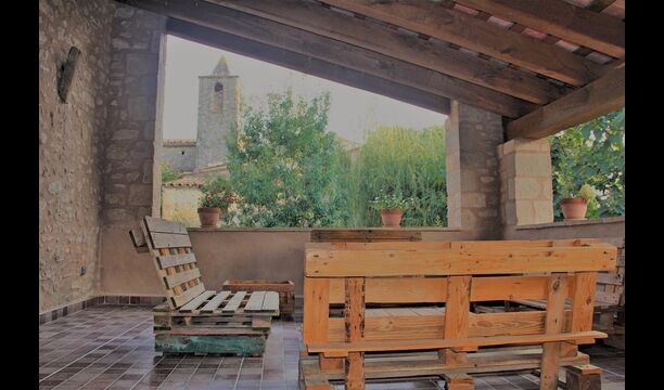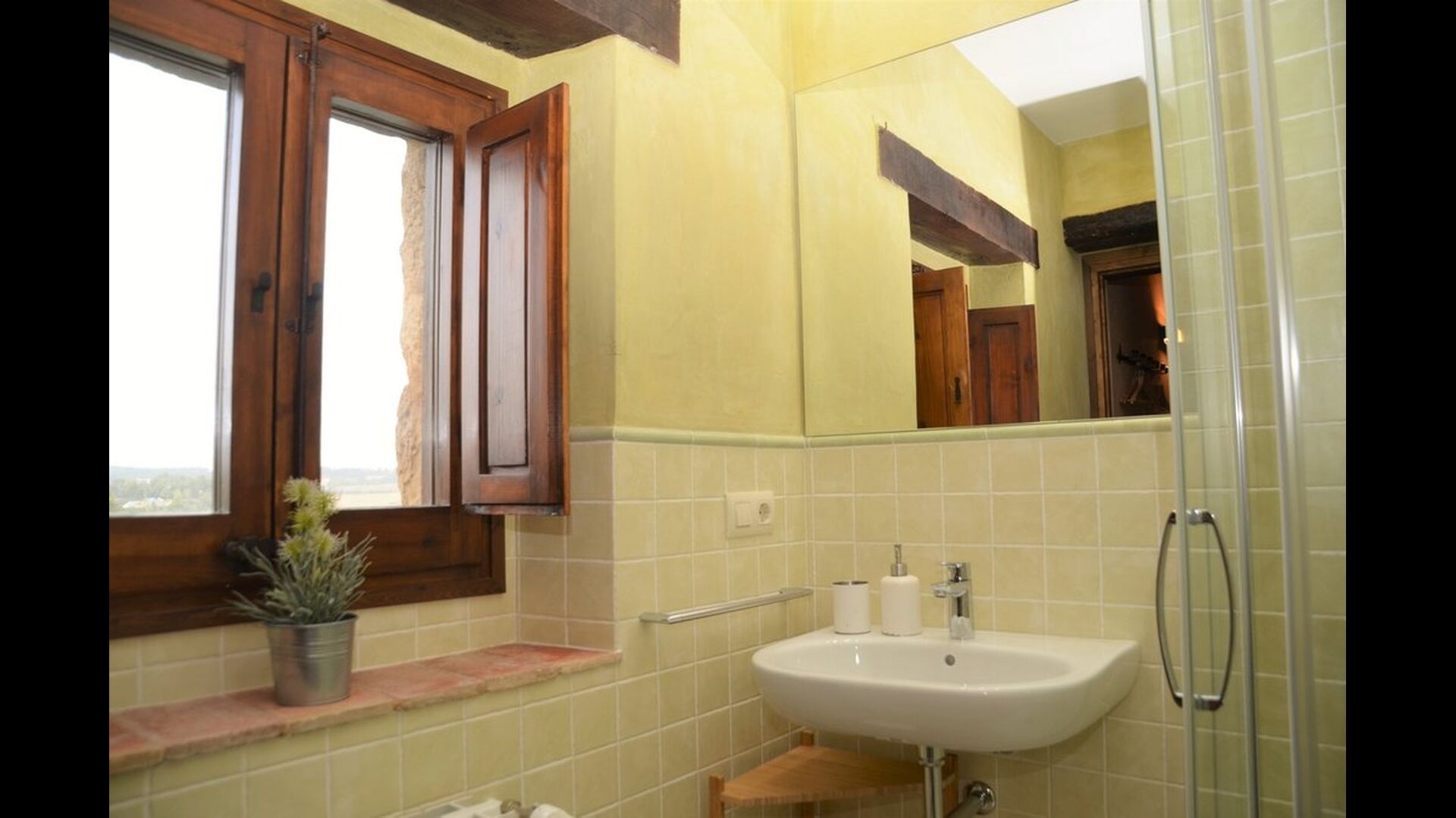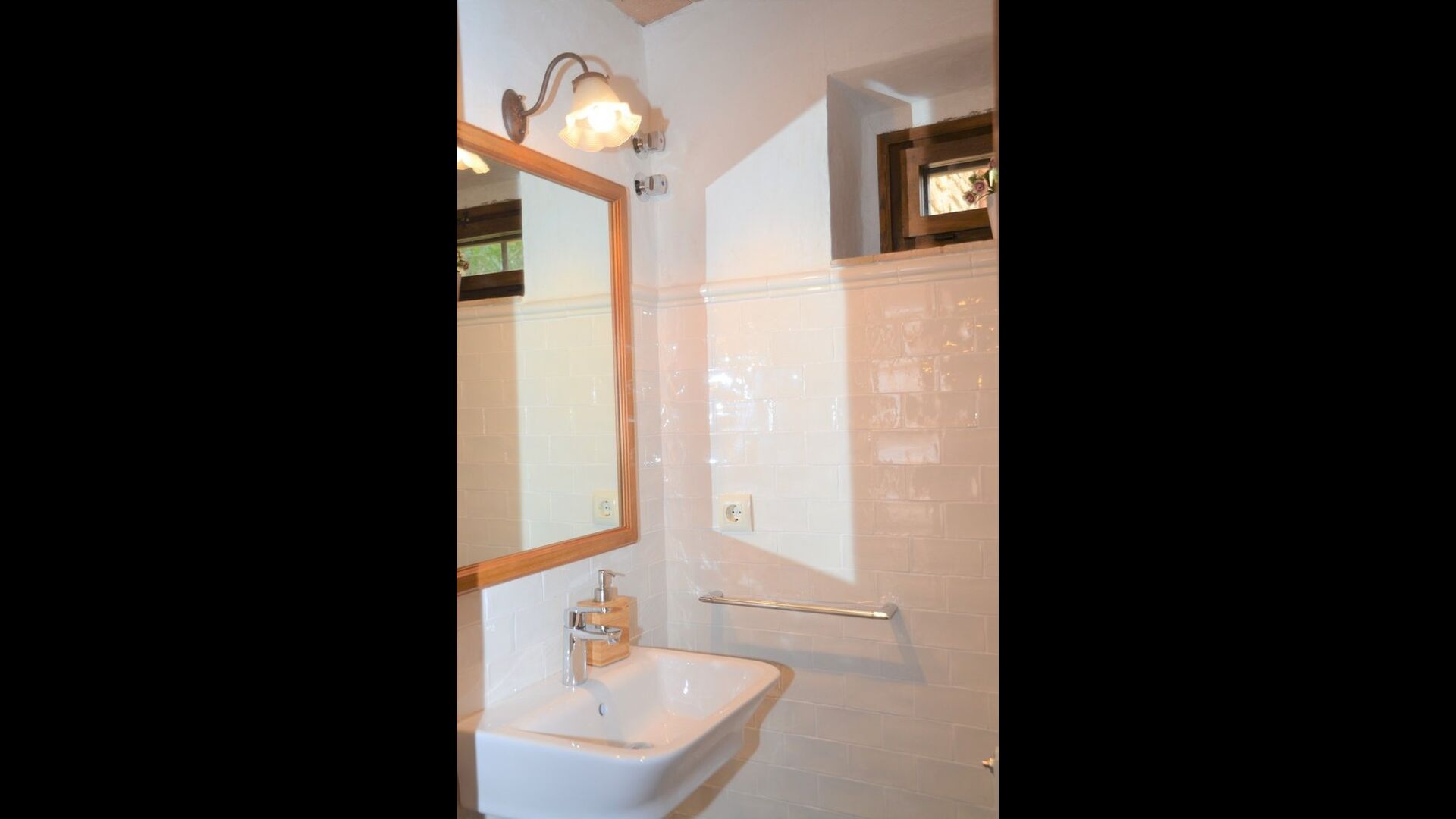 Cuando ingreses a la planta baja desde el área de la piscina, serás conducido a la gran cocina abierta y comedor. El interior y el estilo de la cocina es muy auténtico y de buen gusto, con un gran armario de madera, sillas de madera y una acogedora chimenea. Tiene una barra de mostrador en un lado, con dos taburetes y está muy bien equipado con todo lo que pueda necesitar, incluidos; nevera, congelador, lavavajillas, microondas e incluso una cafetera Nespresso. El comedor también es increíblemente acogedor con un techo arqueado y paredes de piedra caliza auténticas. Tiene una larga mesa de comedor de madera con bancos de madera. En la siguiente habitación se encuentra el salón con cómodos sofás y sillas. Hay un televisor y una máquina de DVD, y la casa también cuenta con Wi-Fi, por lo que podrá descansar y relajarse aquí, si lo desea. También hay un pequeño baño con inodoro en este piso, por lo que no tiene que subir las escaleras si es necesario. Al final de esta parte de la casa, encontrará una salida que lo lleva a una terraza cubierta con una mesa grande. El lugar perfecto para cenar o disfrutar de una bebida fría por la noche, en las hermosas temperaturas catalanas.