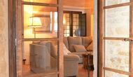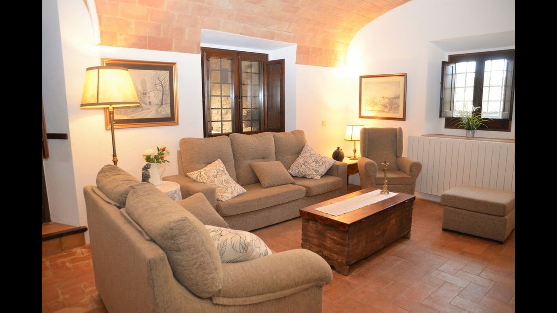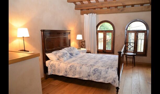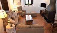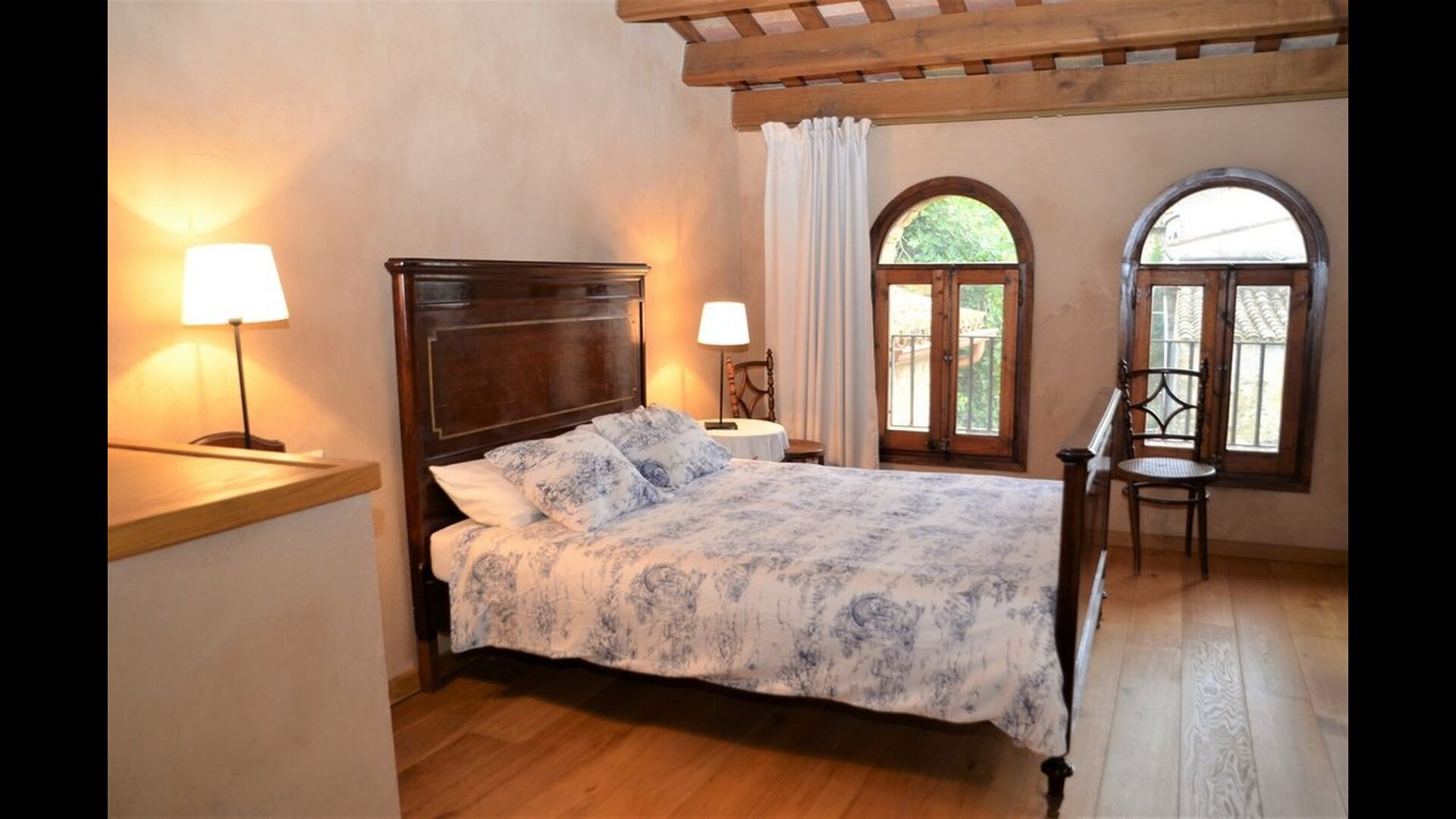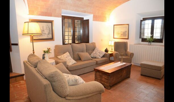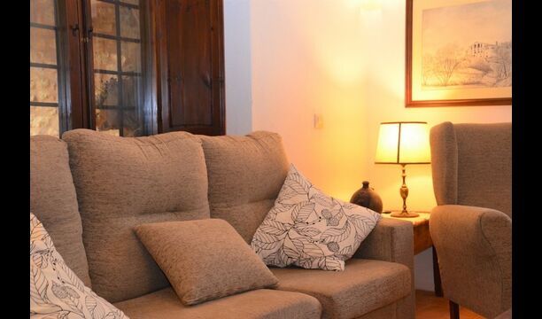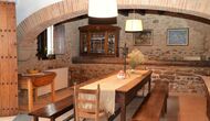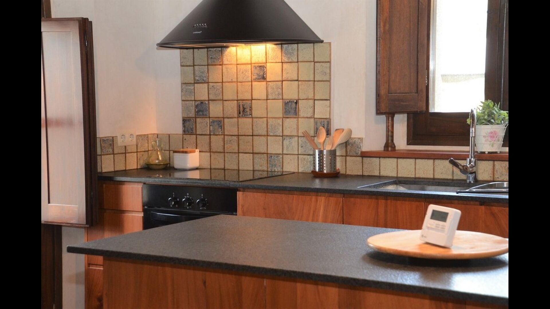 Cuando ingreses a la planta baja desde el área de la piscina, serás conducido a la gran cocina abierta y comedor. El interior y el estilo de la cocina es muy auténtico y de buen gusto, con un gran armario de madera, sillas de madera y una acogedora chimenea. Tiene una barra de mostrador en un lado, con dos taburetes y está muy bien equipado con todo lo que pueda necesitar, incluidos; nevera, congelador, lavavajillas, microondas e incluso una cafetera Nespresso. El comedor también es increíblemente acogedor con un techo arqueado y paredes de piedra caliza auténticas. Tiene una larga mesa de comedor de madera con bancos de madera. En la siguiente habitación se encuentra el salón con cómodos sofás y sillas. Hay un televisor y una máquina de DVD, y la casa también cuenta con Wi-Fi, por lo que podrá descansar y relajarse aquí, si lo desea. También hay un pequeño baño con inodoro en este piso, por lo que no tiene que subir las escaleras si es necesario. Al final de esta parte de la casa, encontrará una salida que lo lleva a una terraza cubierta con una mesa grande. El lugar perfecto para cenar o disfrutar de una bebida fría por la noche, en las hermosas temperaturas catalanas.