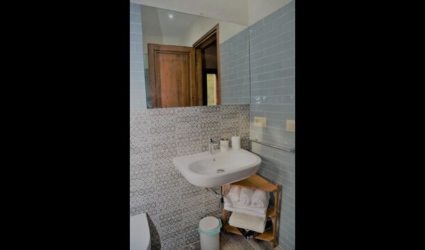 Hay tres dormitorios ubicados en el primer piso. El primer dormitorio es una habitación doble con una cama doble grande. También es posible establecer una cama individual adicional en el dormitorio, si son más de 10 invitados. El siguiente dormitorio es una gran habitación triple con tres camas individuales. El tercer dormitorio también es una habitación triple pero con una cama doble y una cama individual. También es posible establecer una cama supletoria en esta habitación. Esta habitación también tiene la característica especial de tener un pequeño balcón con la vista más impresionante mirando a los hermosos alrededores. También hay otra terraza cubierta muy grande ubicada en el primer piso, con bancos de madera y una pequeña mesa. El último dormitorio se encuentra en el segundo piso con mayor privacidad. Es un dormitorio muy grande con una cama doble y con la posibilidad de tener otras 2 camas adicionales instaladas. Todas las habitaciones tienen baño privado.
