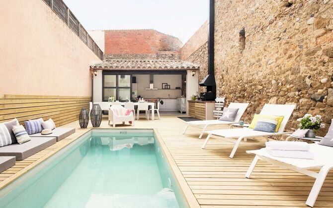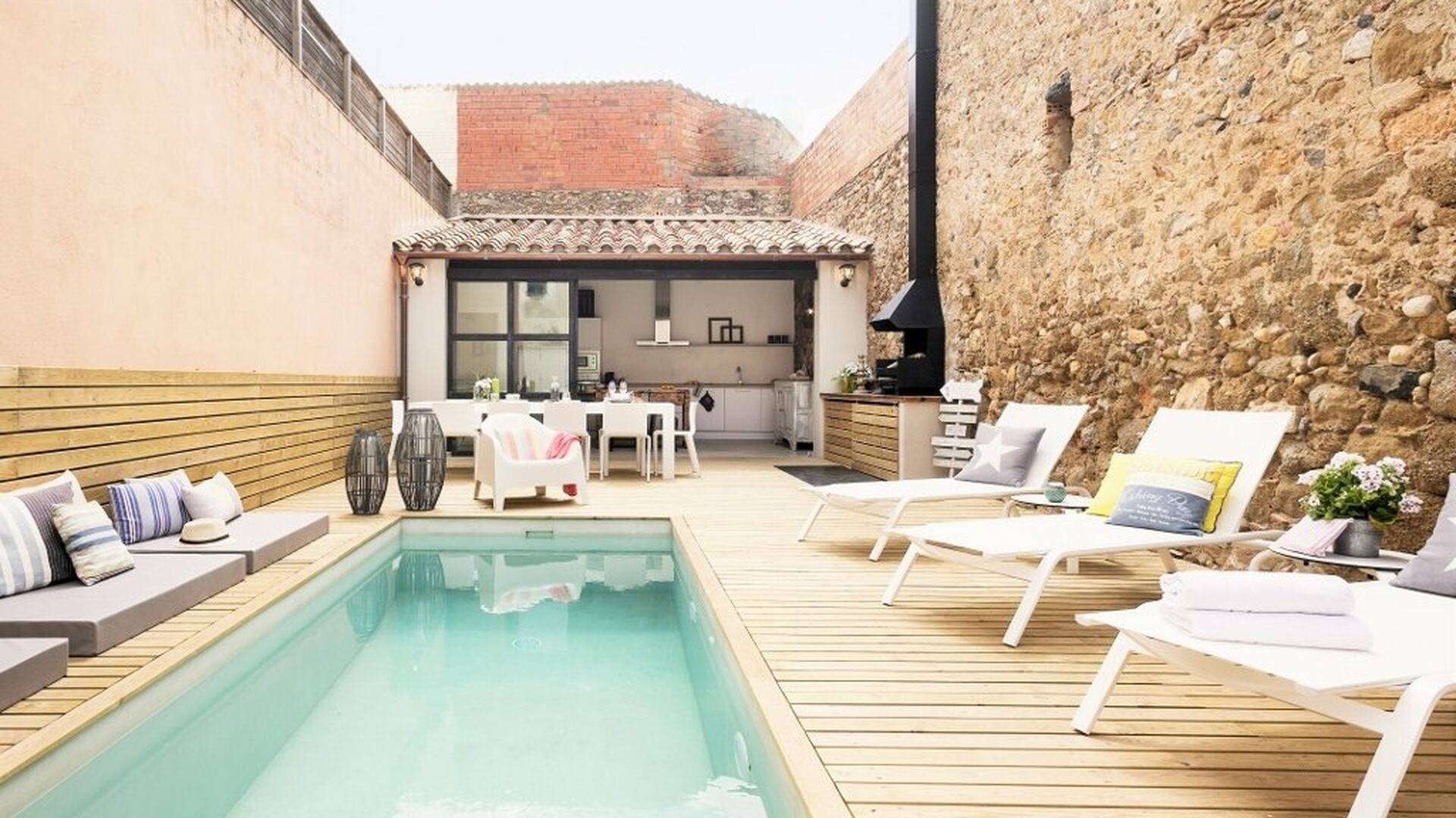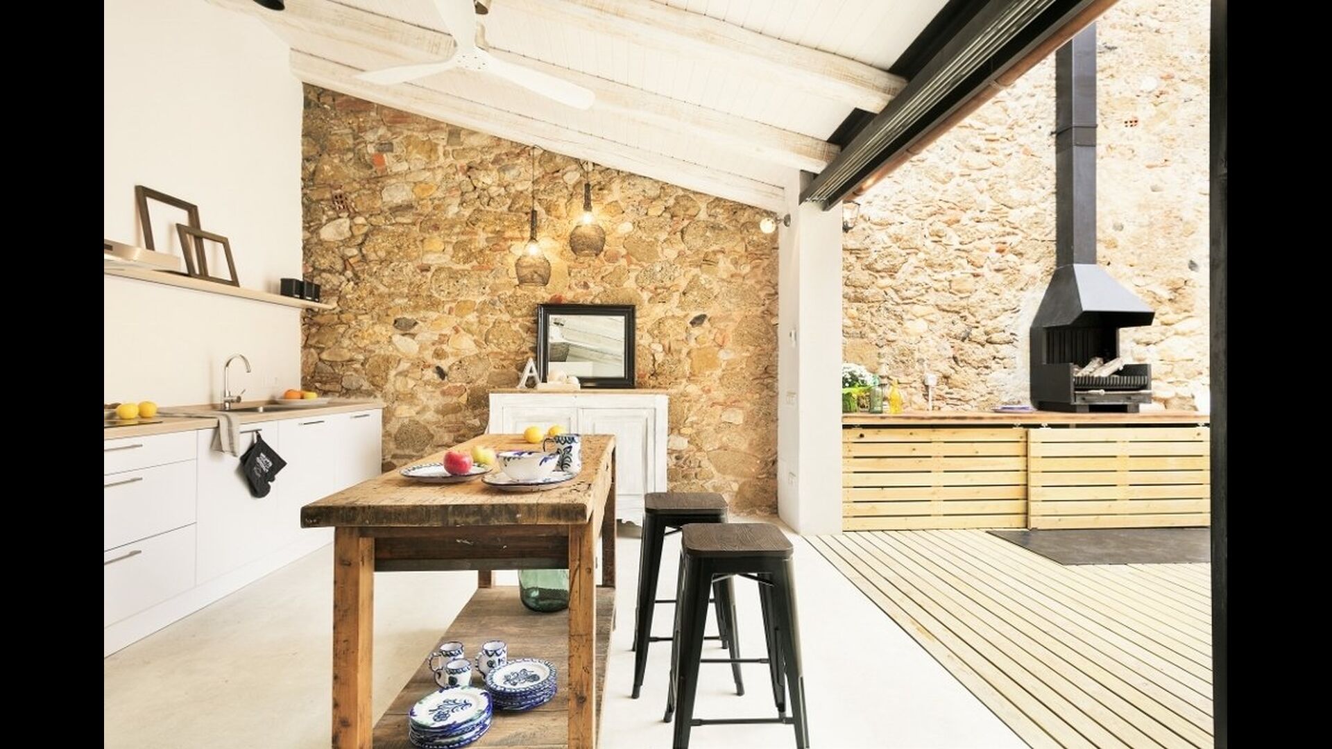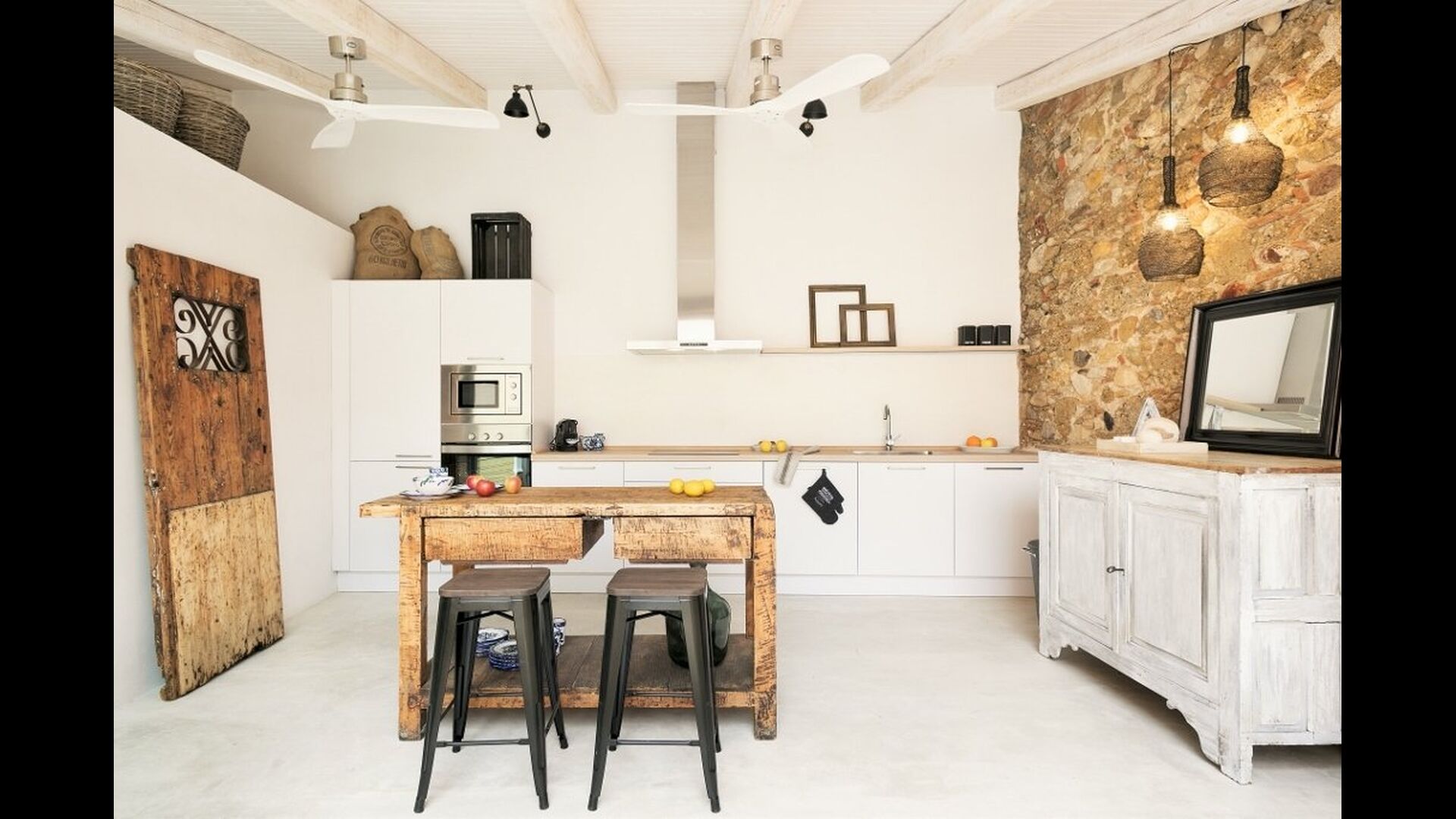 Caminando por la acogedora calle del pueblo catalán, apenas notará Cal Mareña de Costa Brava, ya que se mezcla entre las otras casas auténticas. Probablemente no pienses nada especial en esta casa, sin embargo, cuando pongas tu mano en la manija de la puerta, esto va a cambiar. El interior de esta casa es una de las casas de vacaciones más bellas que hemos visto.