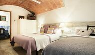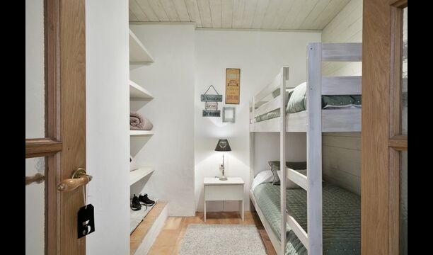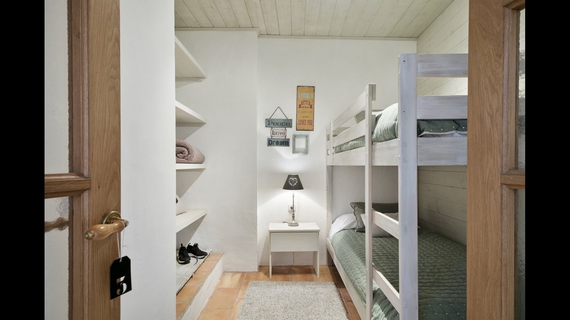 Al entrar, encontrará una habitación a su izquierda y otra a su derecha; ambos dispuestos a la perfección. Ambos tienen baños en suite (uno de ellos con bañera) y televisores de pantalla plana, así como decoraciones modernas y acogedoras. Más abajo en el pasillo, se encuentran los dos últimos dormitorios en el primer piso. La primera tiene una cama doble y una cama individual, también con baño en suite. El segundo tiene una litera y es adecuado para niños. Asimismo, estos dos están organizados en un estilo muy moderno y confortable. Cuatro del total de cinco habitaciones están situadas en el primer piso, con el restante en el segundo piso, que ofrece dos camas individuales, por supuesto, con la posibilidad de unirlas en una cama doble. El primer piso termina en un área de relajación elegantemente arreglada con techo abierto al tercer piso.