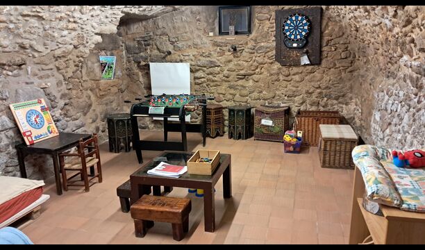 Además, hay una sala de juegos para que los niños se diviertan. viene con, entre otras cosas, un montaje de futbolín.