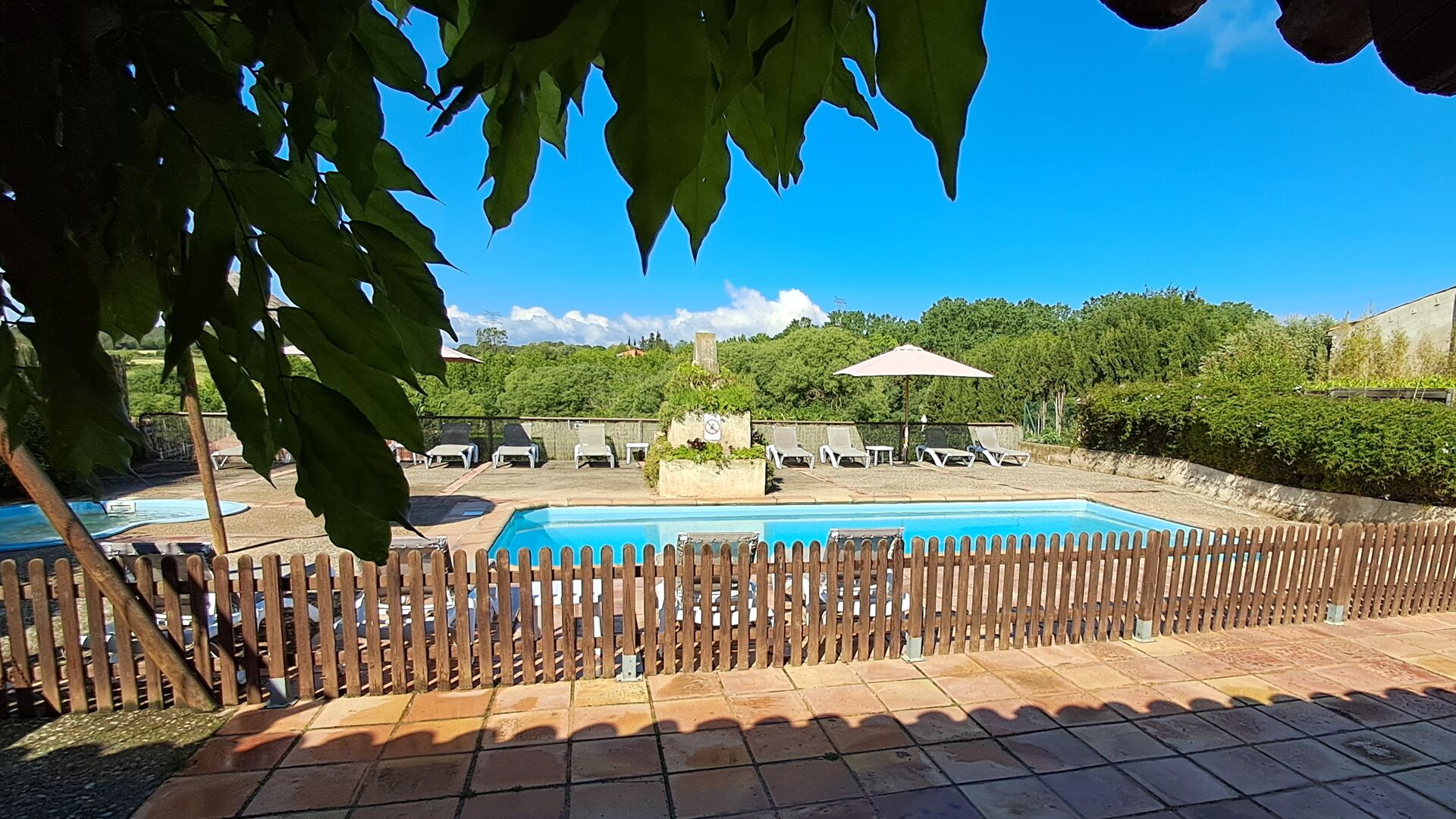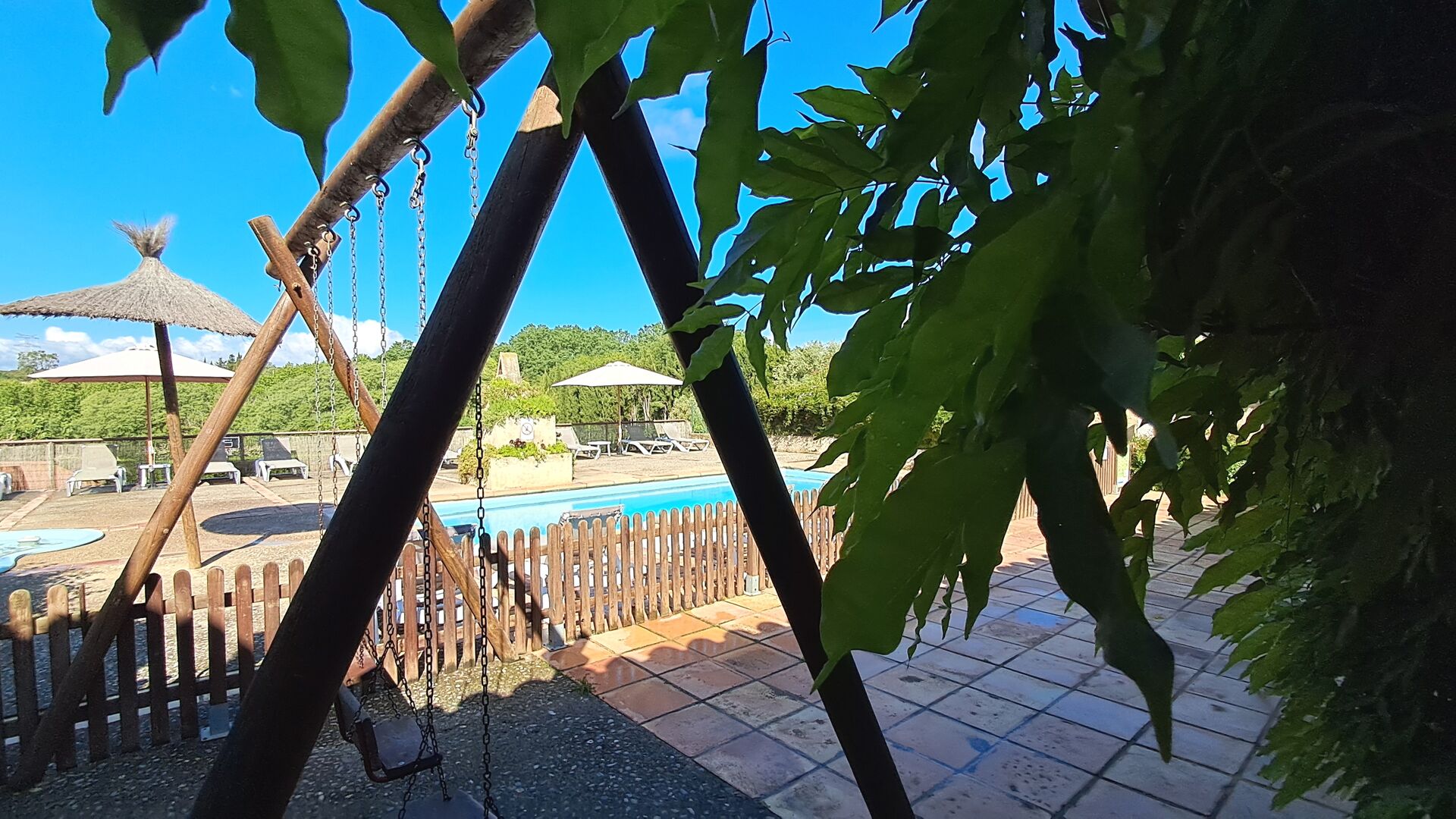 Una es la piscina comunitaria compartida, con una piscina redonda separada para los niños. Ambas piscinas están en la misma zona, que está vallada. También hay varias tumbonas para reclinarse y relajarse. Al otro lado de la valla hay un columpio para los niños.