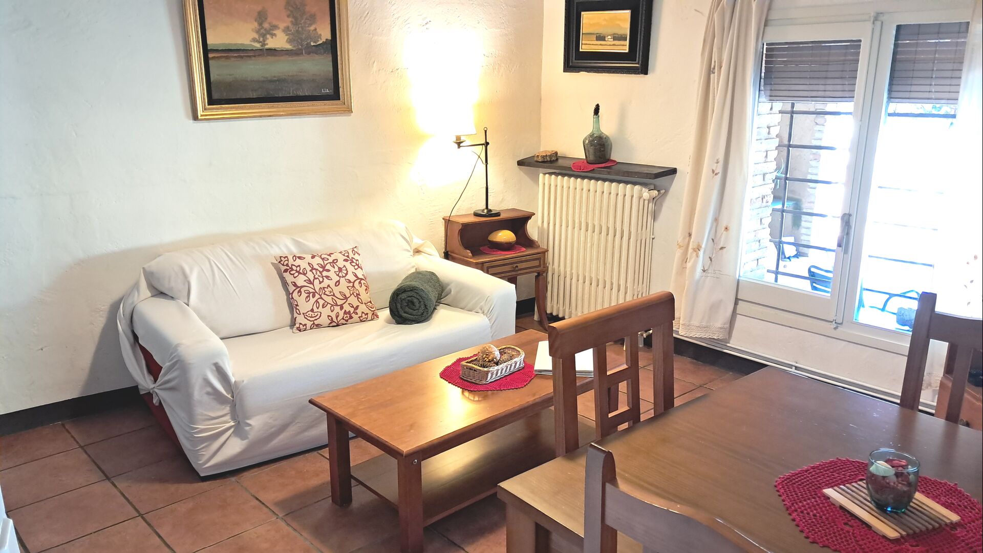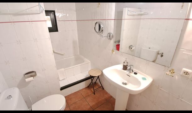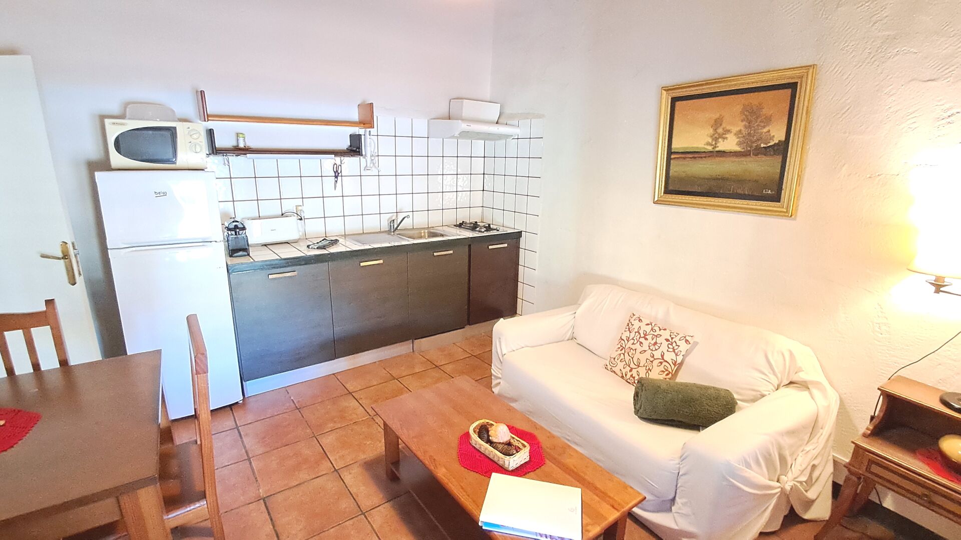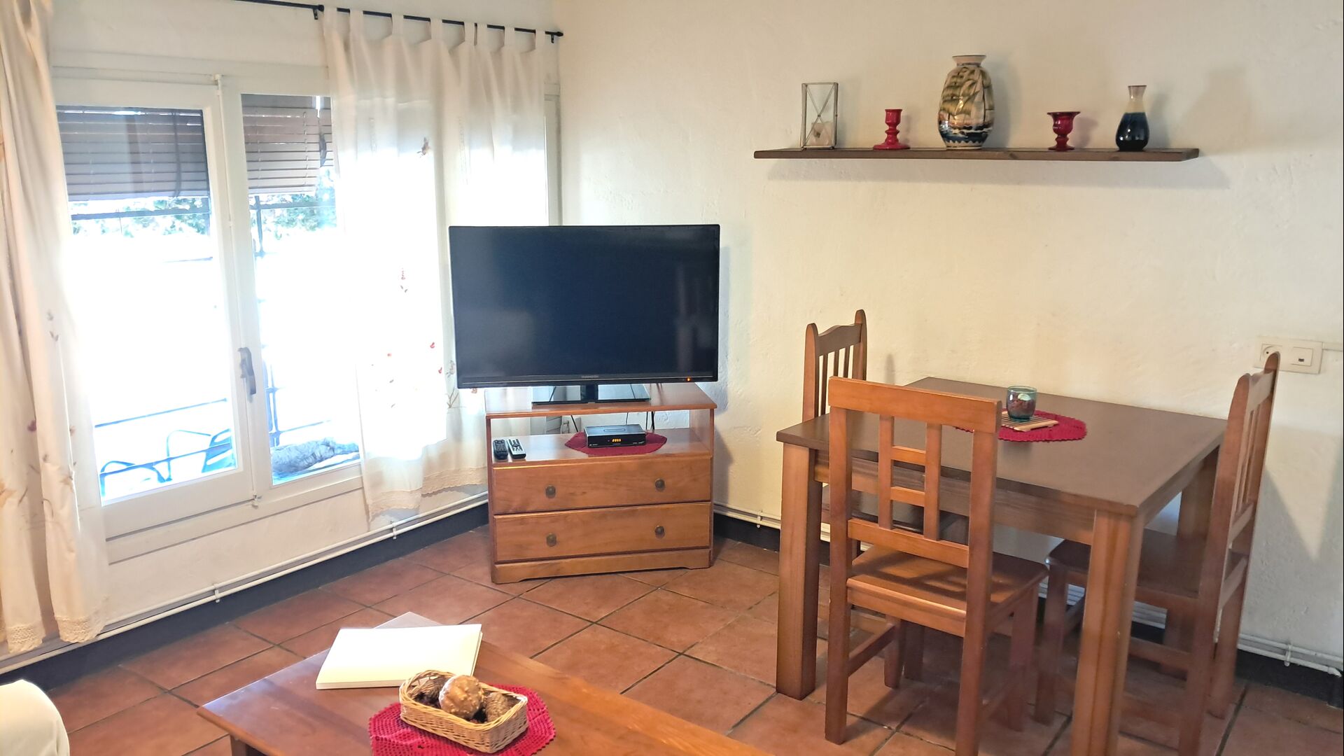 La sala común dispone de mesa de comedor, sofá y WIFI. TV Satélite y Chimenea. El dormitorio doble está equipado con ventilador de techo para mantener la temperatura agradable. Justo enfrente del apartamento tiene una terraza con sombra y la zona de barbacoa y la zona de la piscina están a la vuelta de la esquina.