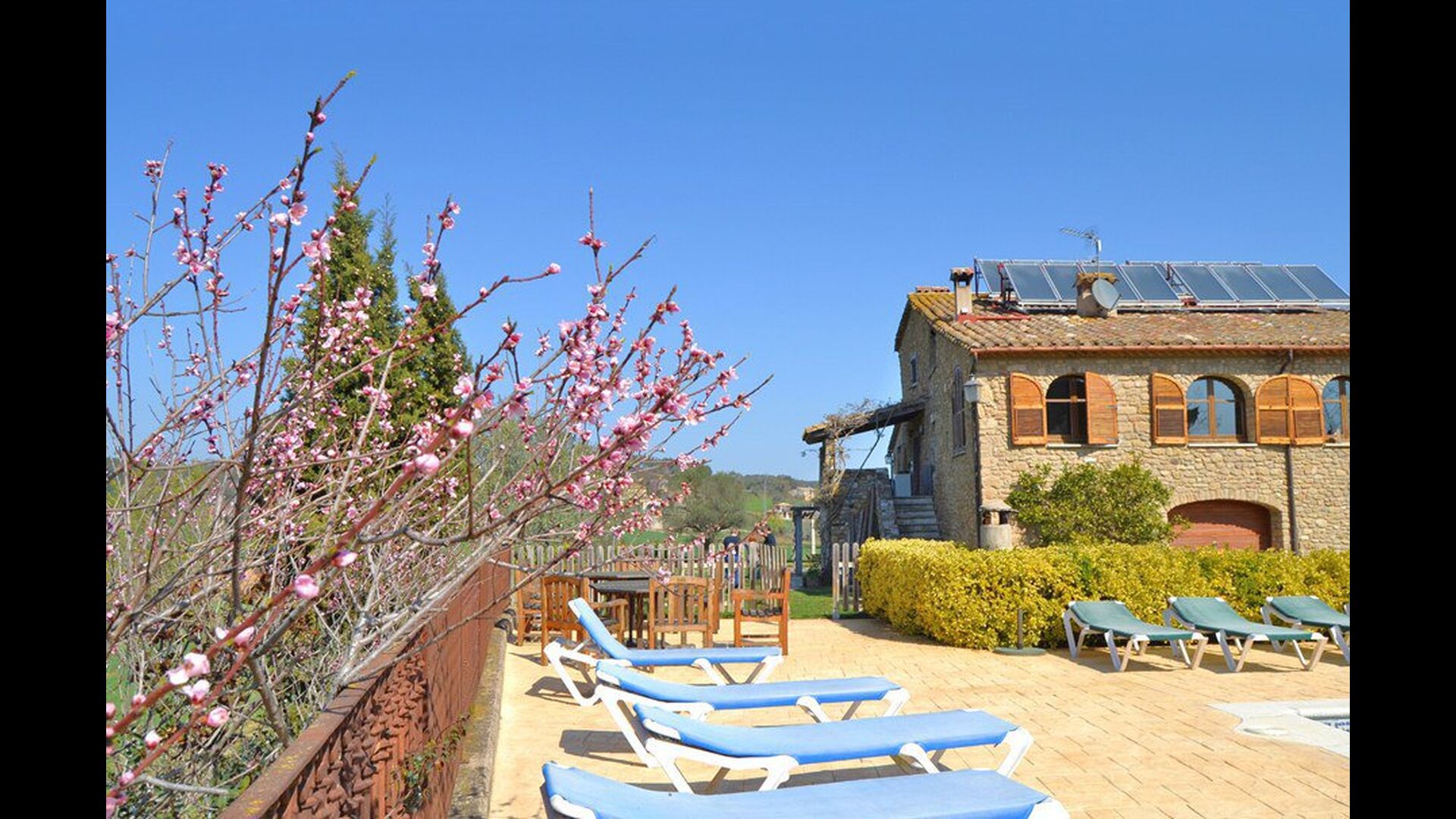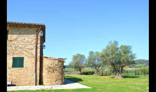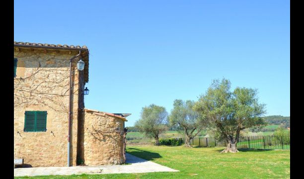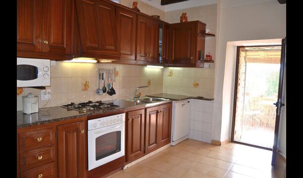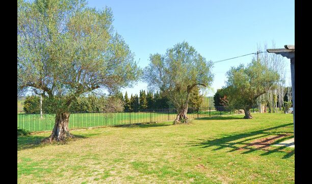 El jardín cuenta con numerosos olivos, flores, un gran césped y también hay una zona de barbacoa. La zona de la piscina es muy buena. Está vallado por seguridad y tiene una gran piscina de 12 x 6 metros, que es bastante grande para una casa de vacaciones. La piscina tiene pasos romanos, lo cual es agradable, si viajas con niños pequeños. La zona de la piscina también está equipada con sombrillas y muchas tumbonas.