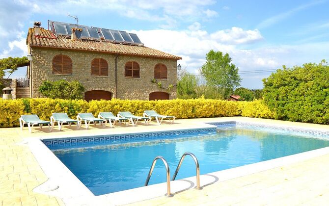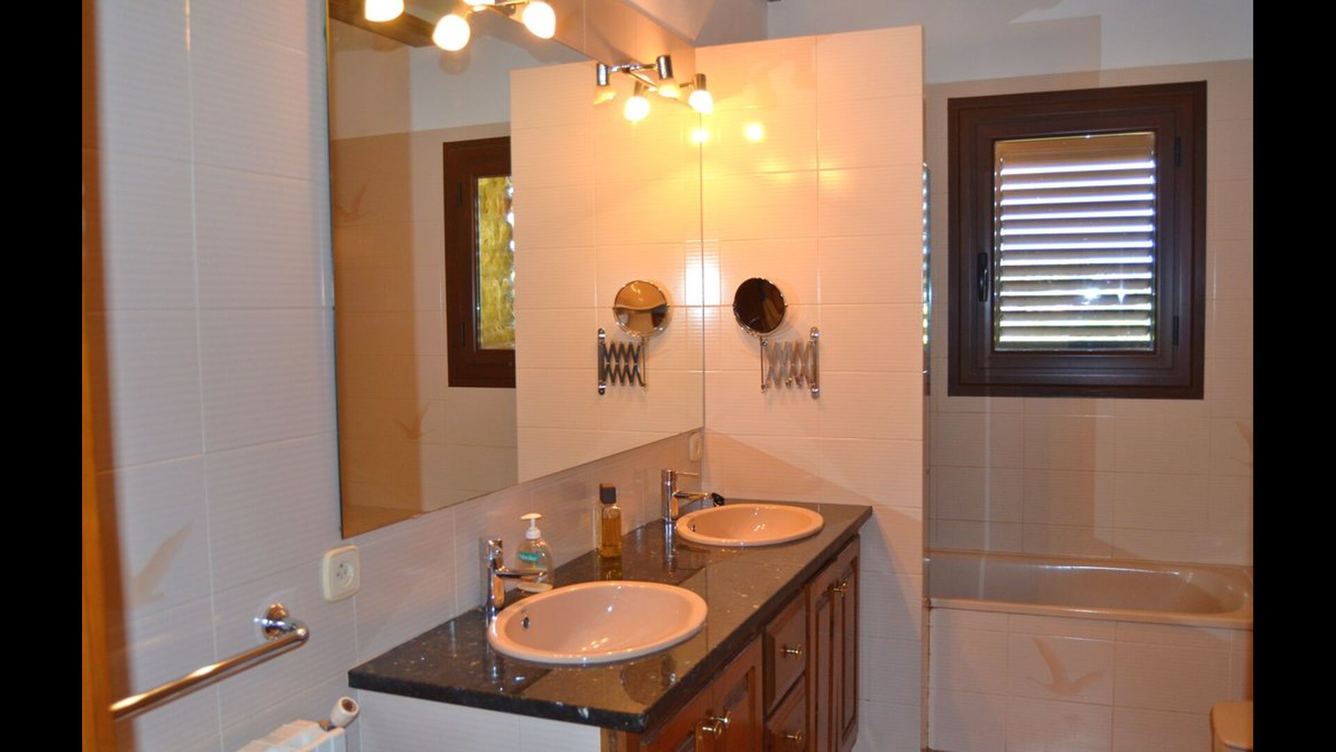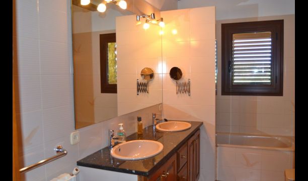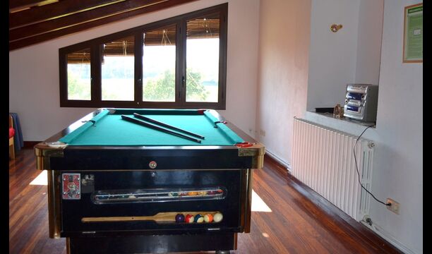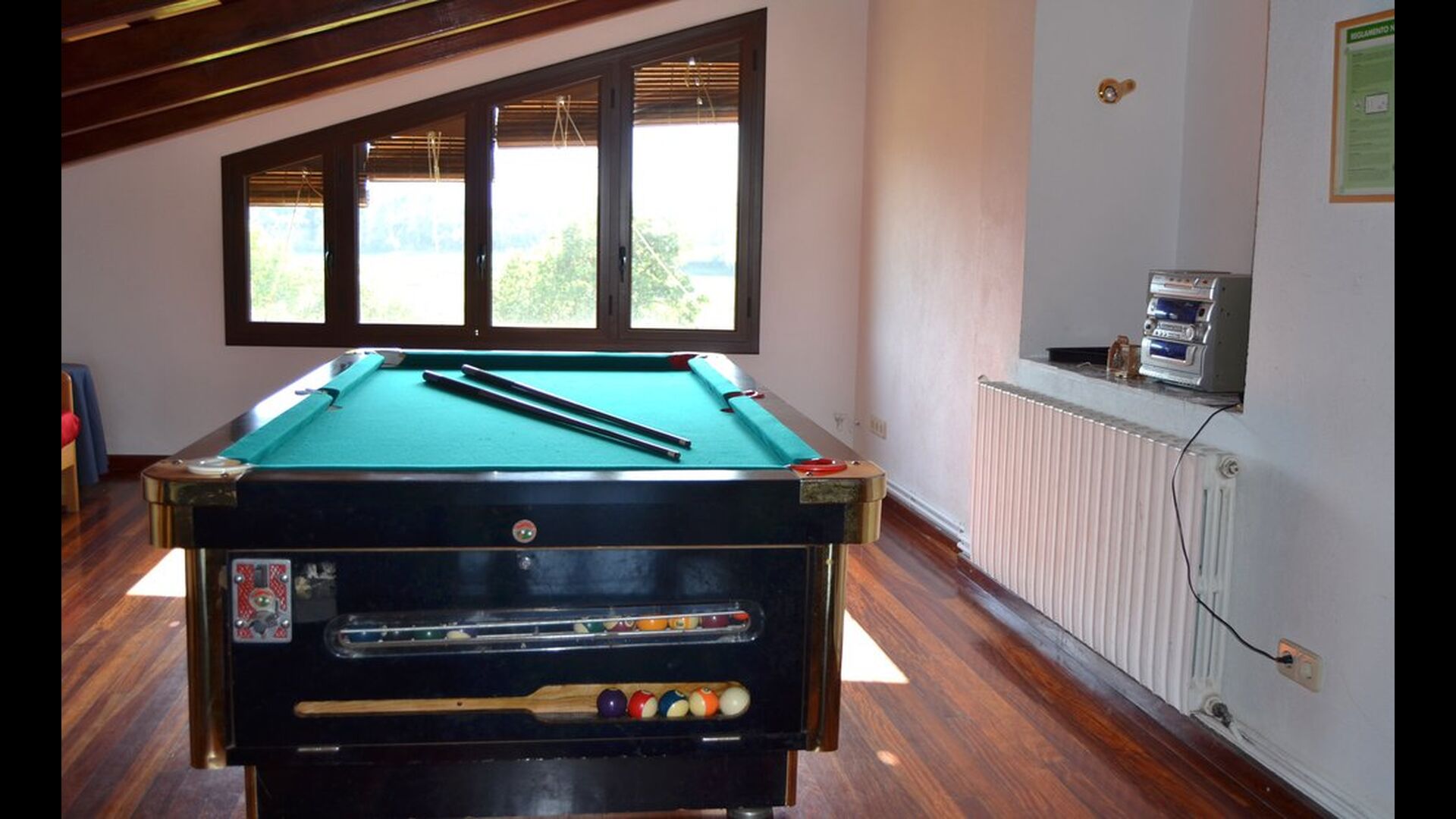 La casa está situada sin casas vecinas y desde la terraza del primer piso o desde el área de la piscina, tiene una vista espléndida de los hermosos alrededores. La casa de vacaciones cuenta con 7 bonitas habitaciones dobles (4 con camas dobles y 3 con dos camas individuales). En el segundo piso se encuentran tres de las habitaciones y un baño. Además, hay un área de descanso con dos sofás en un extremo y una mesa de billar en el otro extremo.