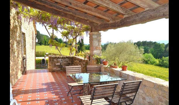 Terraza del primer piso con acceso directo a la cocina y una hermosa vista.Gran jardín con zona de barbacoa.