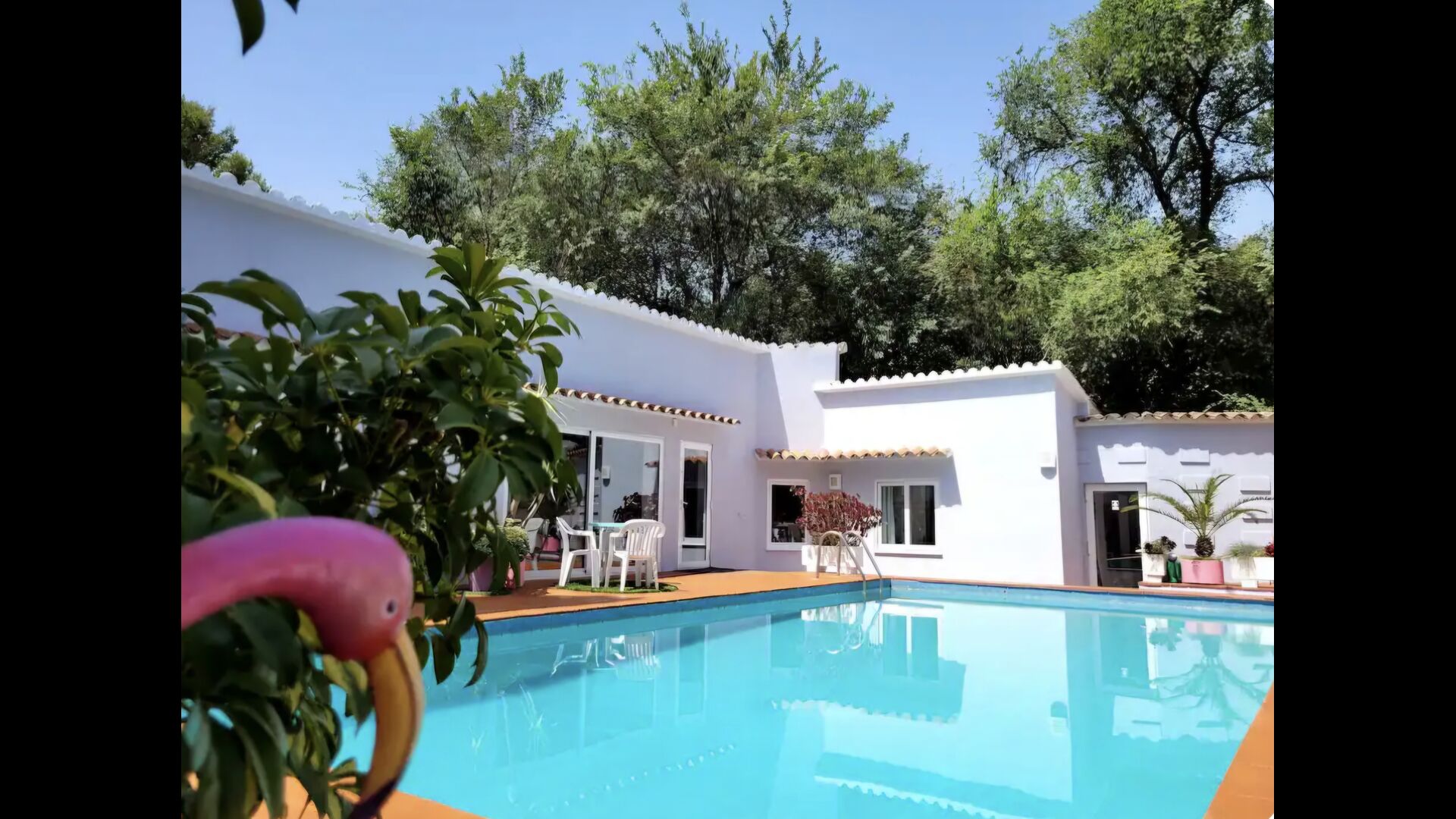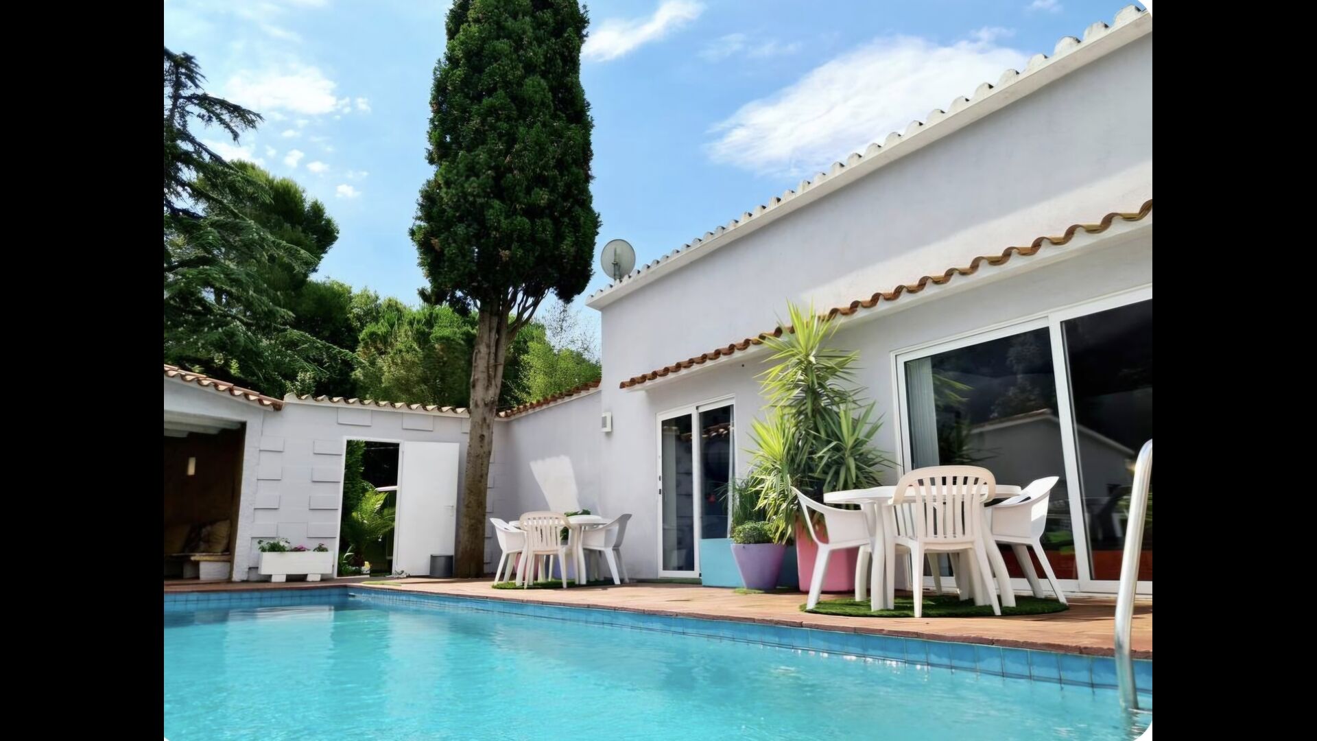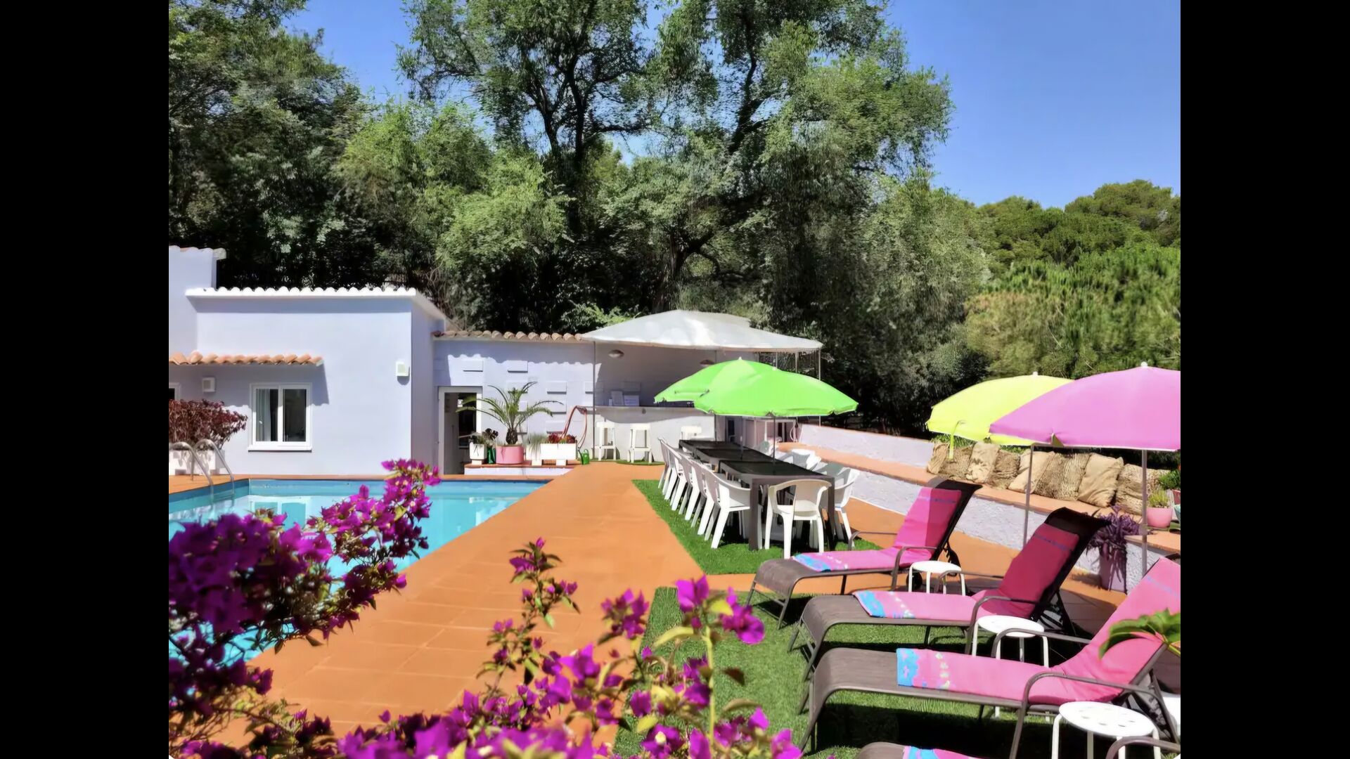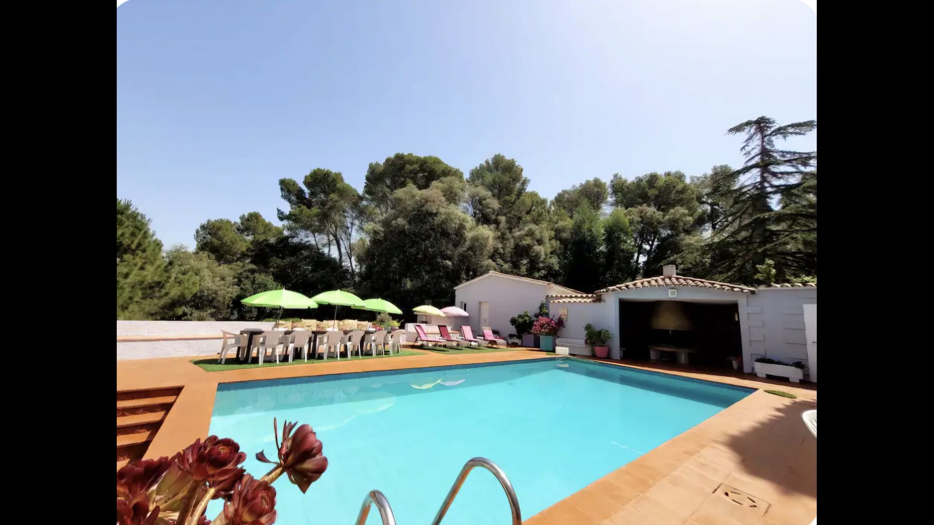 La piscina privada (aprox. 10 × 5 metros) está totalmente vallada, por lo que es adecuada para familias con niños. Alrededor de la piscina hay espacio de sobra para relajarse, tomar el sol o disfrutar de una tarde tranquila.