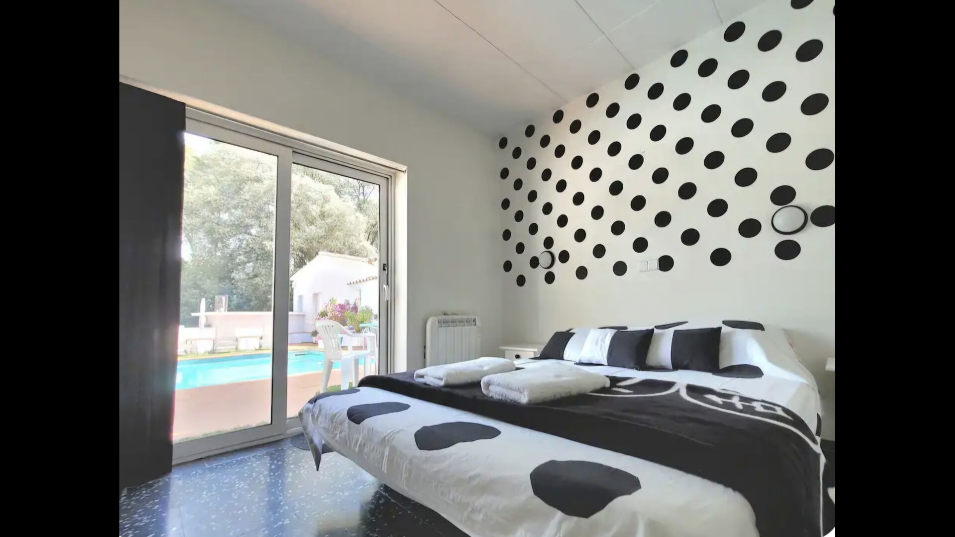 Can Oasis de Pals aloja cómodamente hasta 12 huéspedes distribuidos en 6 dormitorios dobles, con una combinación flexible de camas dobles e individuales. La distribución es ideal para familias, parejas o grupos de varias generaciones.