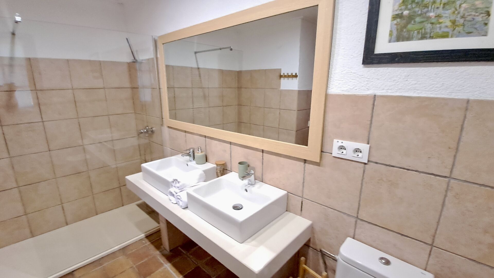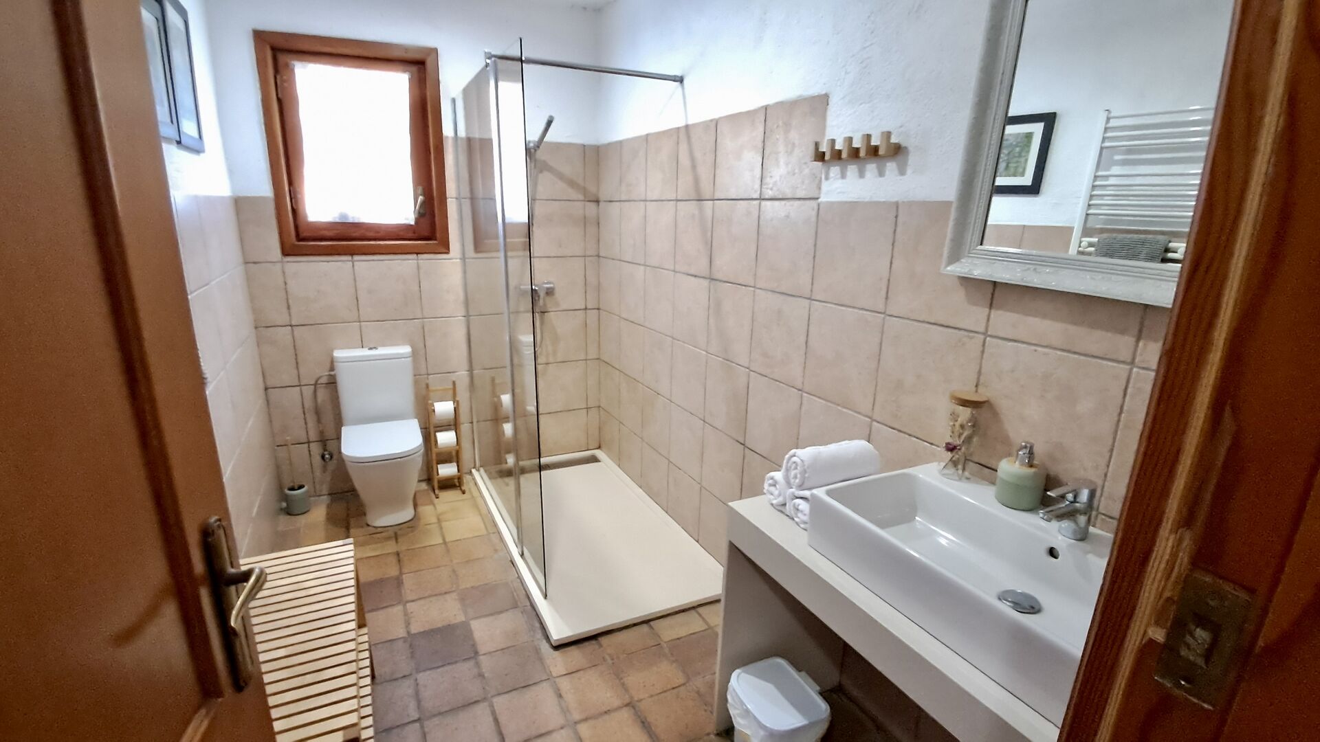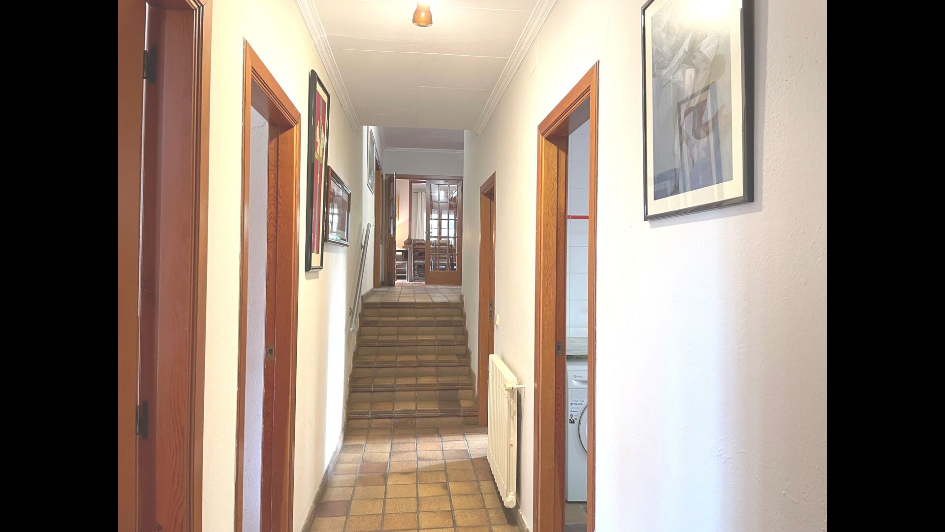 El otro pasillo se encuentra a lo largo de la casa y los dormitorios tienen vista al campo de golf. Aquí encontrará una habitación doble con cama de matrimonio, una habitación doble con dos camas individuales (dispuestas como cama de matrimonio), luego una habitación con cama de matrimonio y una litera (ideal para una familia). Estas habitaciones comparten un baño con ducha. Al final hay una habitación tipo suite con cama de matrimonio, baño privado y acceso directo a la terraza. Hay una cama de bebé en la habitación y también espacio para una cama supletoria si es necesario.
