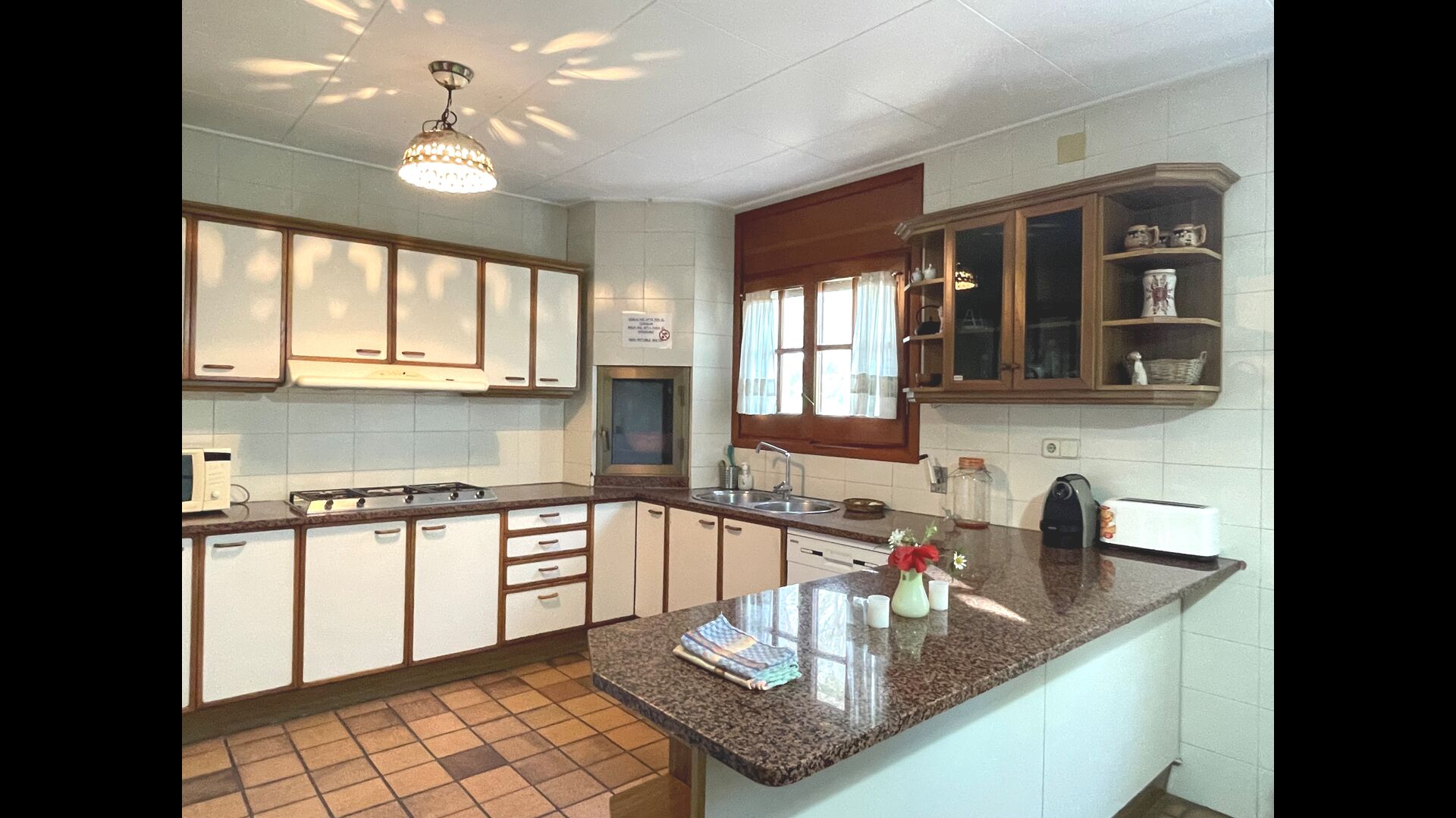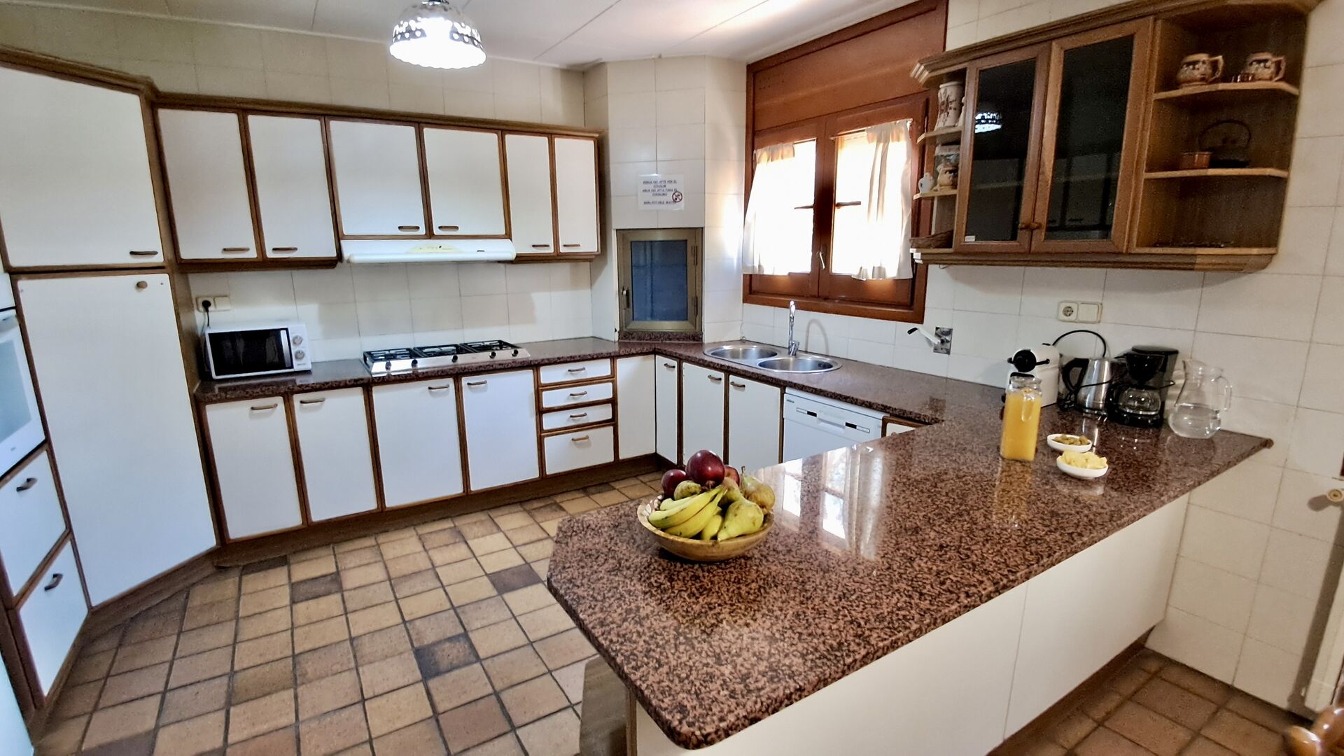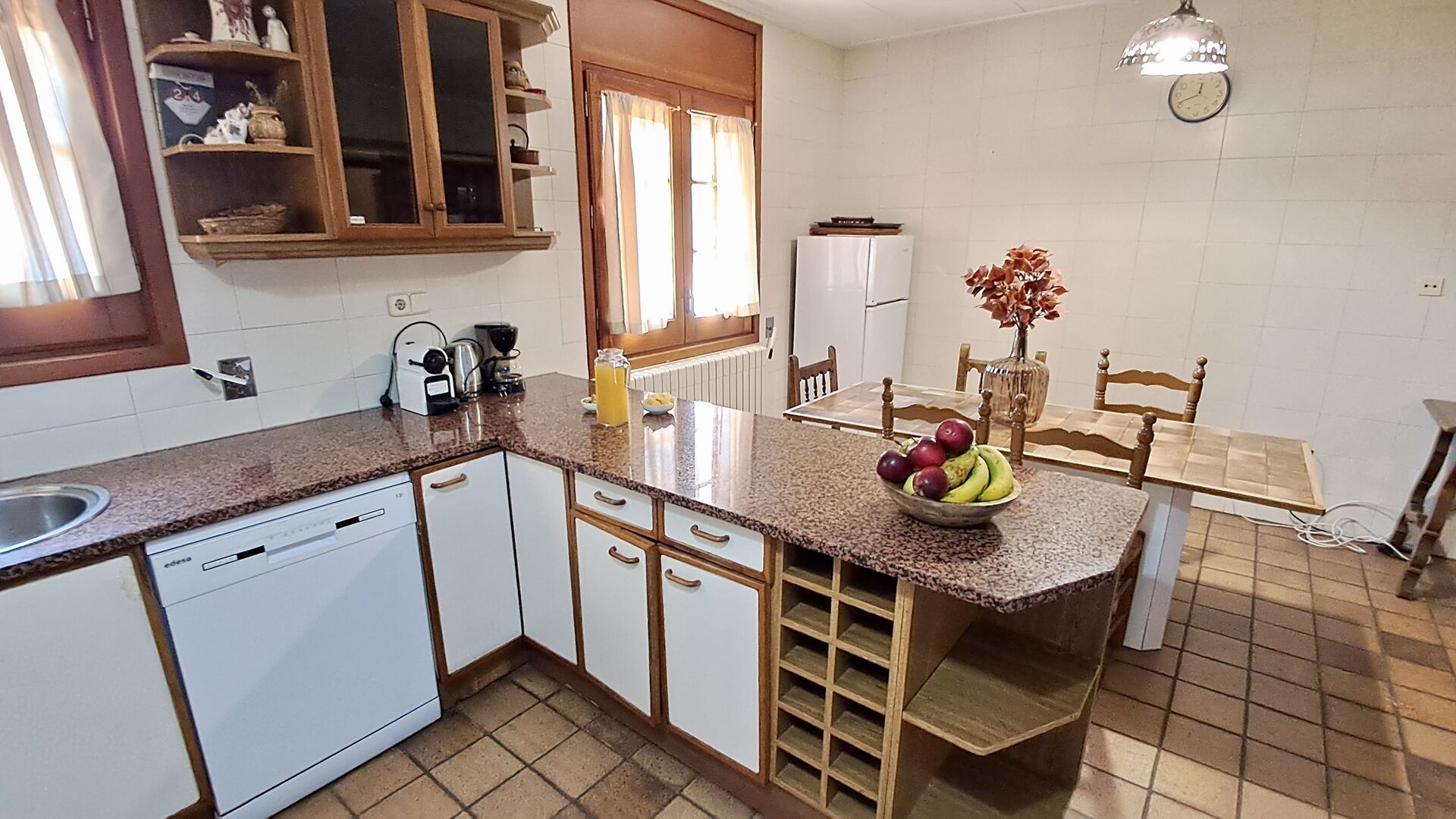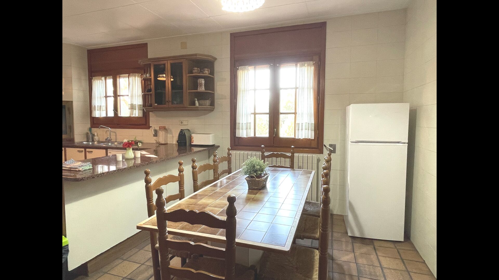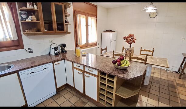La cocina está justo al lado, por lo que desde la cocina puede llegar fácilmente al comedor, la terraza al aire libre con vista al campo de golf y al área de la piscina. La cocina está muy bien equipada con 2 frigoríficos, vitrocerámica, fogones, lavavajillas, Nespresso, microondas, tostadora, etc. Además, hay una zona de comedor más pequeña, ideal para desayunar.