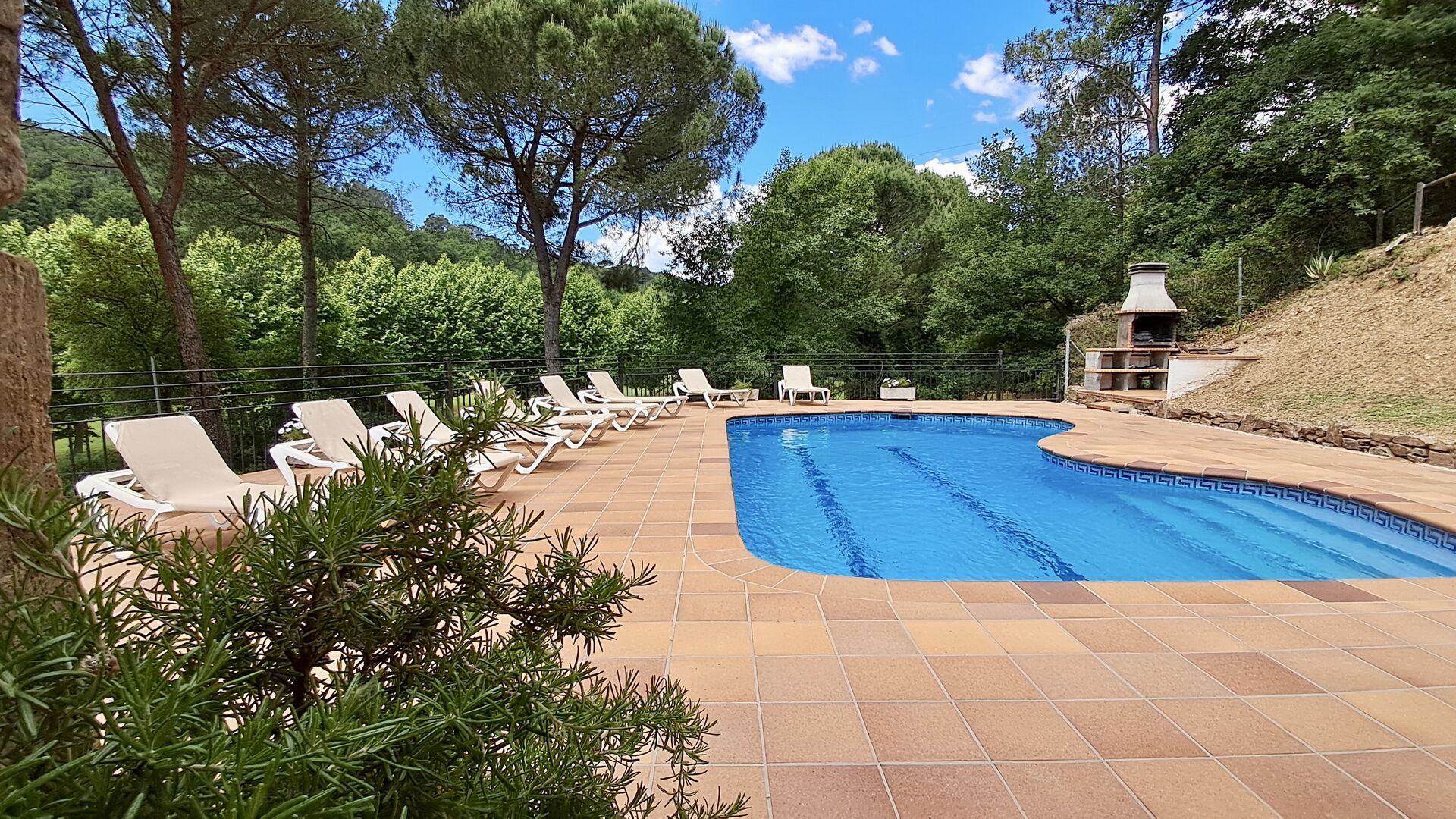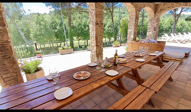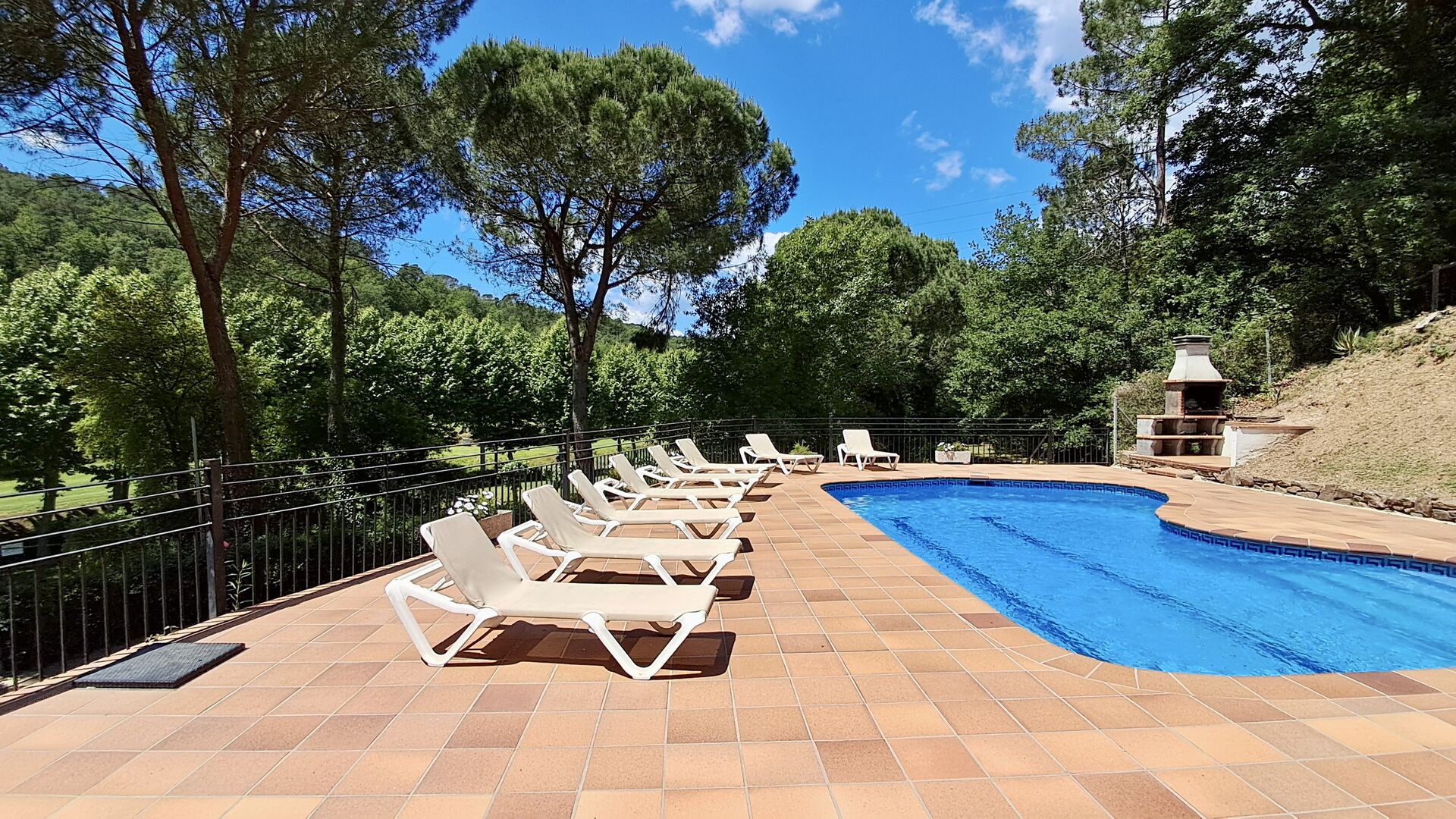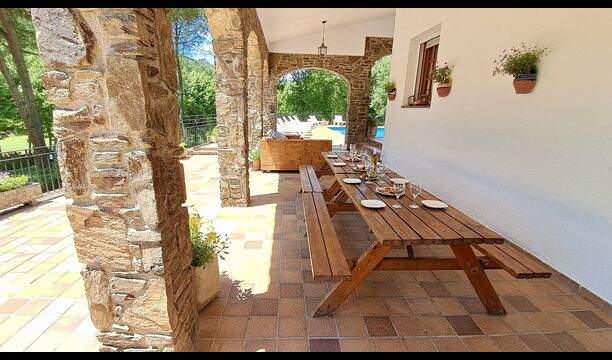 Casa Cabet Nova ofrece una casa de vacaciones bien integrada con el campo de golf como único vecino y se encuentra un nivel por debajo de la casa. Además de eso, solo ves montañas boscosas, lo cual es realmente increíble, ya que el pueblo más cercano y la estación de tren están a solo 5 km. lejos. Desde aquí también se puede acceder a la autopista AP-7, haciendo muy fáciles las excursiones a Girona (40 minutos), Barcelona (50 minutos) y las playas de la Costa Daurada (35 minutos). Obviamente, también hay algunos paseos muy agradables en el entorno natural.