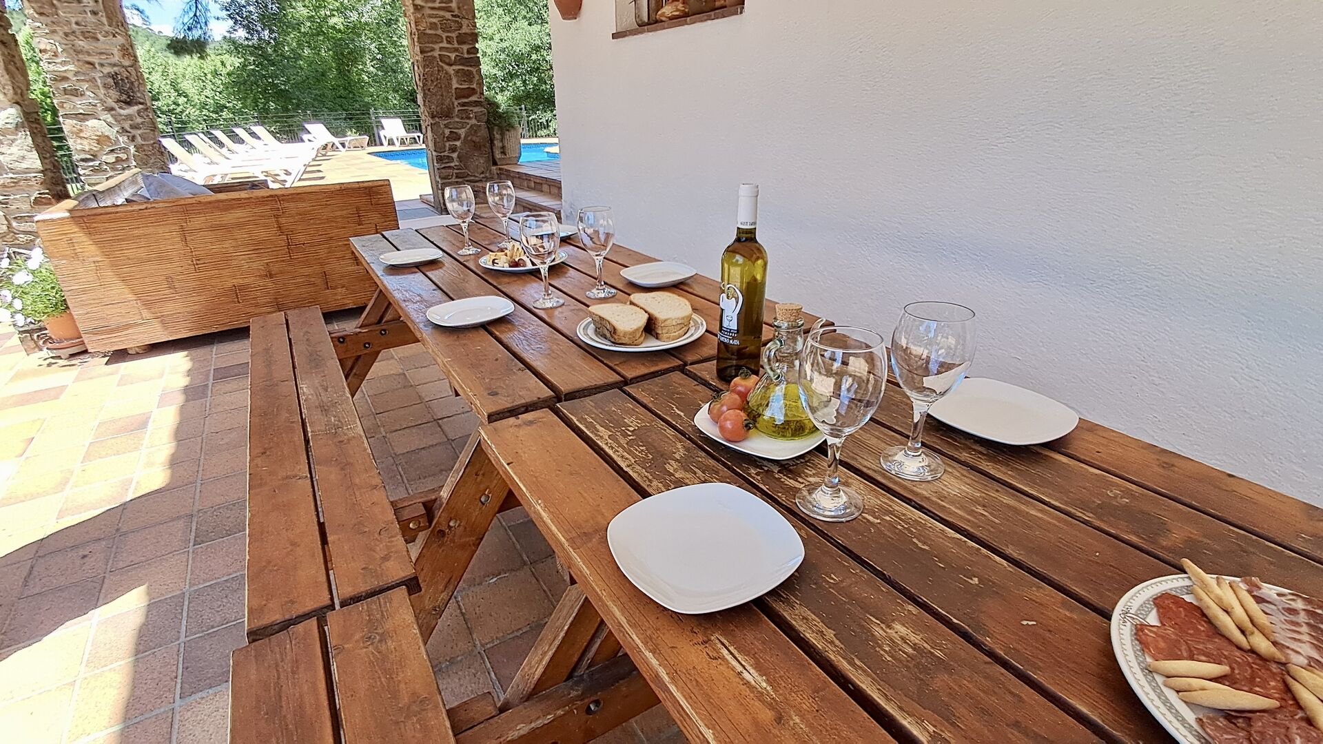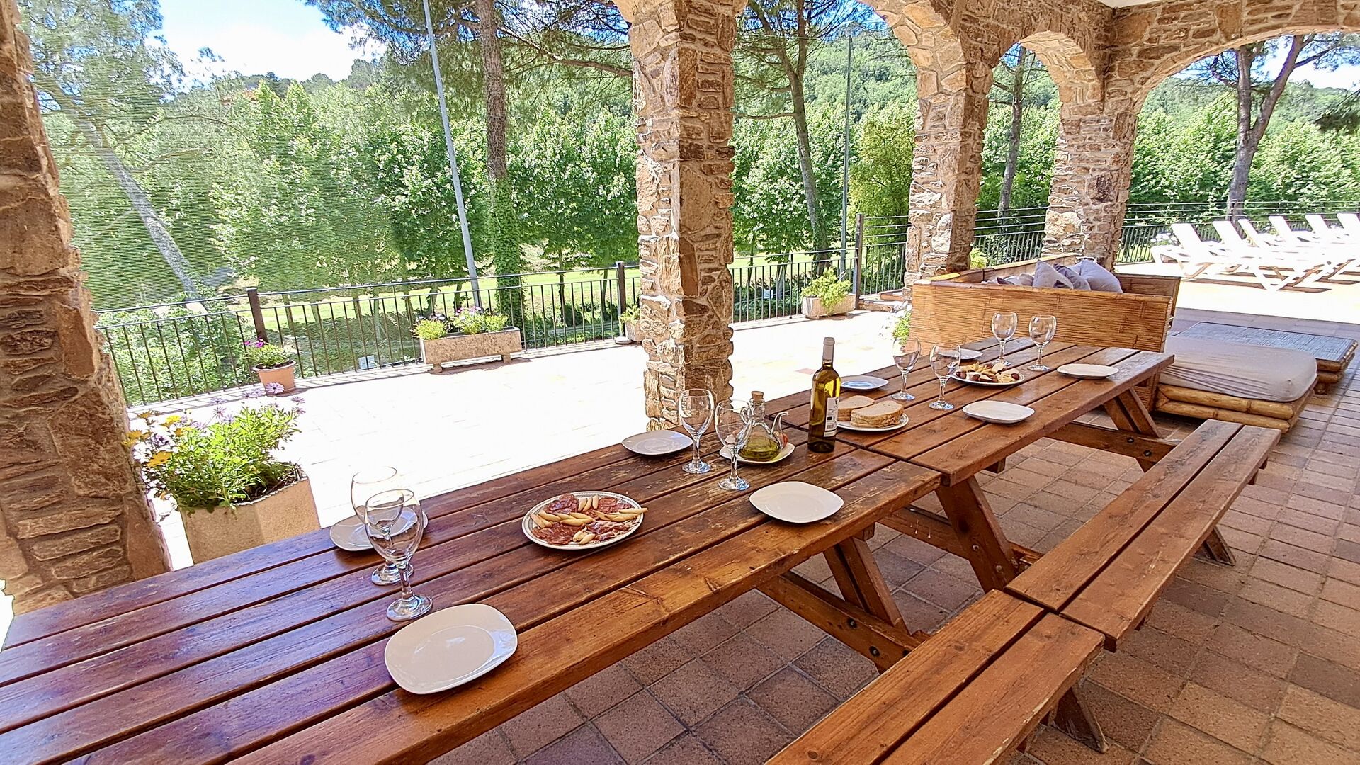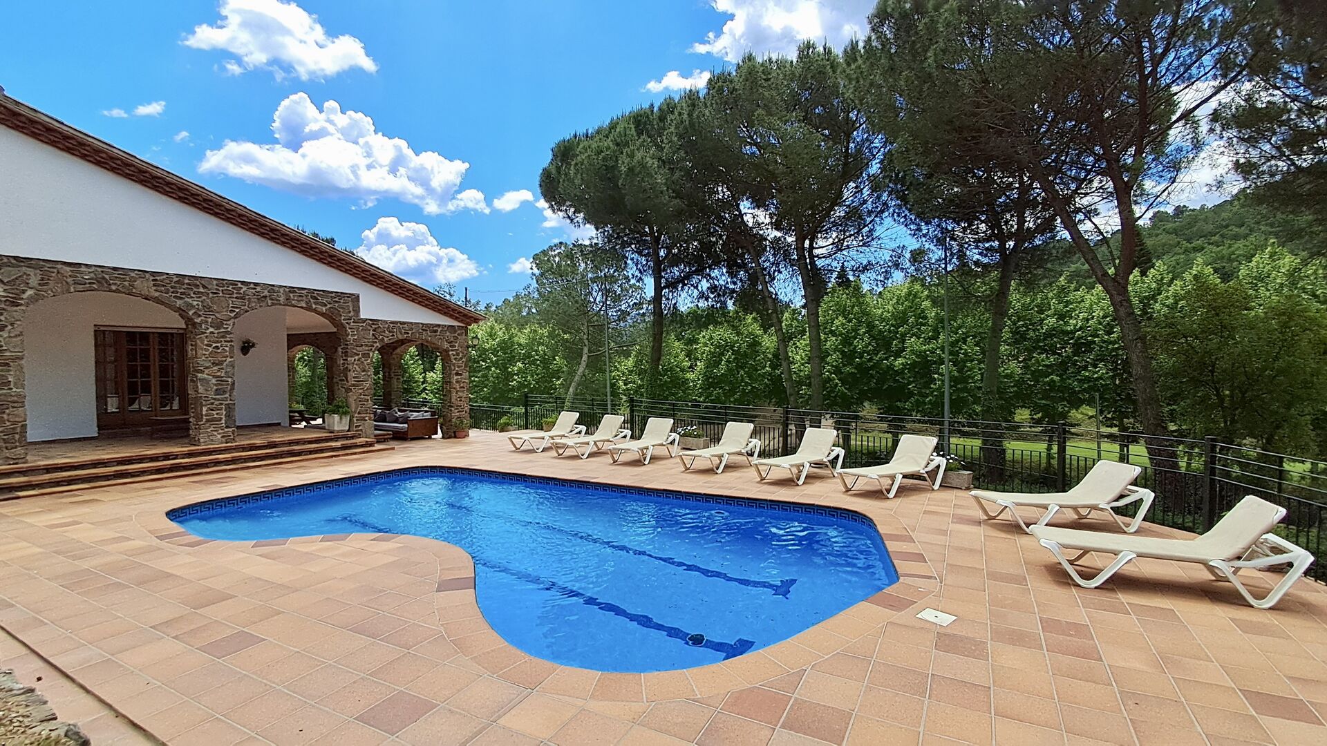 Casa Cabet Nova ofrece una casa de vacaciones bien integrada con el campo de golf como único vecino y se encuentra un nivel por debajo de la casa. Además de eso, solo ves montañas boscosas, lo cual es realmente increíble, ya que el pueblo más cercano y la estación de tren están a solo 5 km. lejos. Desde aquí también se puede acceder a la autopista AP-7, haciendo muy fáciles las excursiones a Girona (40 minutos), Barcelona (50 minutos) y las playas de la Costa Daurada (35 minutos). Obviamente, también hay algunos paseos muy agradables en el entorno natural.