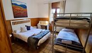 Dos pasillos distribuyen los dormitorios. Los dormitorios son básicos en su diseño pero finos y están situados con 3 dormitorios y 1 baño subiendo unas escaleras a un lado. Aquí encontrará 2 habitaciones triples con cama de matrimonio y cama individual y una habitación doble con dos camas individuales. Comparten un baño con ducha.