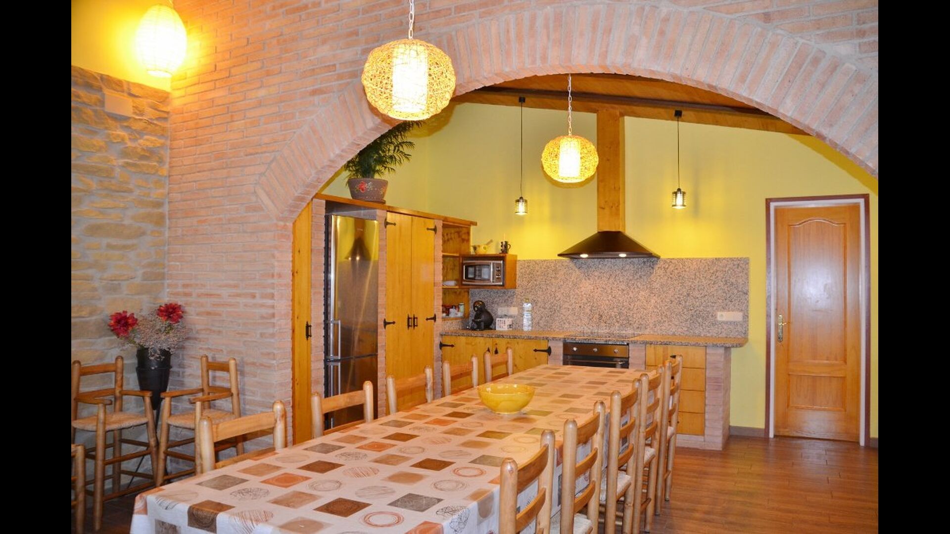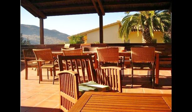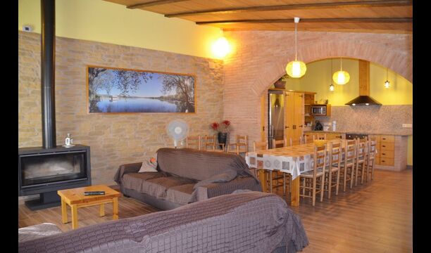 La casa de vacaciones tiene 5 dormitorios, uno de los cuales es para cuatro personas y, por lo tanto, perfecto para una familia con dos niños pequeños o para un grupo de niños pequeños. También hay 2 habitaciones dobles y 2 habitaciones triples. La gran área común es un gran ambiente abierto con una acogedora sala de estar, una larga mesa española y una cocina más pequeña. También hay tres baños en la casa.