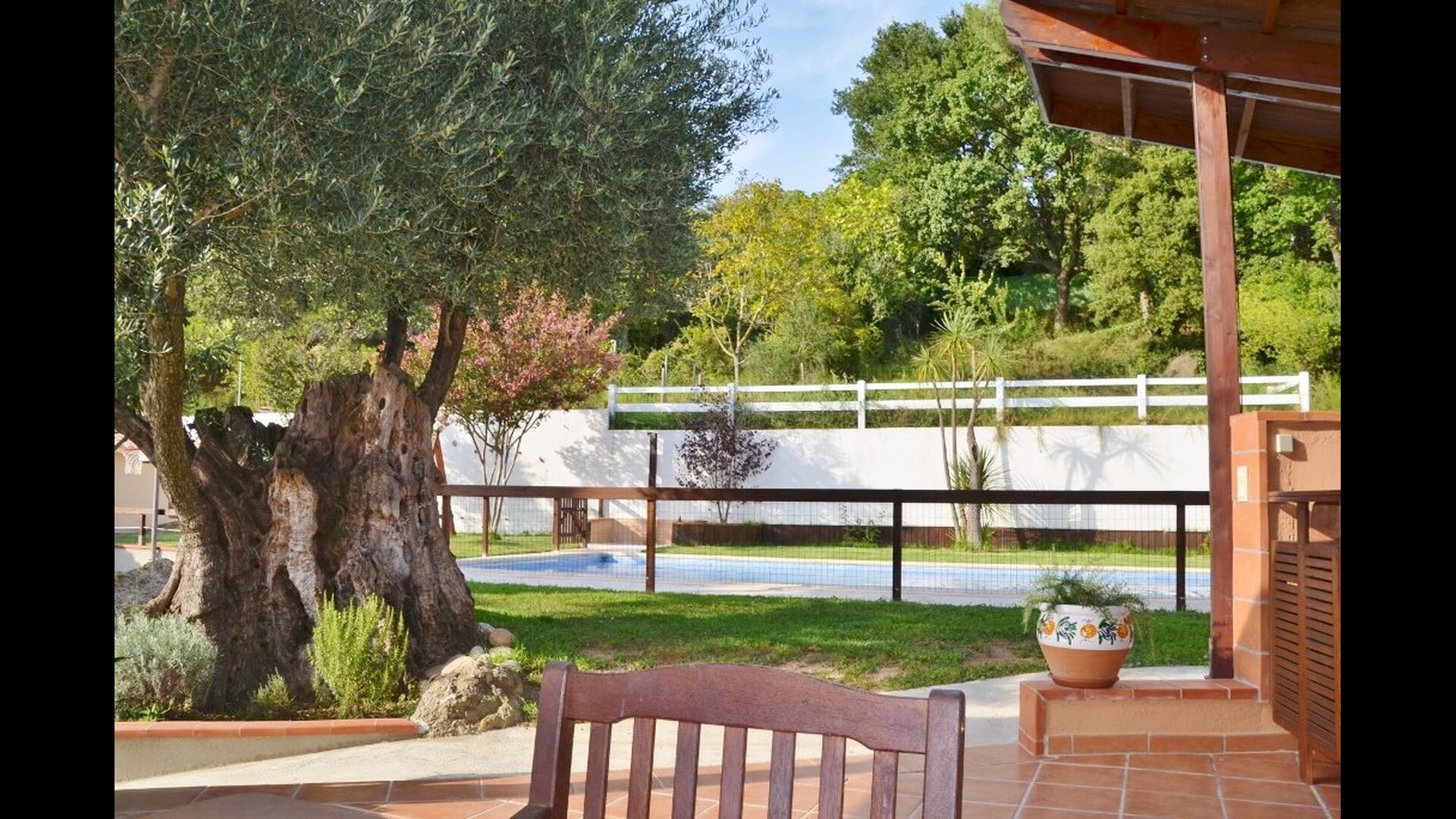 - Precioso jardín con palmeras y olivos centenarios.