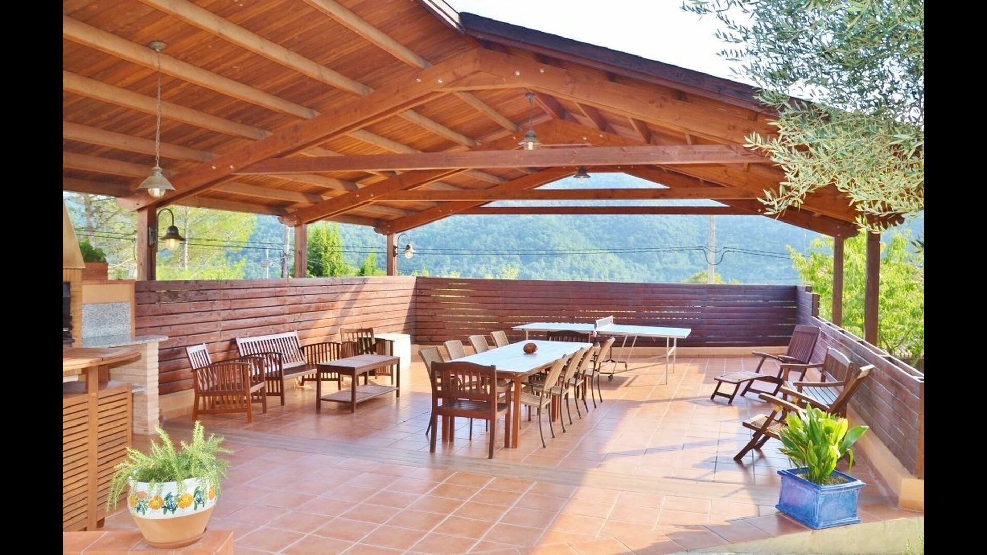 - Terraza muy grande con buenos muebles de jardín, barbacoa y tenis de mesa.