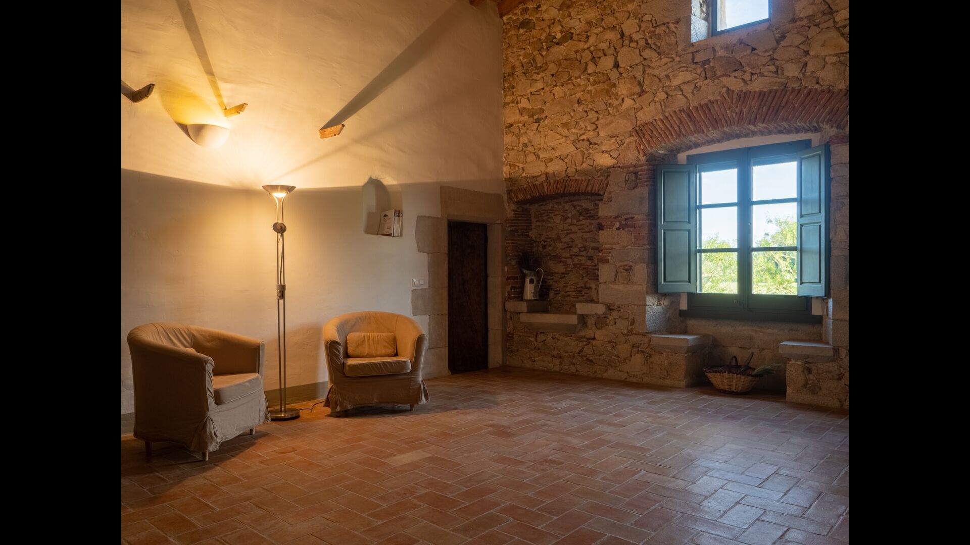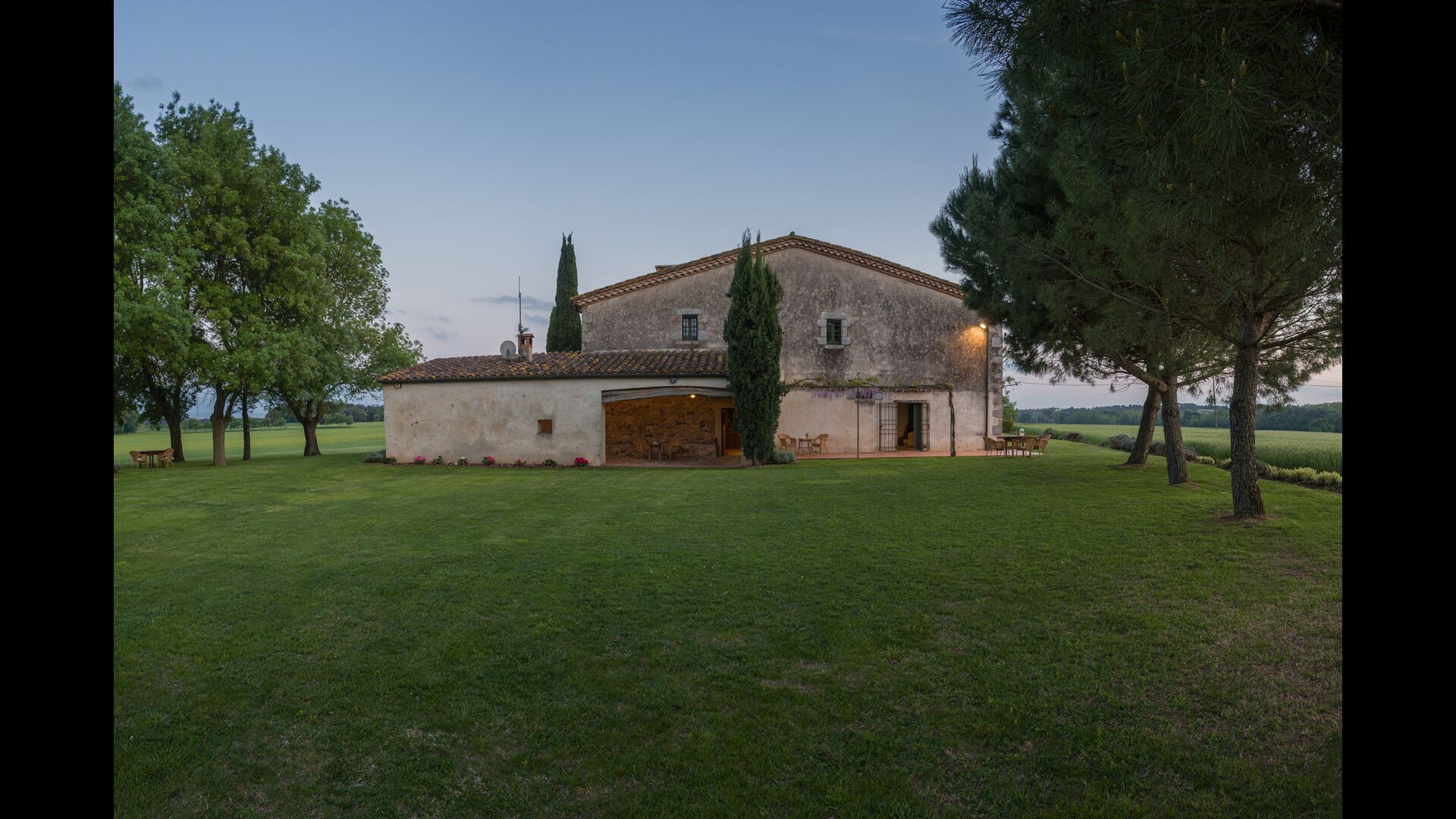 La casa tiene una ubicación maravillosa que combina tierras de cultivo con bosques de robles, encinas y pinos y arroyos y arroyos bordeados de vegetación. La granja en sí está rodeada por una gran zona verde con árboles y campos de cultivo. Tiene unas vistas excepcionales del Montseny, la llanura de La Selva y una buena proporción de los Pirineos catalanes y sus estribaciones.