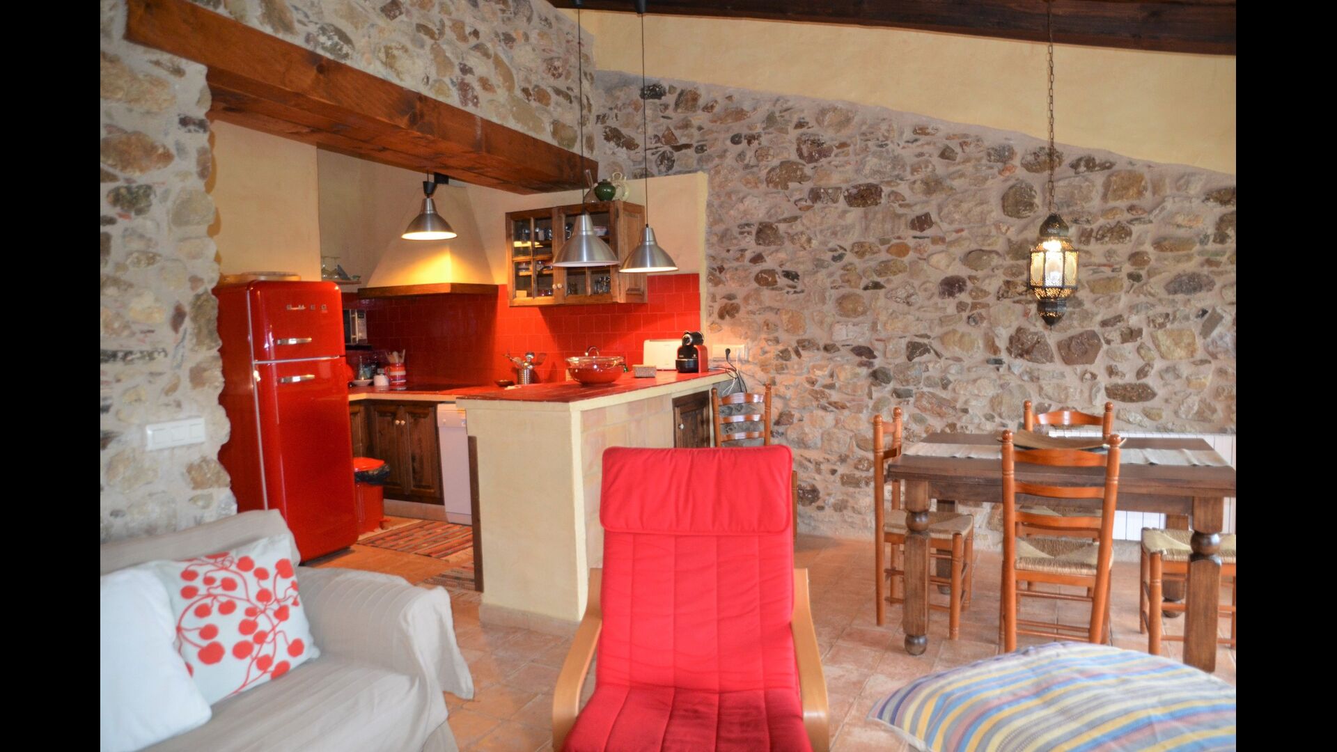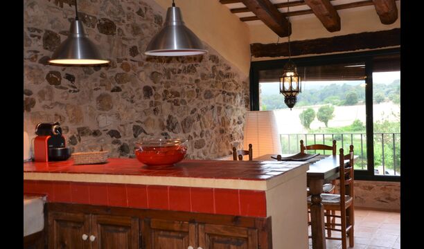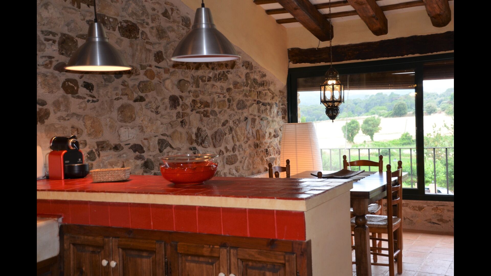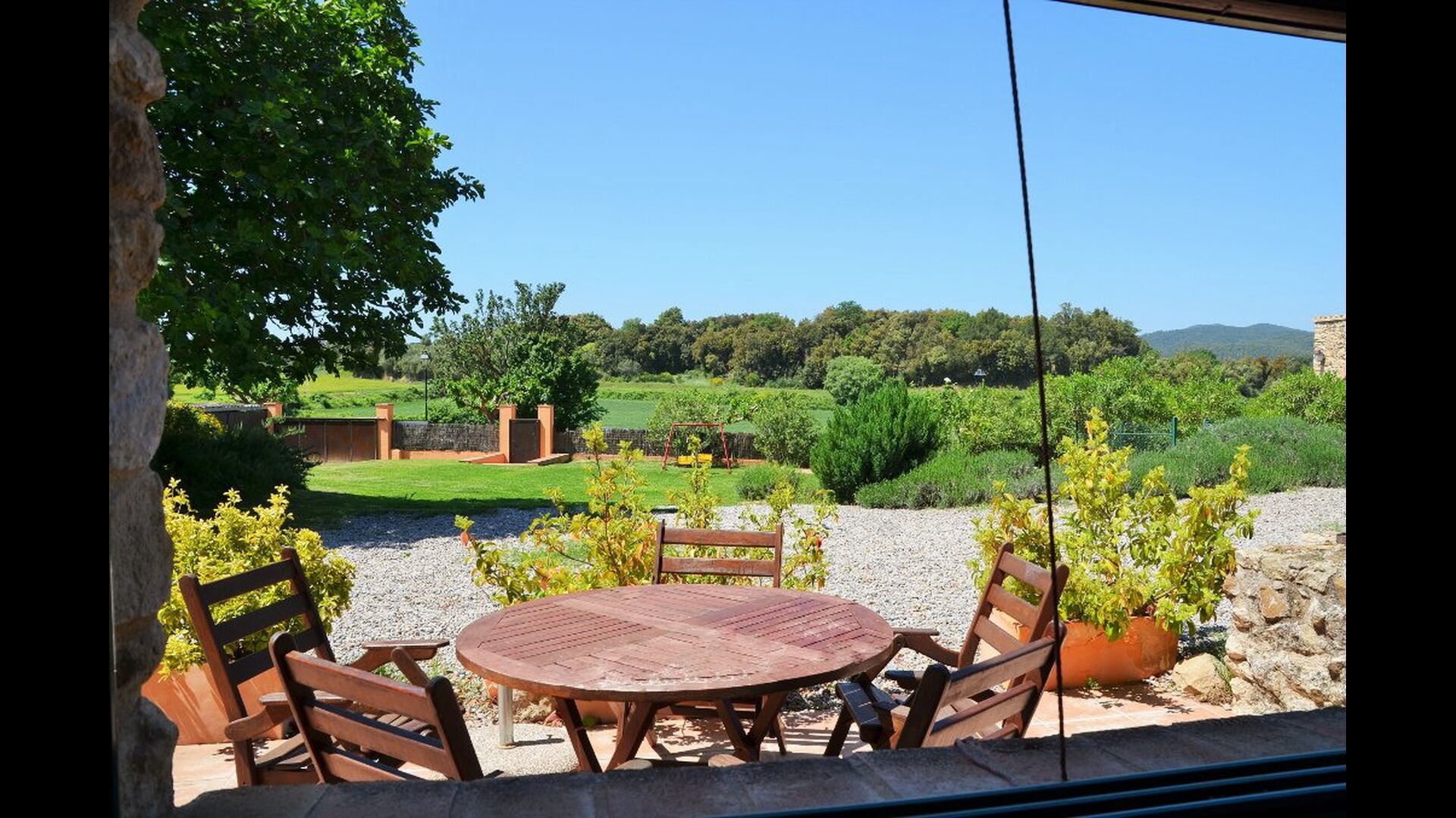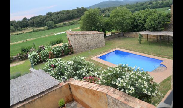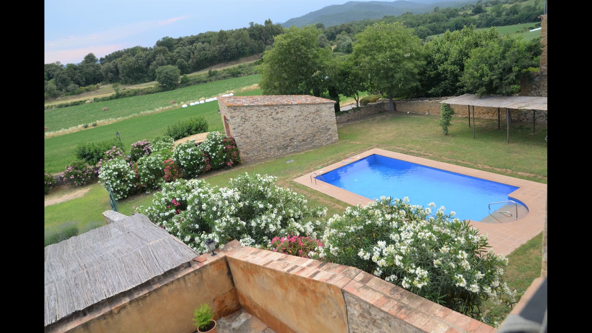 La casa tiene un jardín muy grande con una gran piscina, que está asegurada con una cerca y con tumbonas donde puede relajarse, solo para ser interrumpido por un refrescante baño. El resto del jardín tiene varias áreas de patio y naranjos y limoneros que brindan sombra y un toque de ambiente mediterráneo. En el pueblo, a poca distancia, hay algunos restaurantes y una tienda con un poco de todo. Todos los días a las 12:00, una furgoneta de pan llega a la plaza, por lo que puede comprar pan fresco para el almuerzo. Hay supermercados más grandes en La Bisbal, que es famoso por su cerámica. Esta localidad se encuentra a tan solo 5 km de la casa.