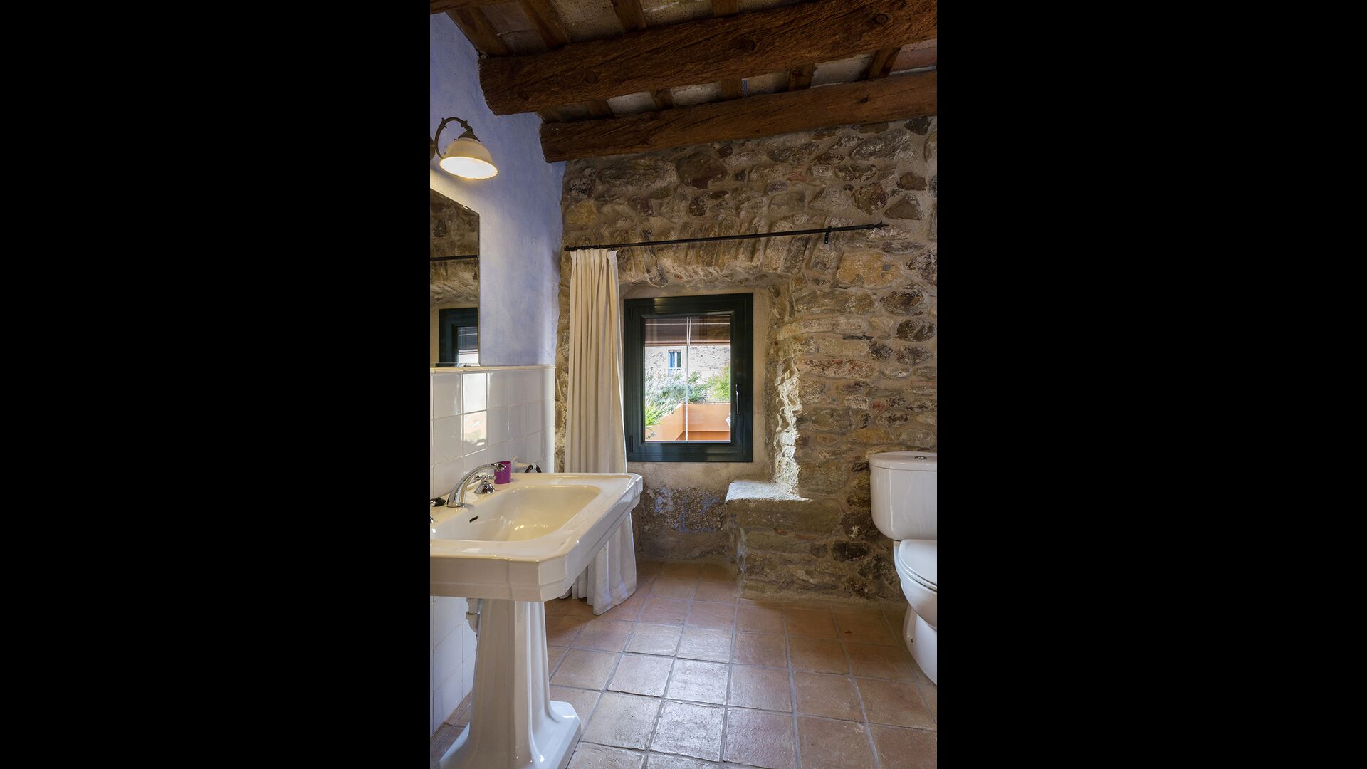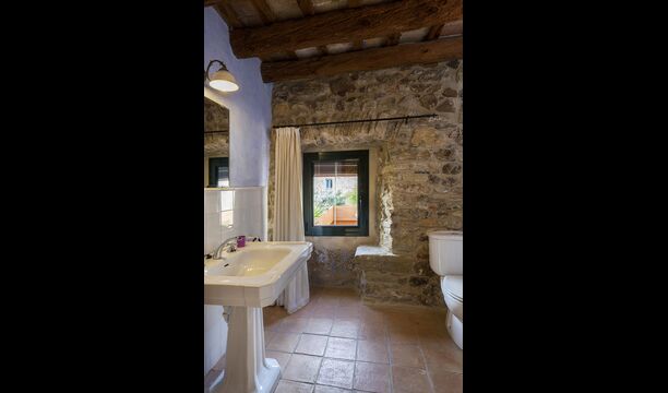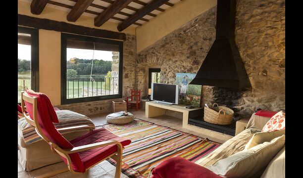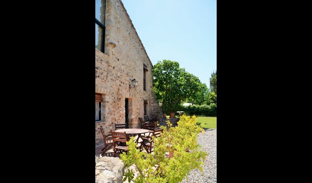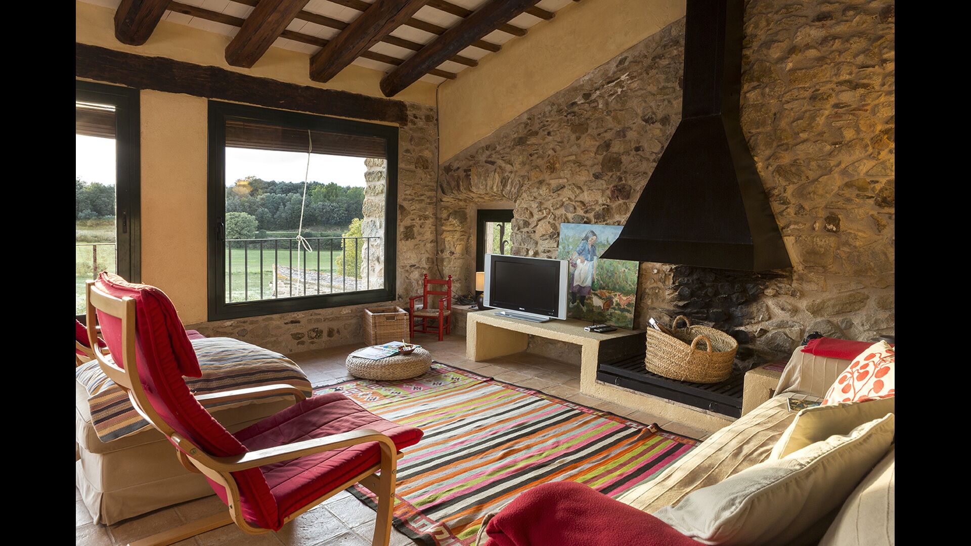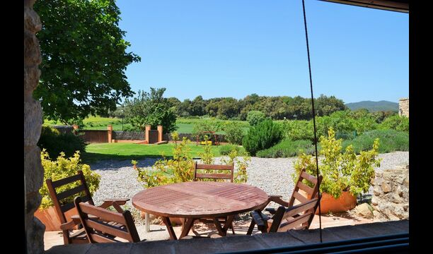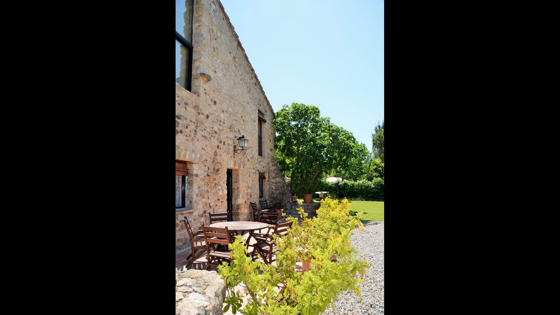 La casa tiene un jardín muy grande con una gran piscina, que está asegurada con una cerca y con tumbonas donde puede relajarse, solo para ser interrumpido por un refrescante baño. El resto del jardín tiene varias áreas de patio y naranjos y limoneros que brindan sombra y un toque de ambiente mediterráneo. En el pueblo, a poca distancia, hay algunos restaurantes y una tienda con un poco de todo. Todos los días a las 12:00, una furgoneta de pan llega a la plaza, por lo que puede comprar pan fresco para el almuerzo. Hay supermercados más grandes en La Bisbal, que es famoso por su cerámica. Esta localidad se encuentra a tan solo 5 km de la casa.