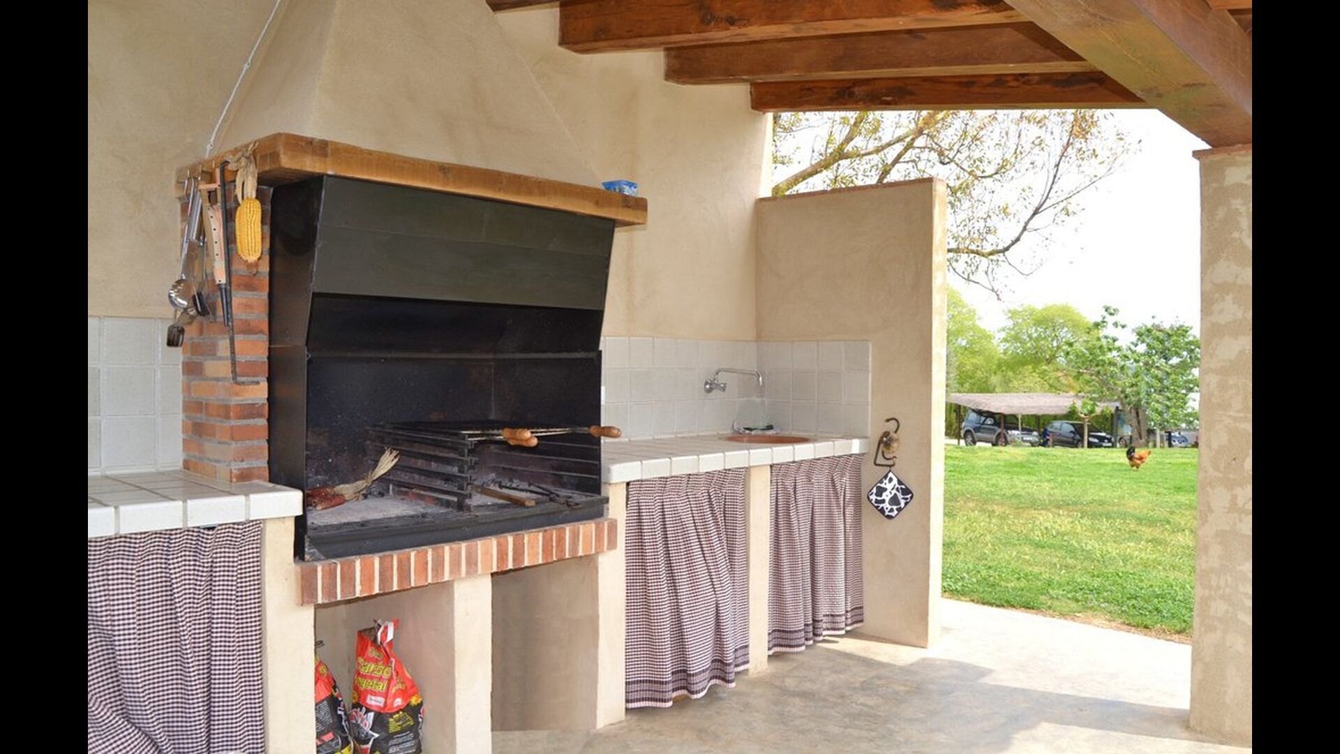 Jardín muy amplio con parque infantil y zona de barbacoa compartida.