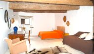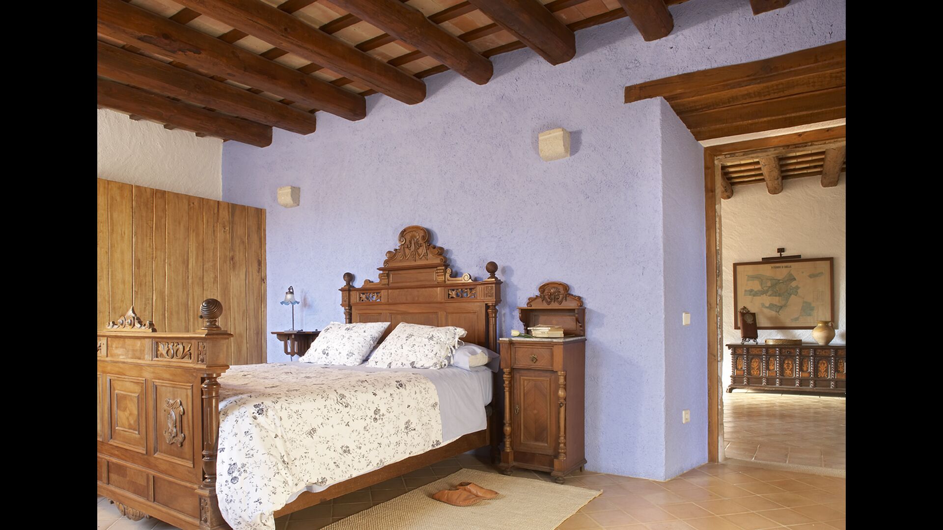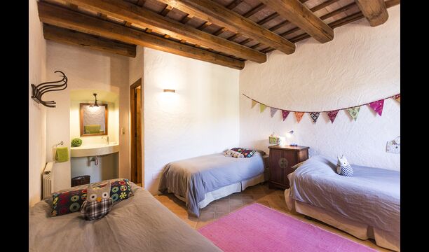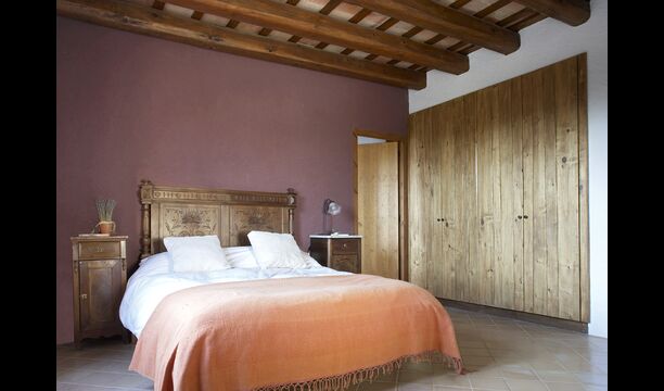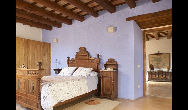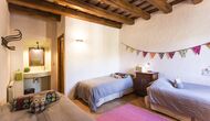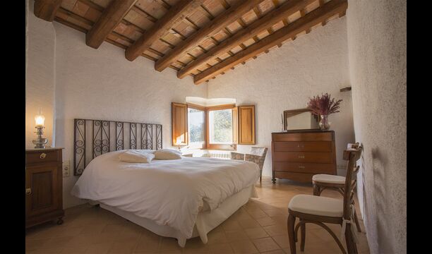 Subiendo la escalera de estilo mansión, en el primer piso se llega a un gran salón, que sirve como entrada a las cinco habitaciones diferentes. Cada habitación mide entre 30 y 40 m2, tres de ellas tienen camas dobles, una tiene una cama doble y una individual y la cuarta tiene dos camas individuales. Cada habitación tiene baños modernos en su interior. Desde cada habitación, tiene una excelente vista sobre el área de la piscina, los campos cercanos y la arboleda.