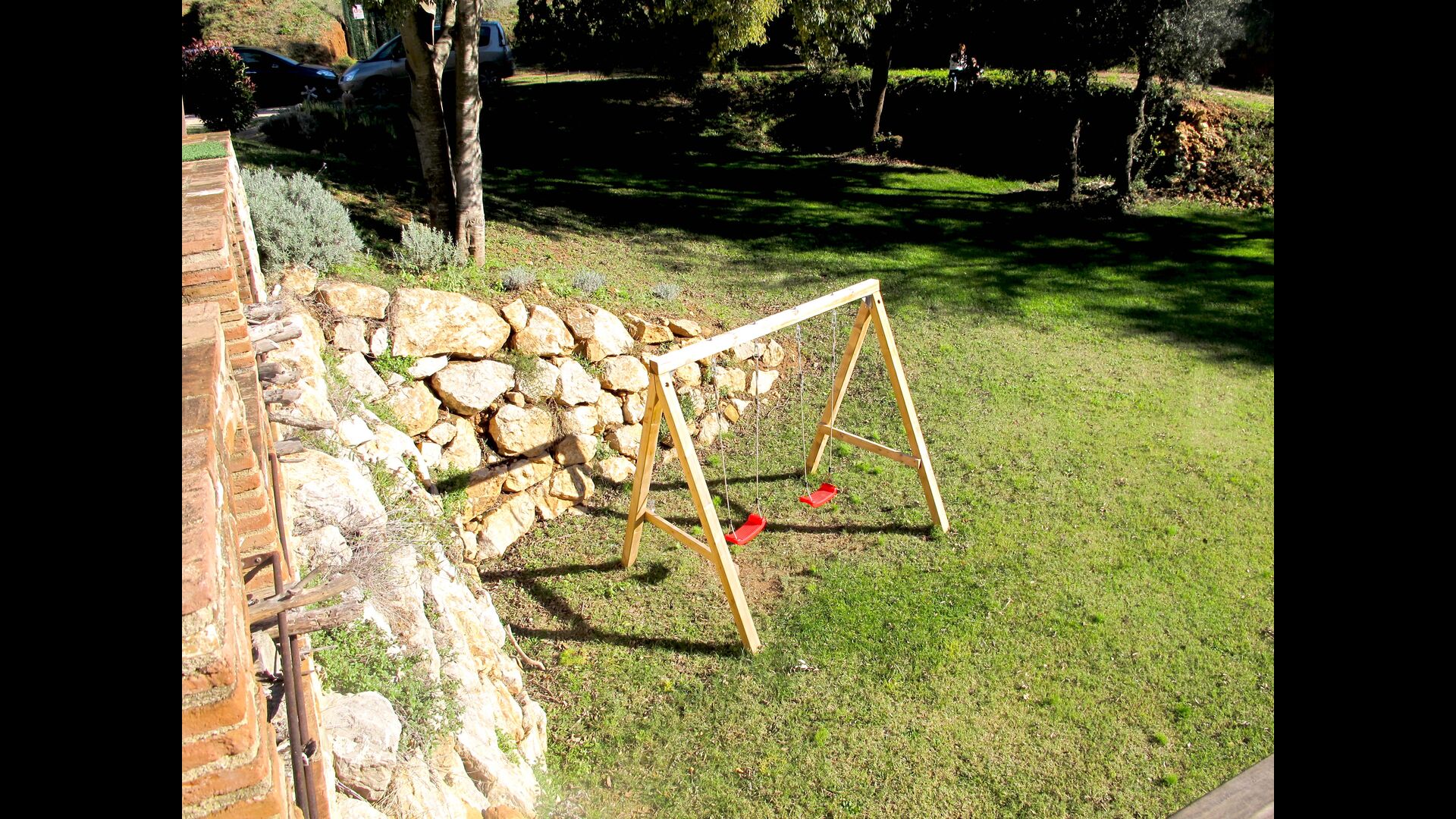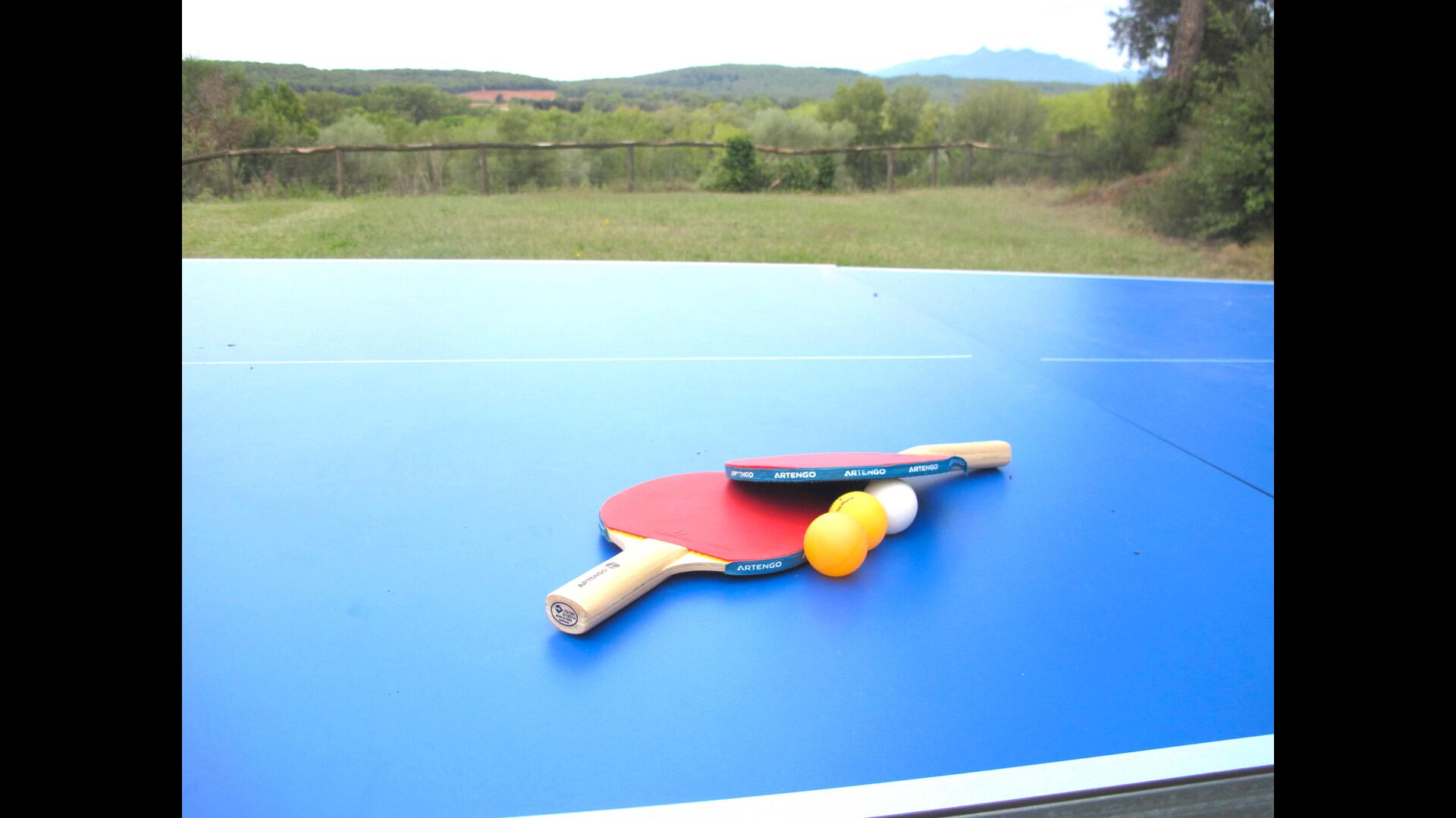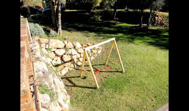 Columpios, mesa de ping pong, arenero y hamaca