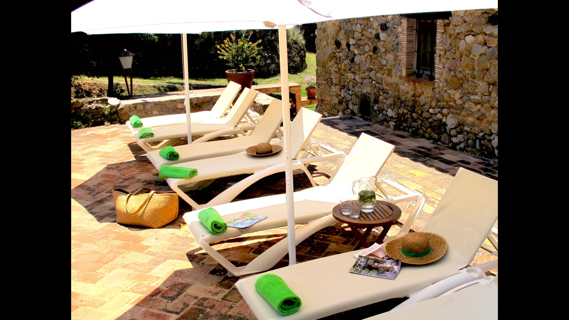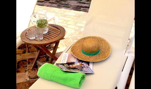 Las instalaciones exteriores son igual de amplias. En la parte delantera de la casa, el muro de piedra caliza rodea el área de la piscina. La piscina mide 10 x 5 metros, y después de un refrescante baño, puede secarse en una de las sillas de playa. En el lado este de la casa, se encuentra la terraza con mesa de terraza, sillas y sombrillas; Lo suficientemente grande como para que todo el grupo coma juntos. En el lado sur de la casa, hay un césped y un camino que conduce al río. También es posible nadar en el río.