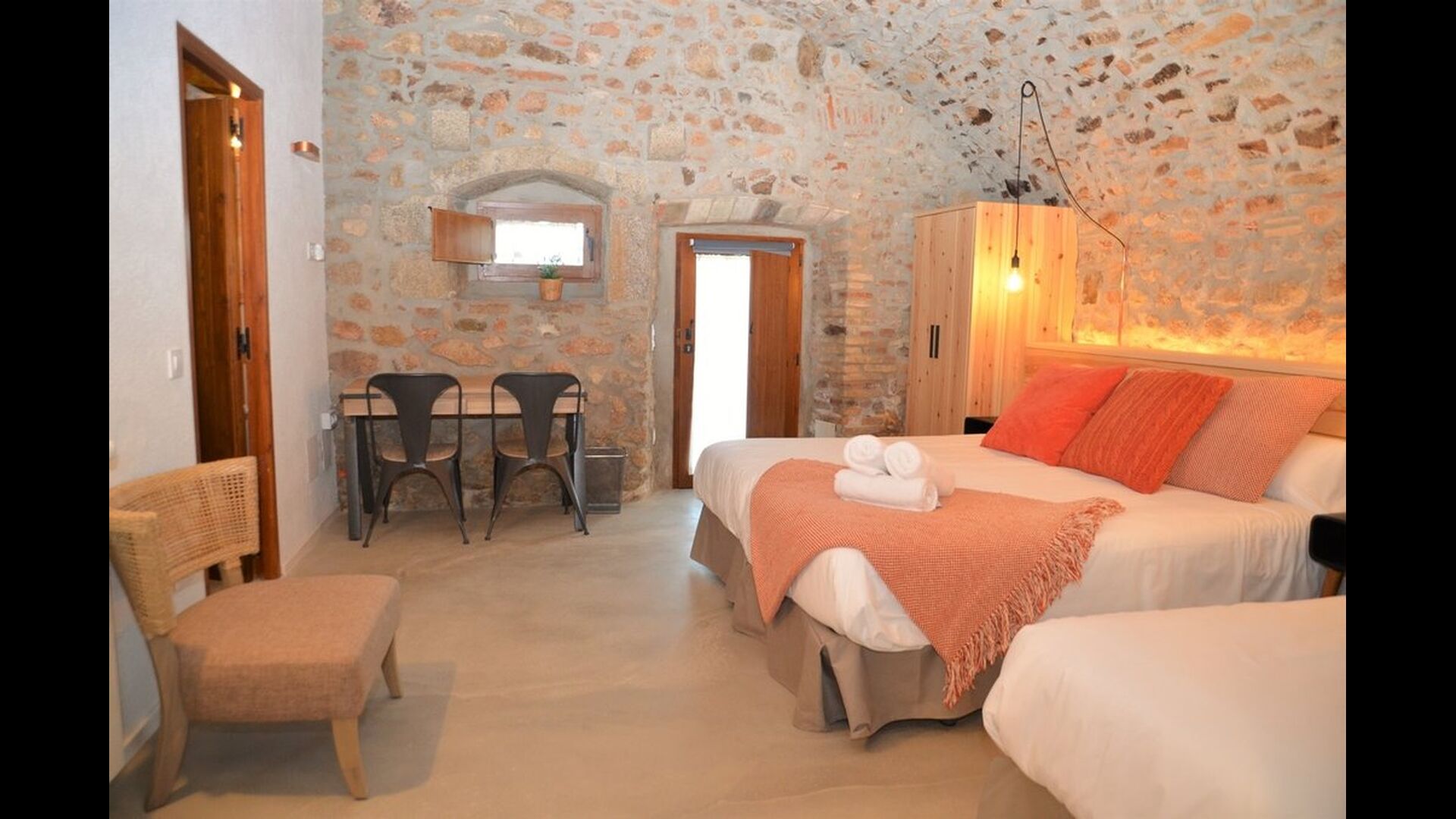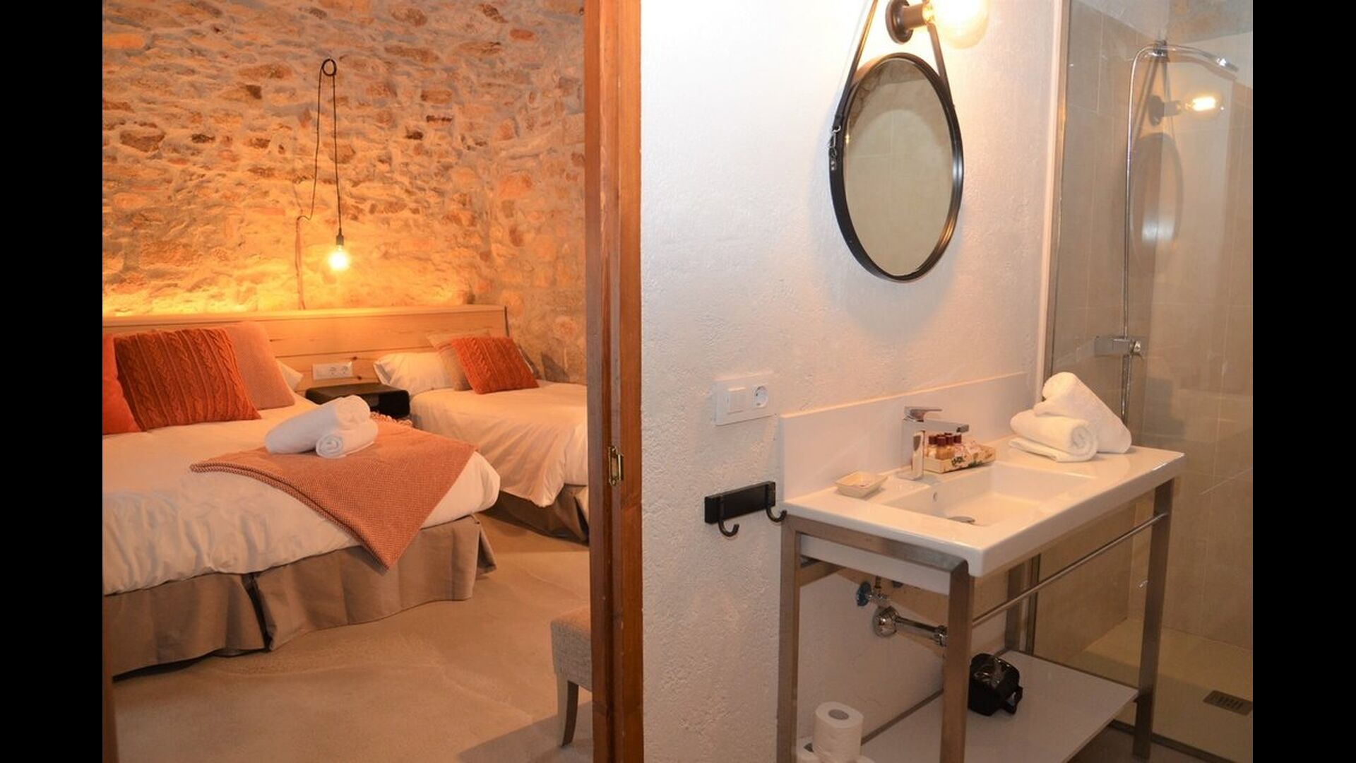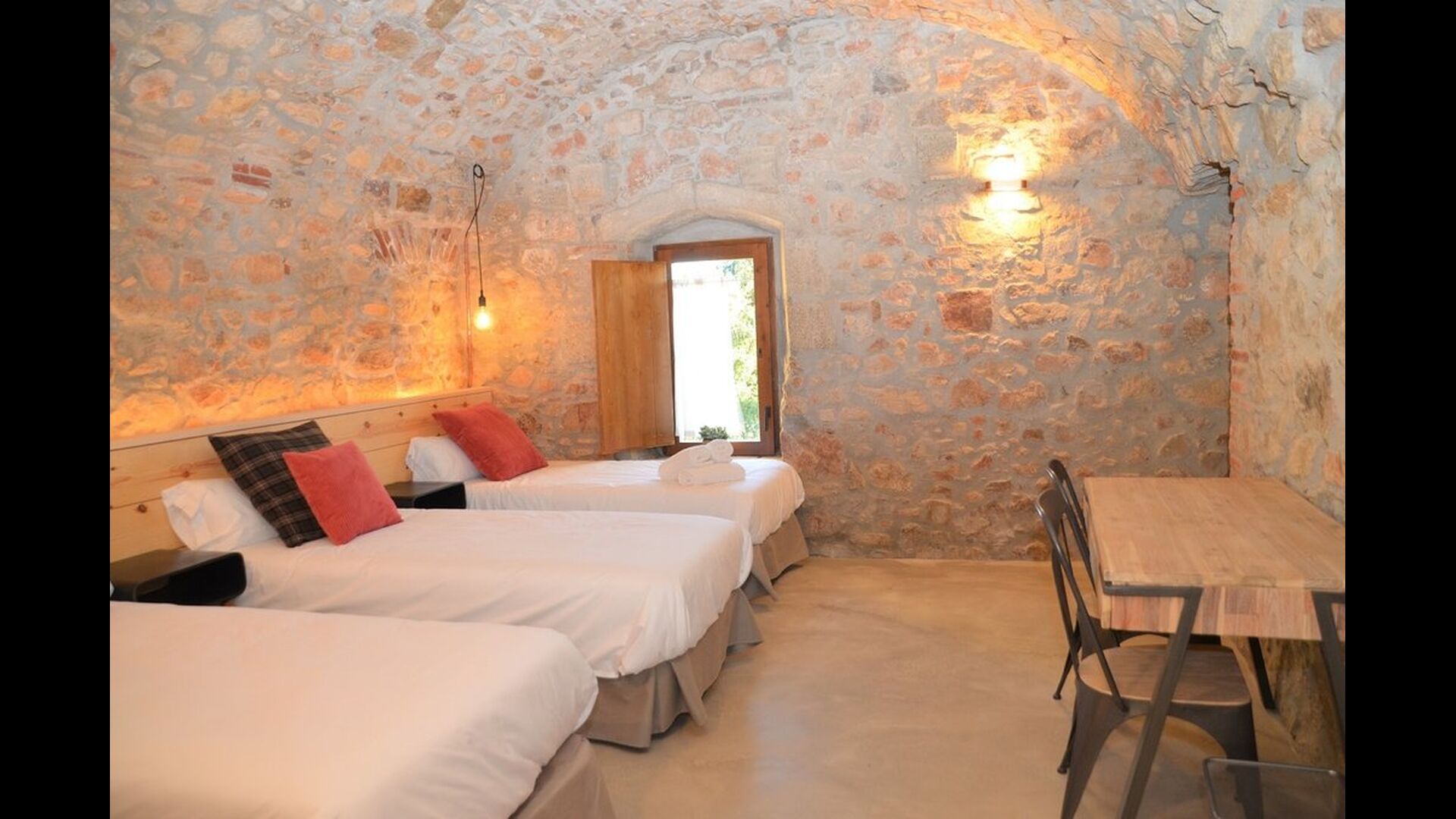 Lo que llamamos castillo fue originalmente un lugar de relevancia religiosa. El edificio consta de un monasterio franciscano y una iglesia que se remonta a 1690 y fue utilizado activamente por los monjes hasta 1822. Partes del monasterio y la iglesia fueron reconstruidas en el siglo XIX. El edificio bien conservado contiene una increíble cantidad de historia, que también se nota cuando caminas por los terrenos. La casa de vacaciones ahora está decorada con muebles y herramientas modernas. Junto con el exterior antiguo, la casa de vacaciones logra una combinación perfecta de lo antiguo e histórico y lo nuevo y moderno. La gran parte de esto es que obtienes una emocionante experiencia cultural sin perder el acceso a nuevos dispositivos inteligentes como WiFi-Internet. Las habitaciones en La Monastir de Santes han sido especialmente diseñadas por una joven diseñadora.