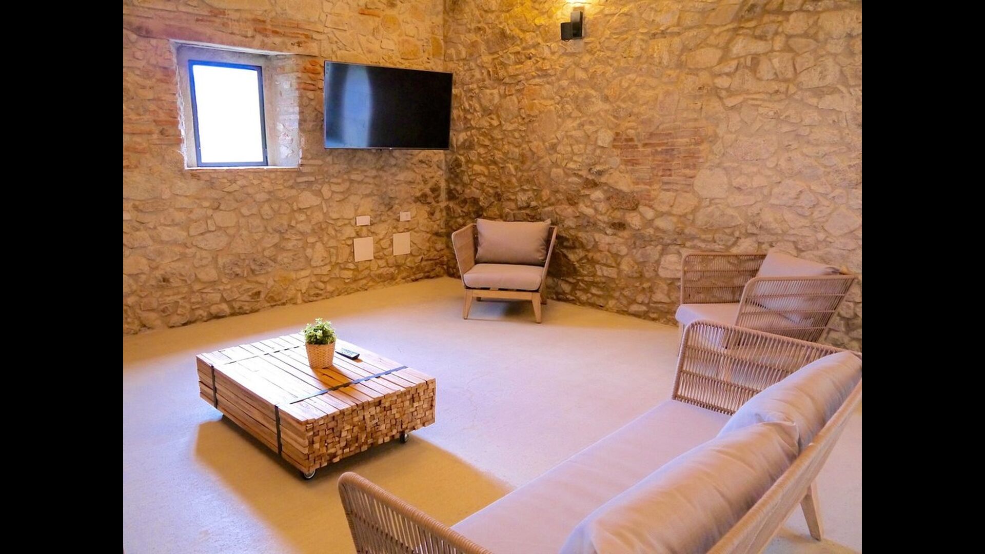 Las instalaciones de la casa de vacaciones son numerosas: lo más destacado es, por supuesto, la piscina de 15 metros que domina el horizonte y el hermoso paisaje. La piscina tiene profundidades variables y una función de jacuzzi en un extremo. Con la piscina hay varias tumbonas y otros asientos, donde puede sentarse con una bebida fría y disfrutar de la vista y del encantador sol catalán, con la oportunidad única de darse un chapuzón en el agua refrescante en un momento dado. En el mismo lado de la casa que la piscina, se encuentra el hermoso jardín con varios niveles y todo tipo de hermosas flores y plantas, pero en realidad, toda el área es su jardín; Usted puede moverse libremente en el campo que rodea el castillo. Además de esto, hay un gran patio con espacio para casi todo lo que pueda desear. Por ejemplo, puede mover la parrilla móvil allí y hacer una fiesta de barbacoa.