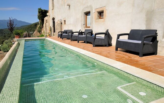 Es difícil imaginar una casa de vacaciones más singular; Aquí, disfrutaràs de un magnífico castillo en la montaña, únicamente rodeado de otras montañas, bosques y una naturaleza impresionante e intacta. Desde la gran casa, tendrá una vista de 360 grados de valles y paisajes únicos; Incluso puedes echar un vistazo a la costa de la Costa Brava. No encontrará una casa que sea más adecuada para alejarse del ajetreo y el bullicio. Aquí, puede sentarse en una tumbona con una bebida fría y disfrutar del calor y el aire fresco de la montaña. Y, sin embargo, el propietario de la casa ha atribuido la casa con el eslogan "En medio de la nada, conectado a todas partes", que es tan cierto como dije: hay solo media hora desde su castillo privado a Costa Brava y aproximadamente A 15 minutos del pueblo más cercano con supermercado, restaurante, etc.