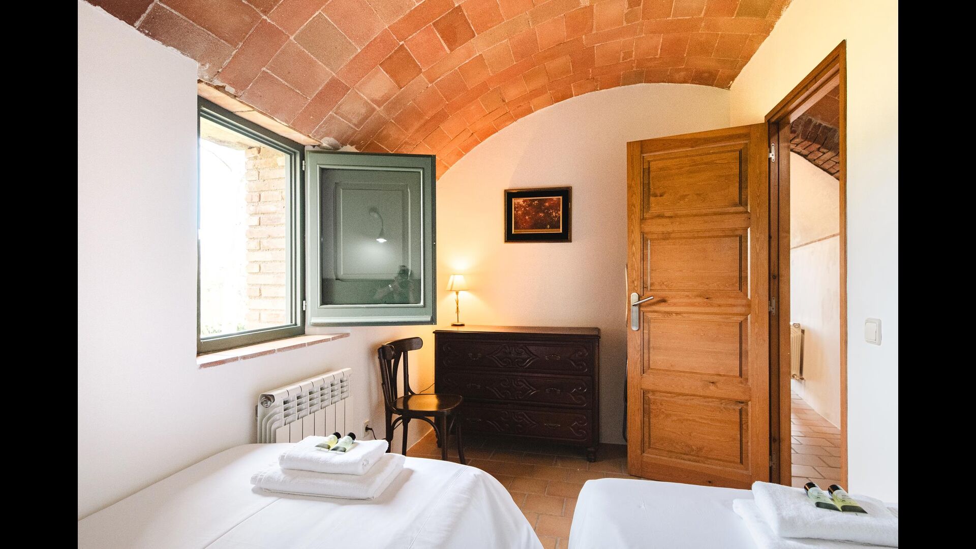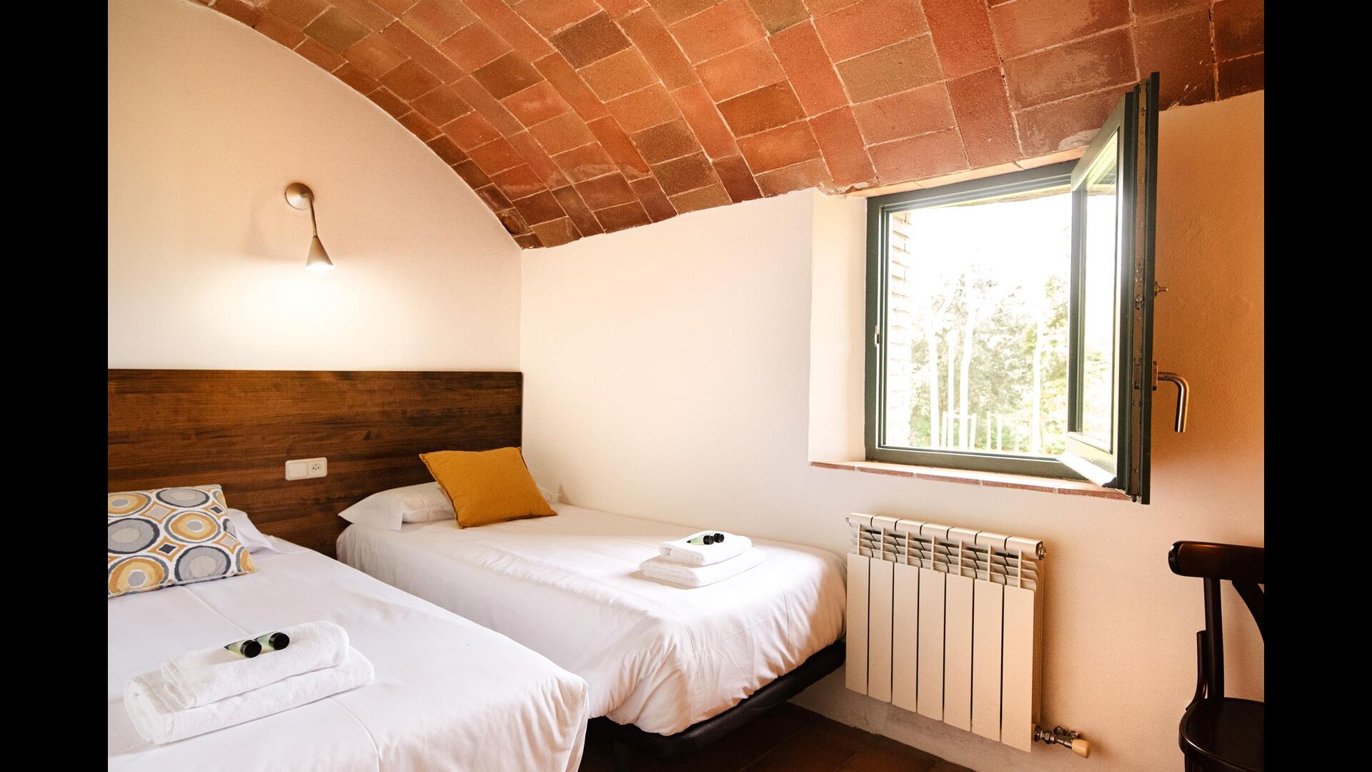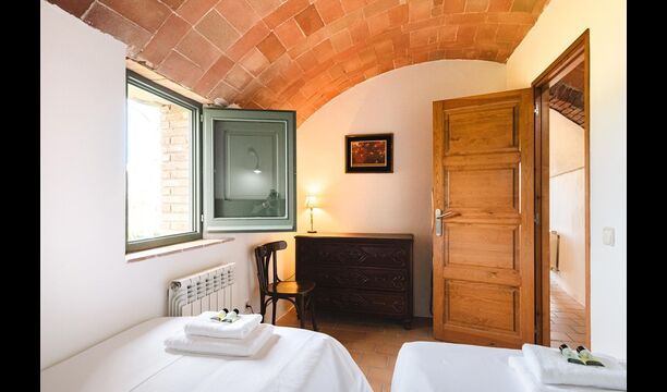 La Cort tiene dos habitaciones: la primera es una acogedora habitación doble con dos camas individuales, y la otra también está bellamente decorada con una bonita cama doble grande. Las habitaciones comparten un baño, que también tiene una ducha.