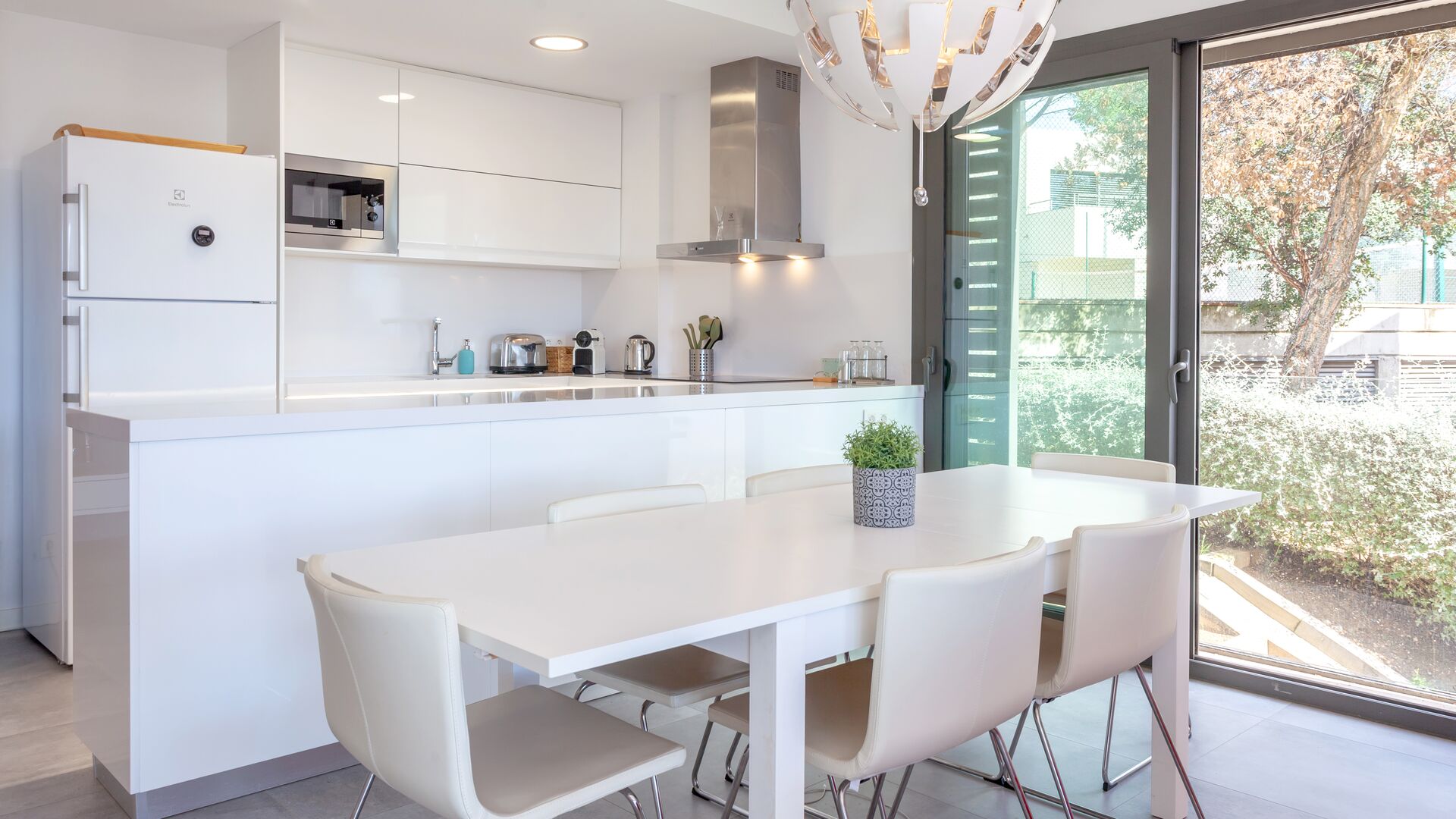 The house is distributed on three levels. We enter through the main hall from where there is a direct access to a bright american style fully equipped kitchen, beautiful dining room and large living room with a nice and sunny terrace where you can enjoy the sun and the tranquility of the Costa Brava. On this same floor we also have a bathroom and laundry area.