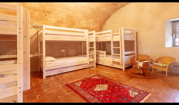 En esta planta también se encuentran cinco dormitorios: tres dormitorios dobles, un dormitorio con dos camas individuales y un dormitorio con tres literas con capacidad para hasta seis niños, así como dos baños con ducha.