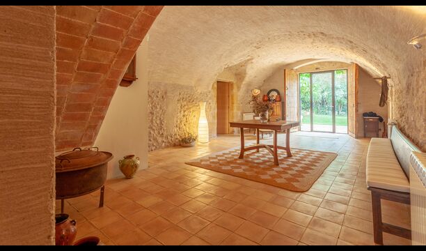 La propiedad conserva el carácter auténtico de la arquitectura rural tradicional —con elementos como la característica bóveda catalana— al mismo tiempo que ofrece todas las comodidades de la vida moderna en una amplia finca privada cuidadosamente mantenida que garantiza tranquilidad y privacidad.